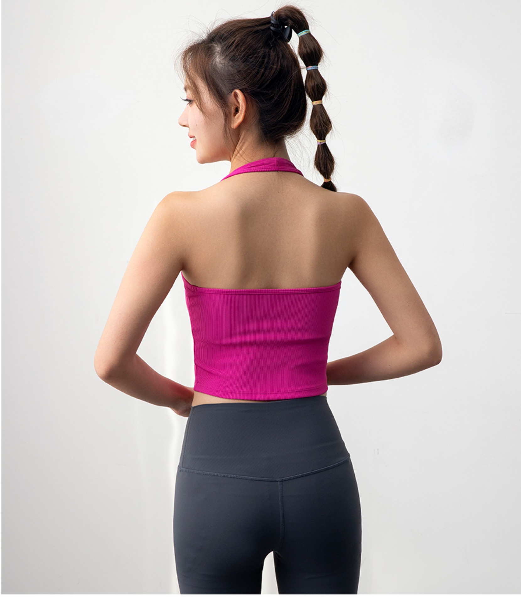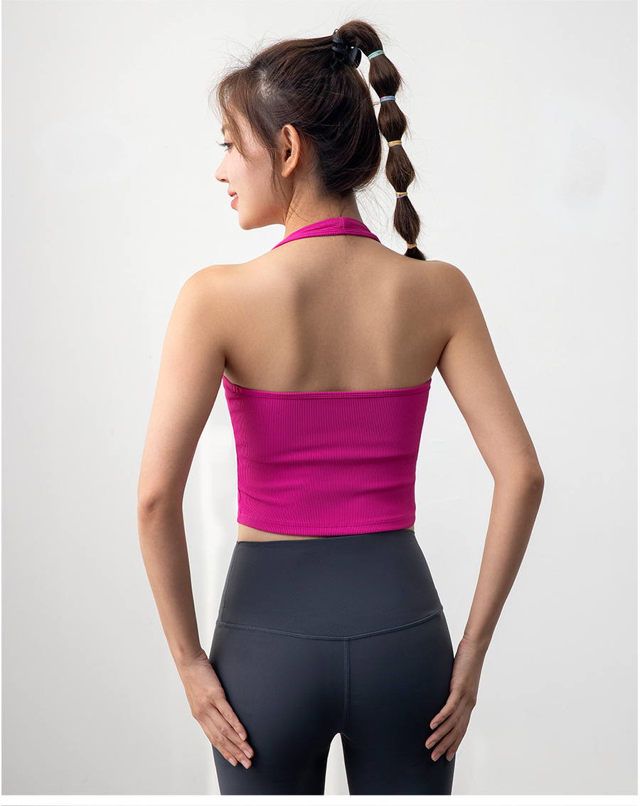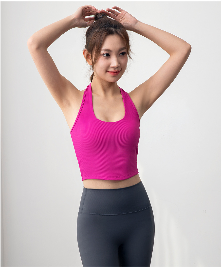 여자 스포츠 탑 트레이닝 조끼 필라테스 요가 속옷 피트니스 세트 원피스 컵 착용 목 브래지어