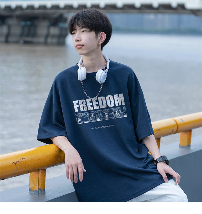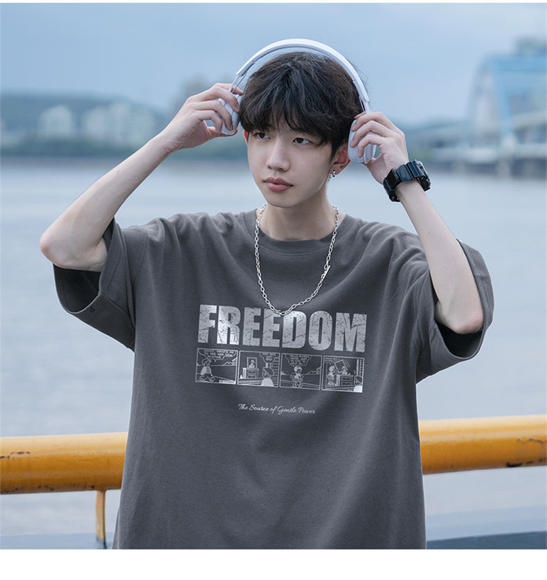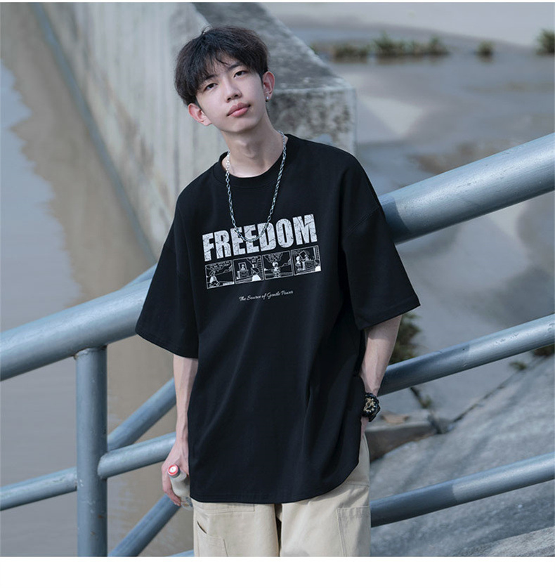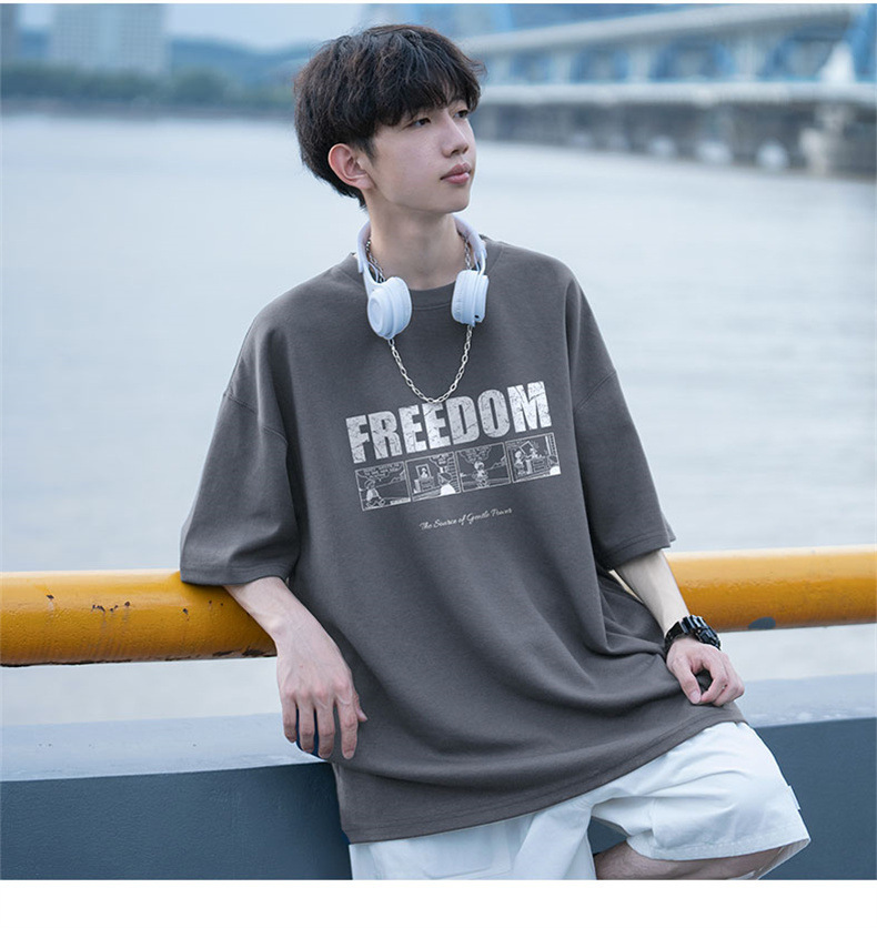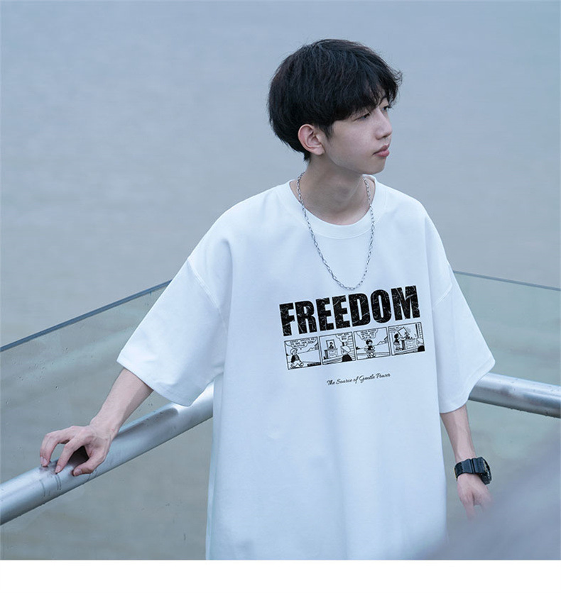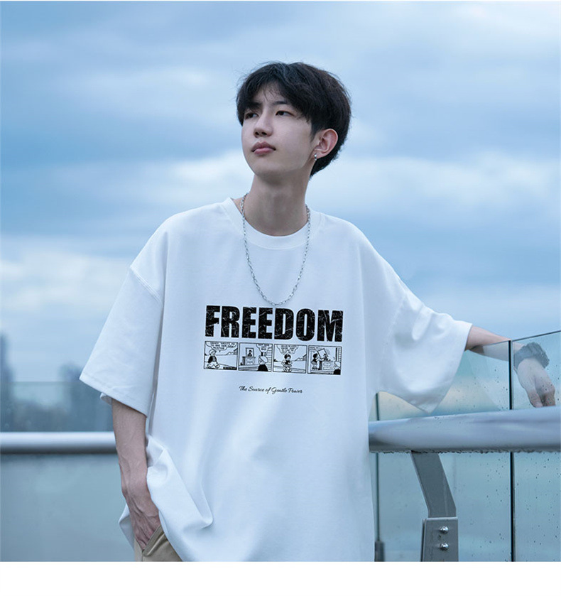 퓨어 코튼 반팔 티셔츠 남자 여름 2024 뉴 아메리칸 스타일 패셔너블 브랜드 루즈 크루 넥 헤비 웨이트 티셔츠 남성용 반소매 티셔츠스토어 가기