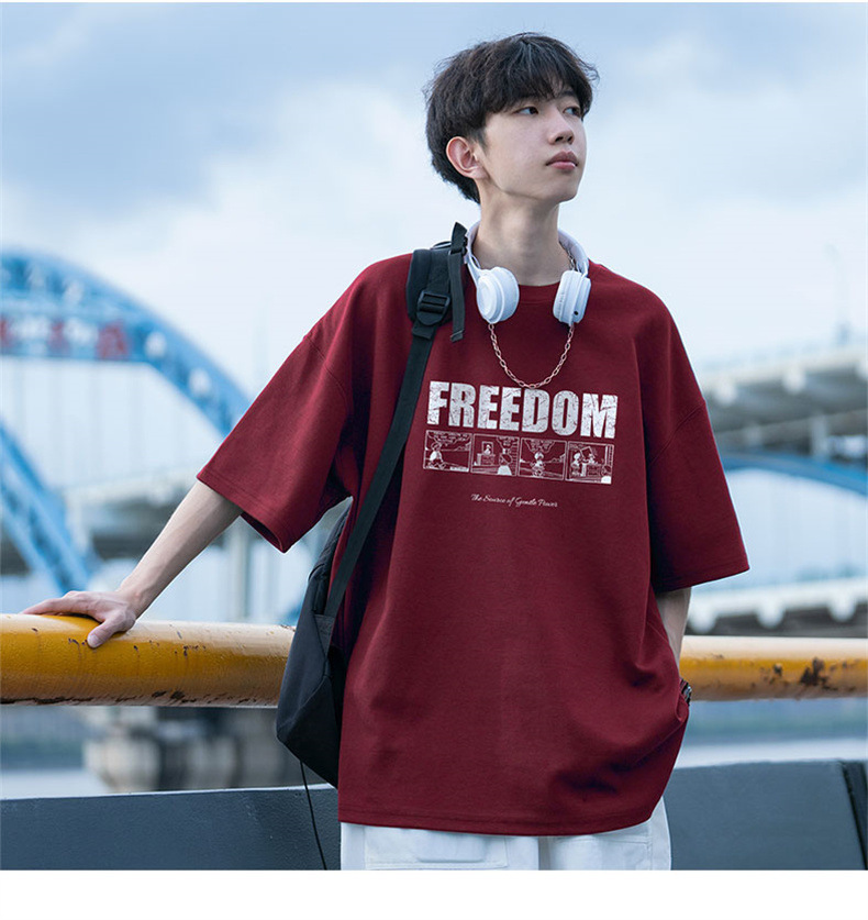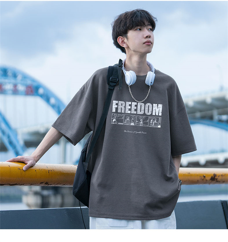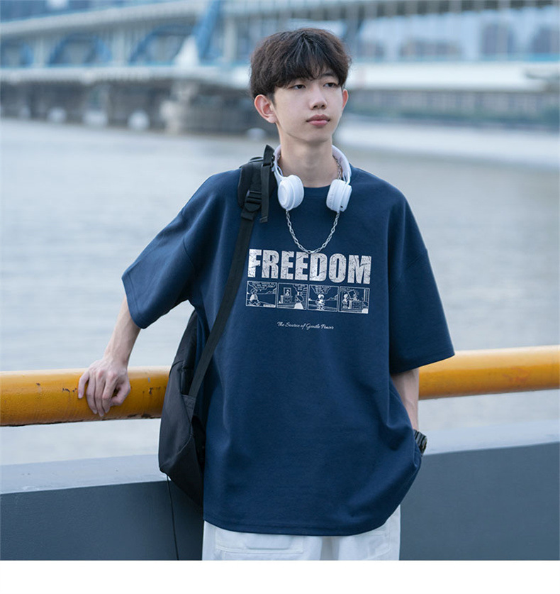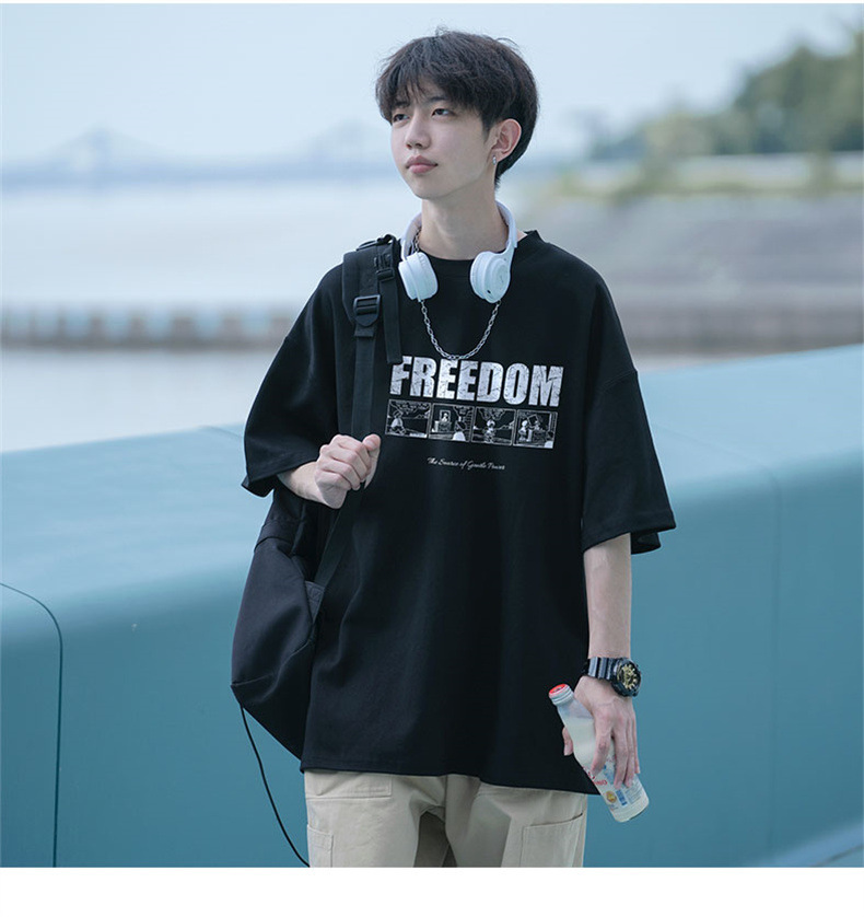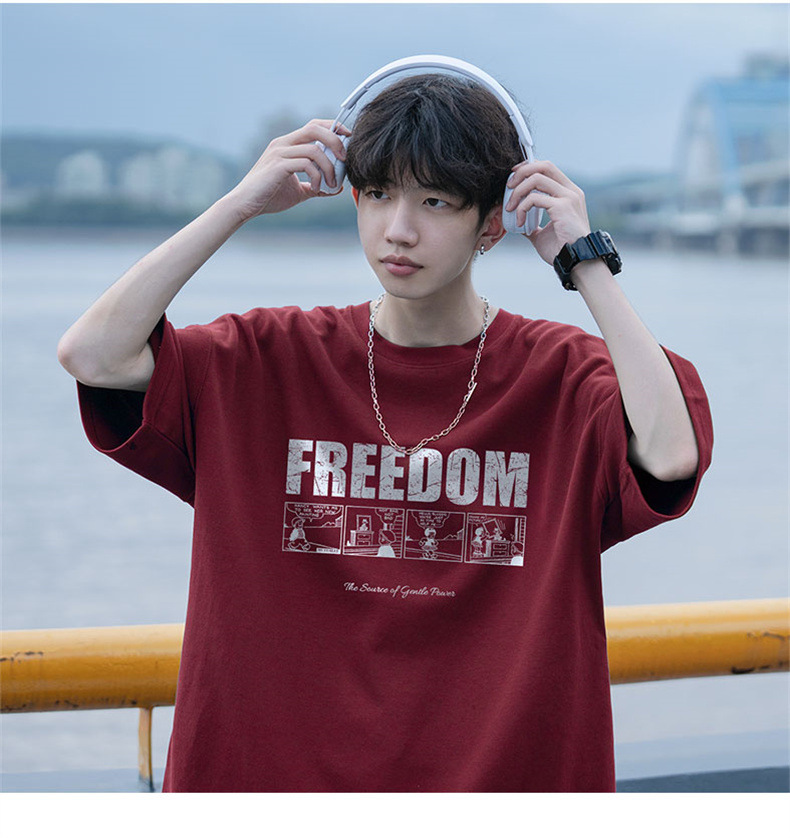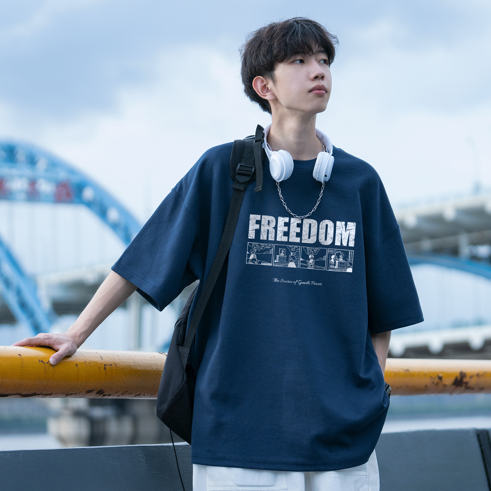 퓨어 코튼 반팔 티셔츠 남자 여름 2024 뉴 아메리칸 스타일 패셔너블 브랜드 루즈 크루 넥 헤비 웨이트 티셔츠 남성용 반소매 티셔츠스토어 가기