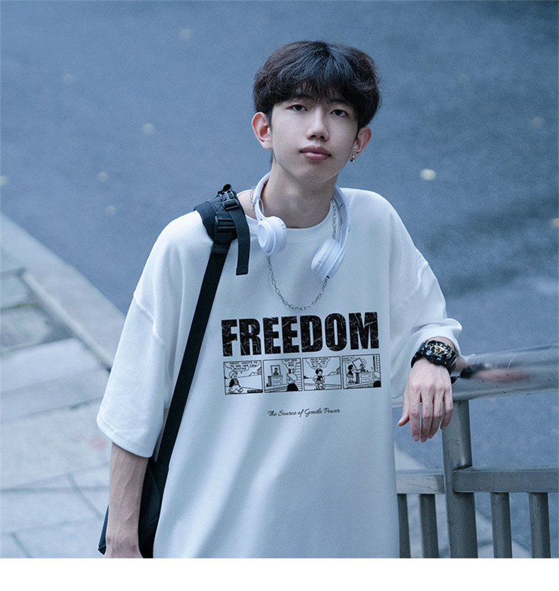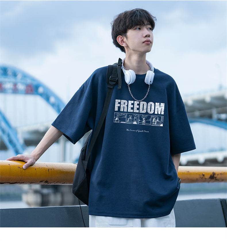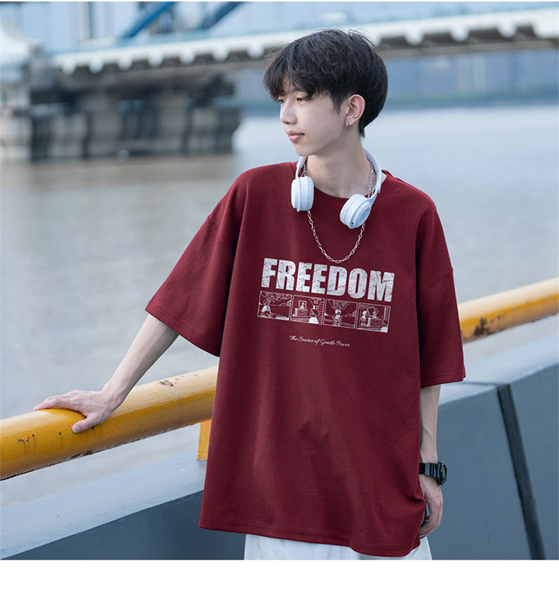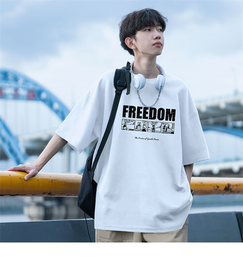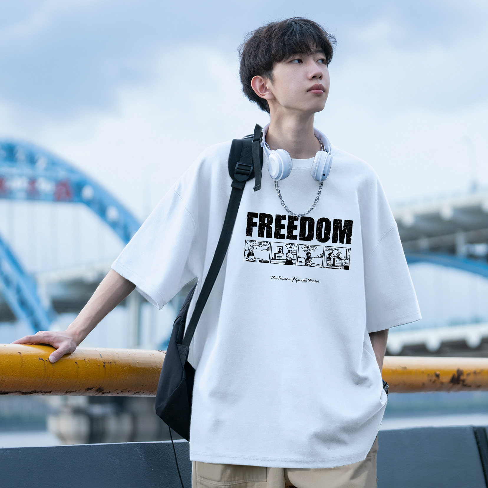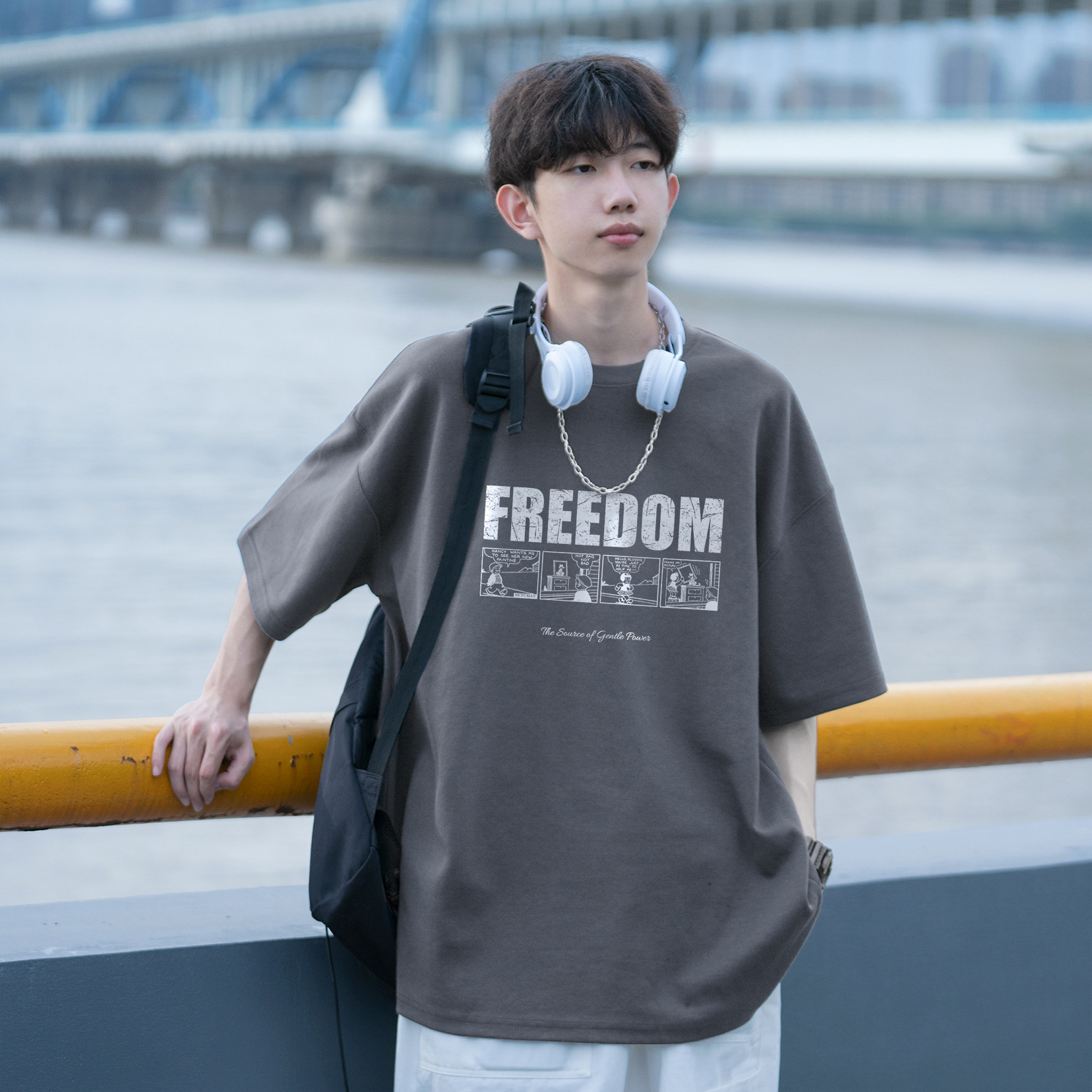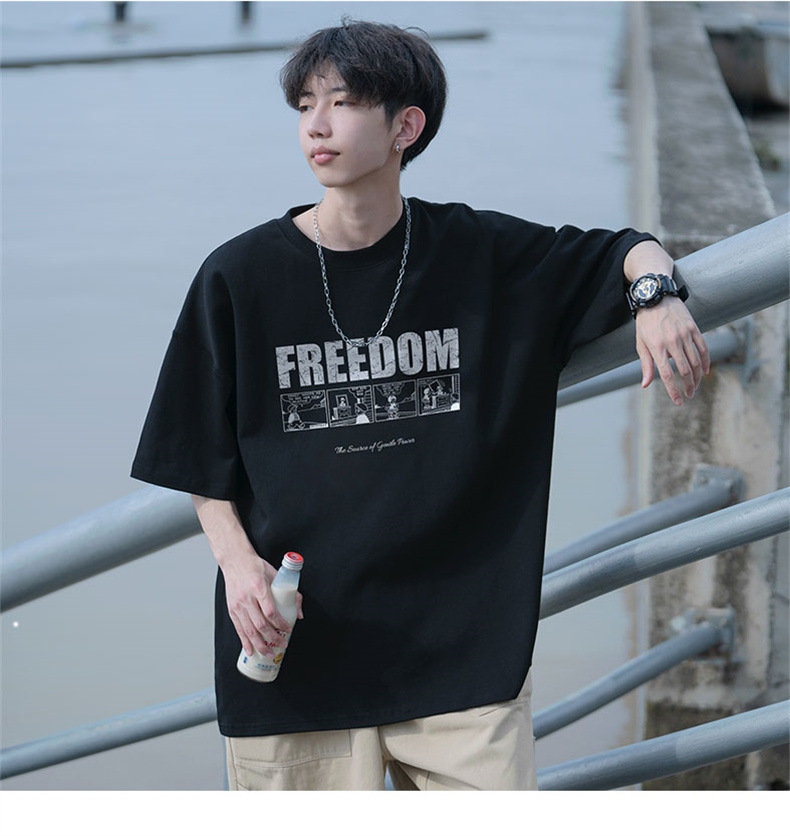 퓨어 코튼 반팔 티셔츠 남자 여름 2024 뉴 아메리칸 스타일 패셔너블 브랜드 루즈 크루 넥 헤비 웨이트 티셔츠 남성용 반소매 티셔츠