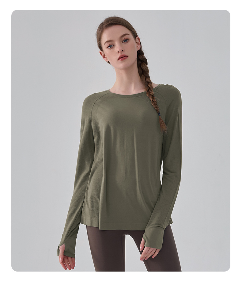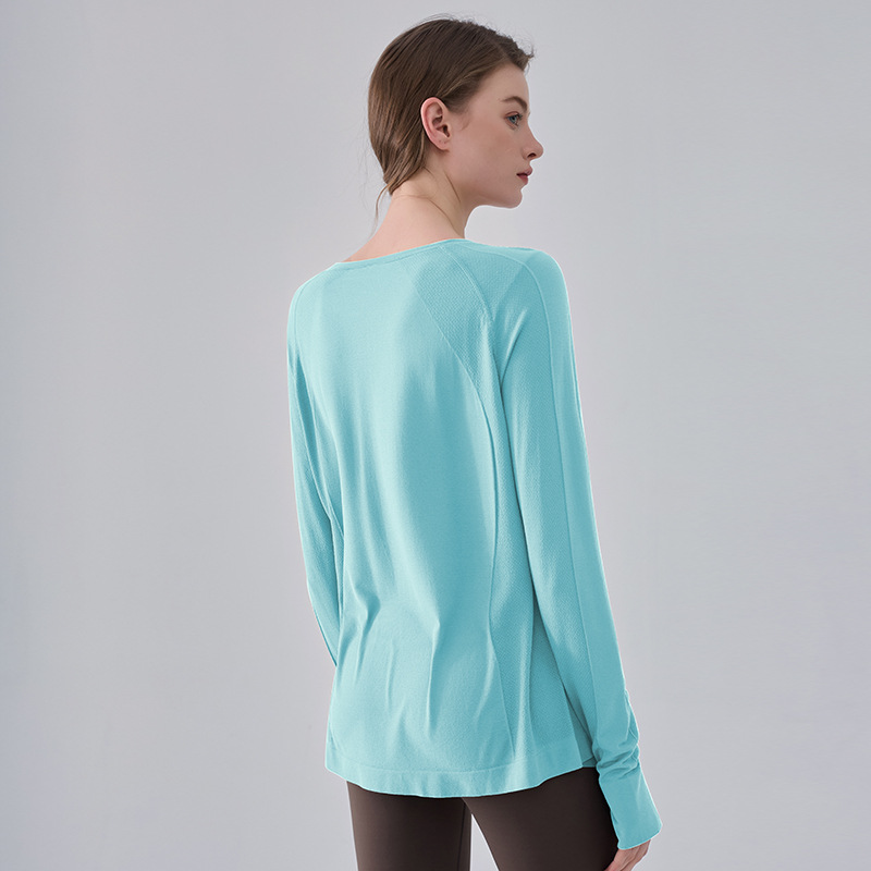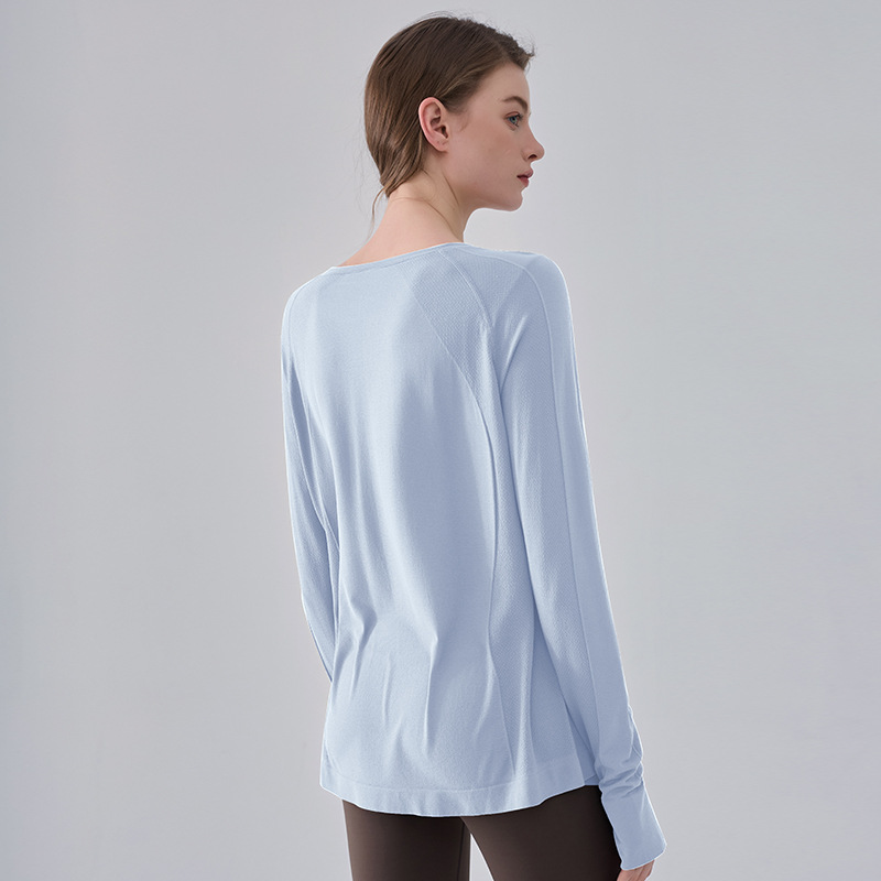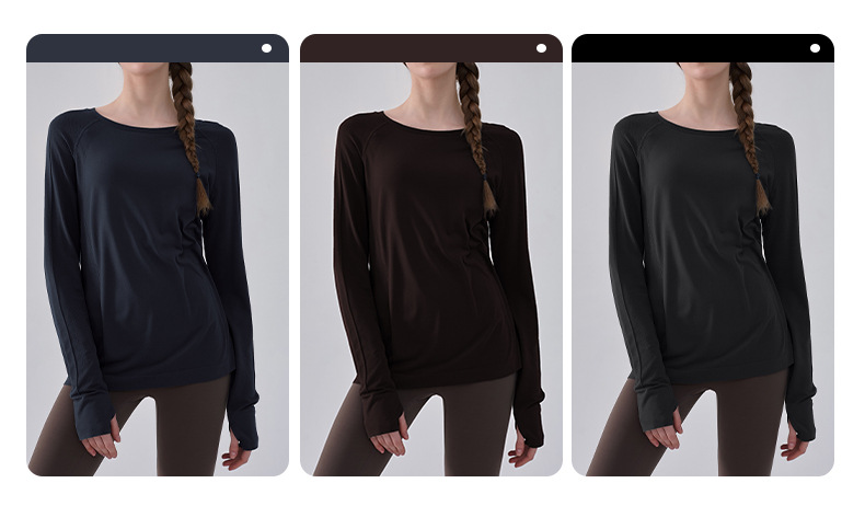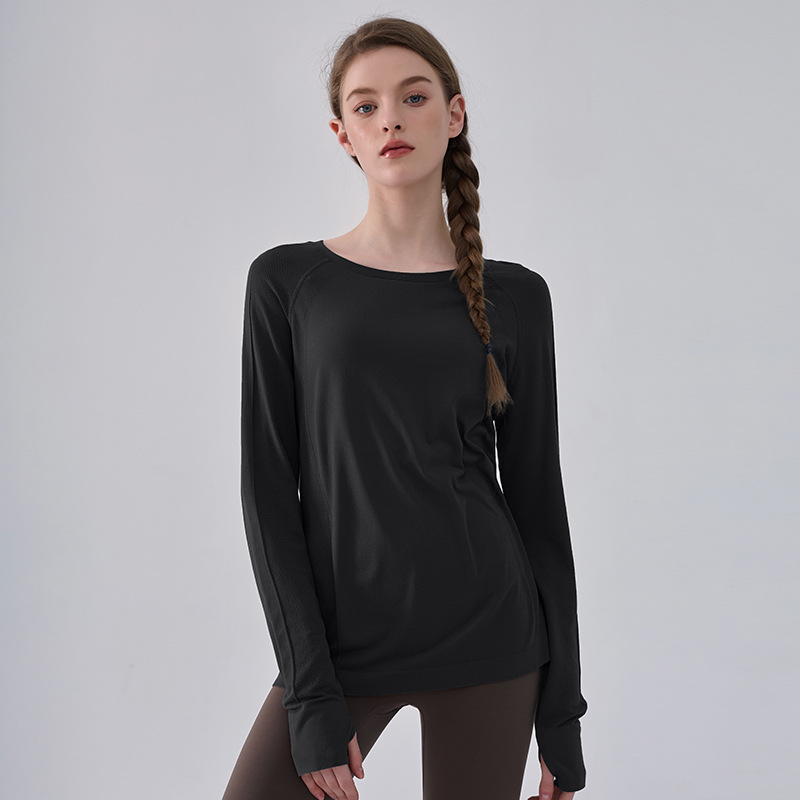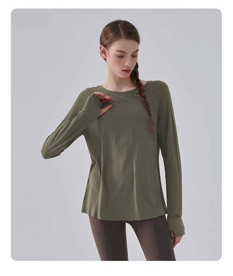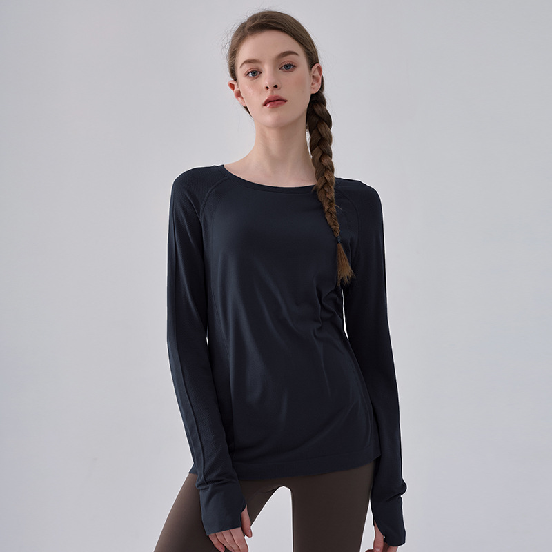 국경 간 새로운 요가 의류 여성의 빠른 건조 느슨한 필라테스 훈련 피트니스 의류 탑 스포츠 긴팔 가을과 겨울