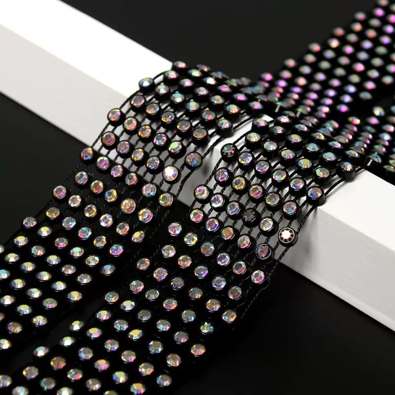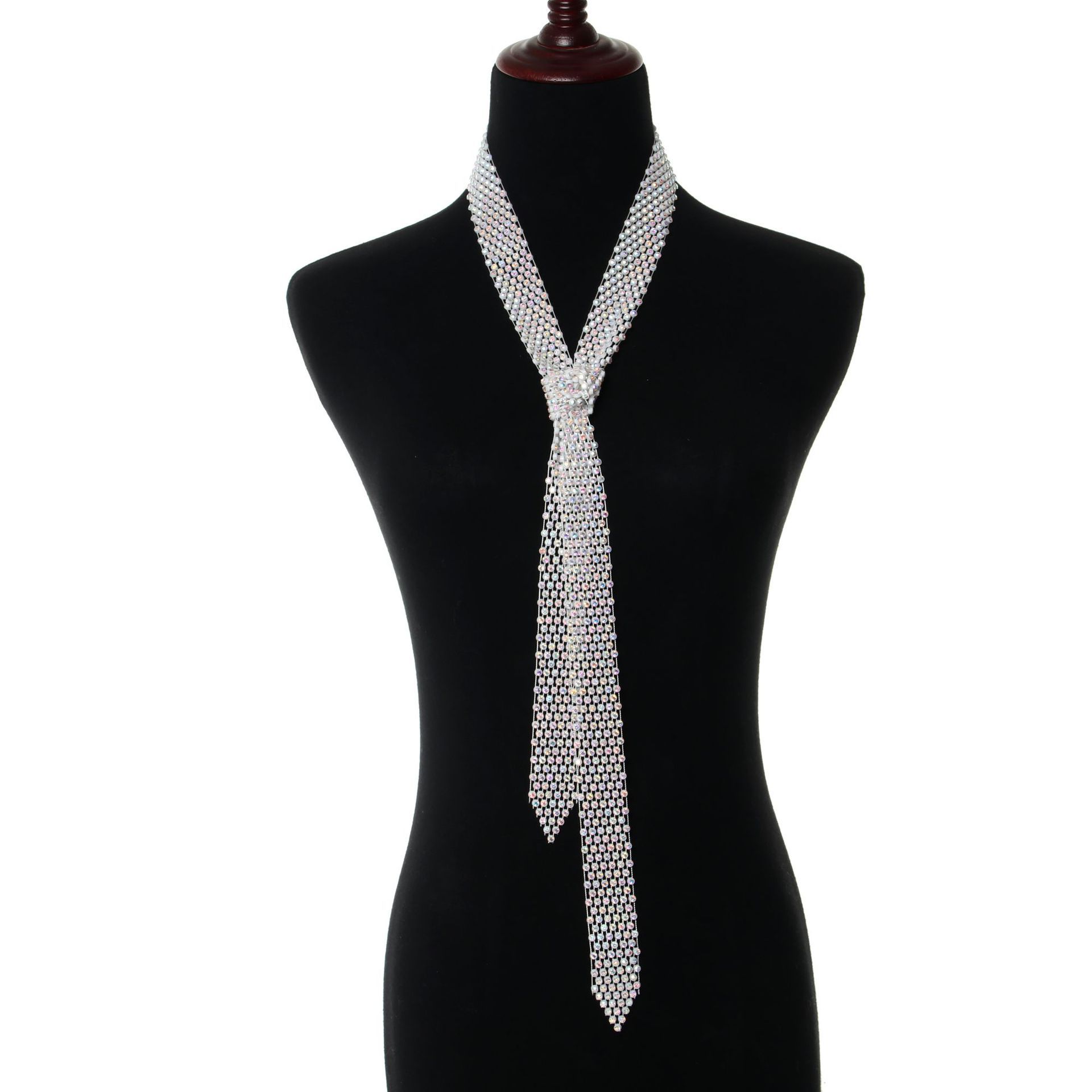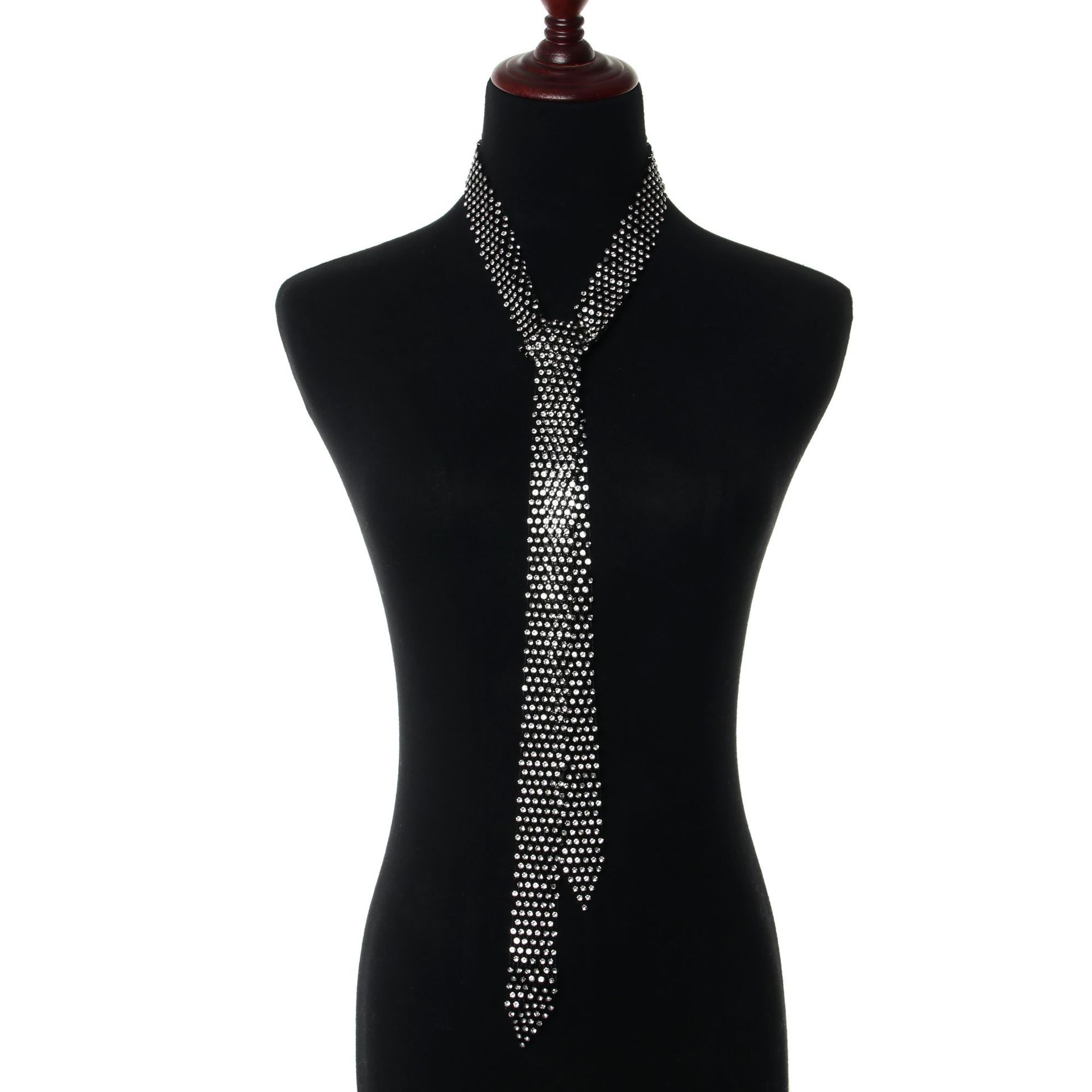 유럽 및 미국 스타일 액세서리, 개성 있는 워터 드라이즈 메쉬 트렌디 넥타이, 다이아몬드 장식 나이트클럽 스타일 레이디스 스팽글 허리 체인 및 목걸이 130cm