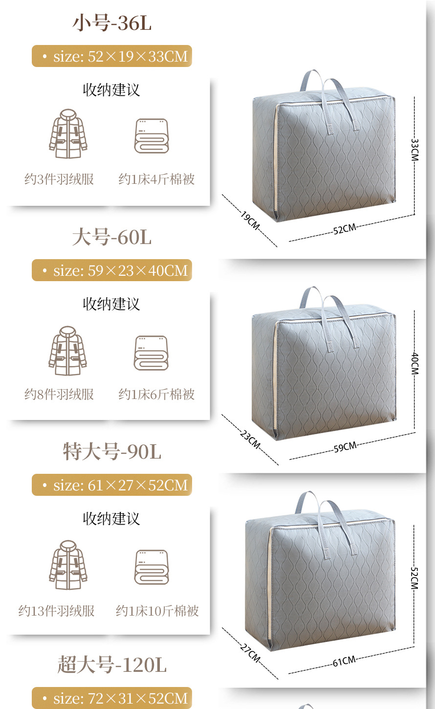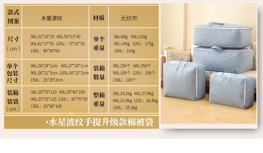 퀼트 보관 가방 두꺼운 의류 수하물 이동 가방 습기 방지 마무리 가방 기숙사 보관 상자