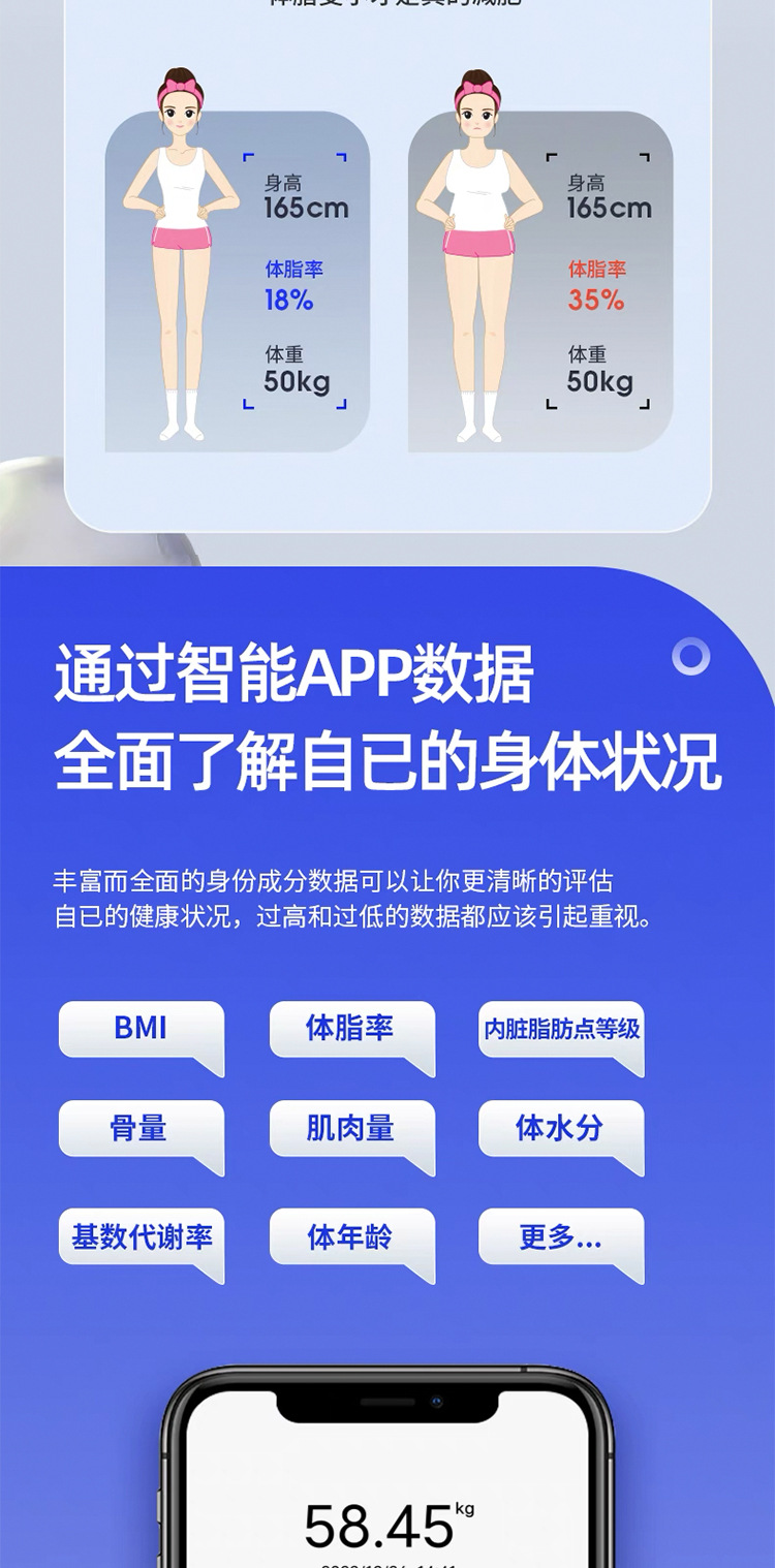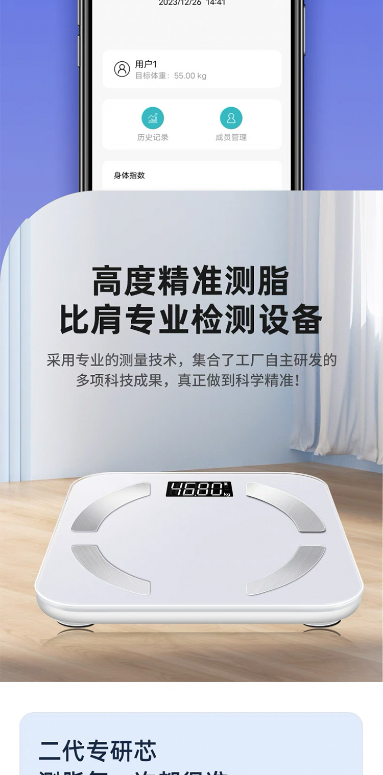 체지방 측정기 가정용 체중계 정밀 전자저울 인체저울 성인용 소형 충전식 모델 미지아 앱 연동