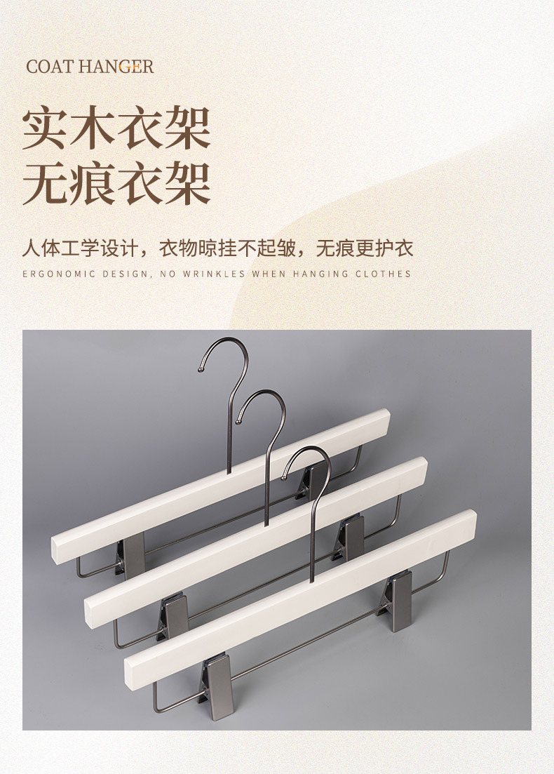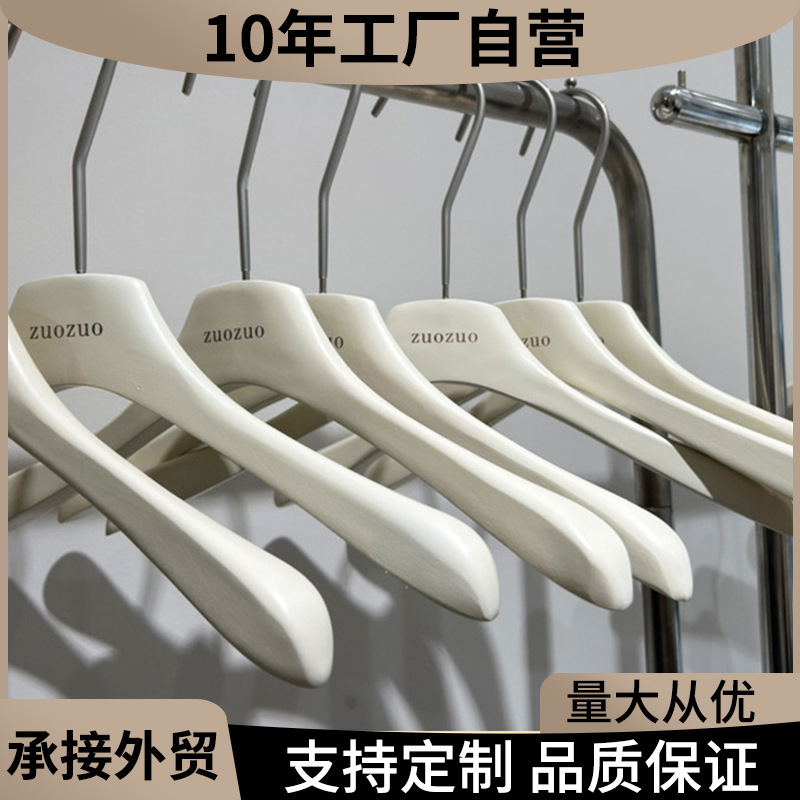의류 매장용 밀크 화이트색 나무 옷걸이, 여성복 및 남성복용, 미끄럼 방지, 두꺼운, 흔적 없는, 로고 인쇄 가능스토어 가기