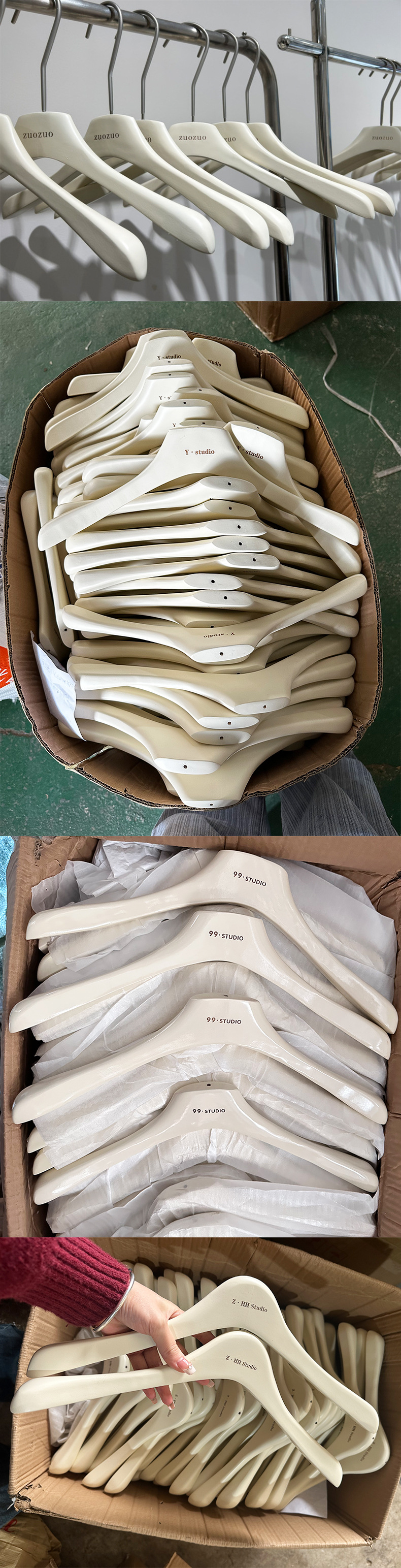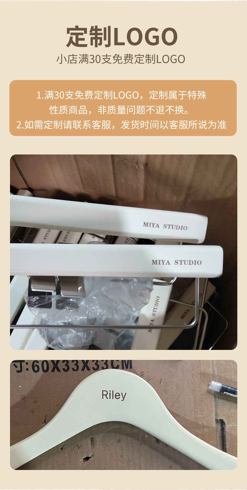 의류 매장용 밀크 화이트색 나무 옷걸이, 여성복 및 남성복용, 미끄럼 방지, 두꺼운, 흔적 없는, 로고 인쇄 가능