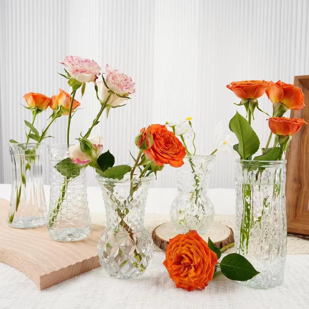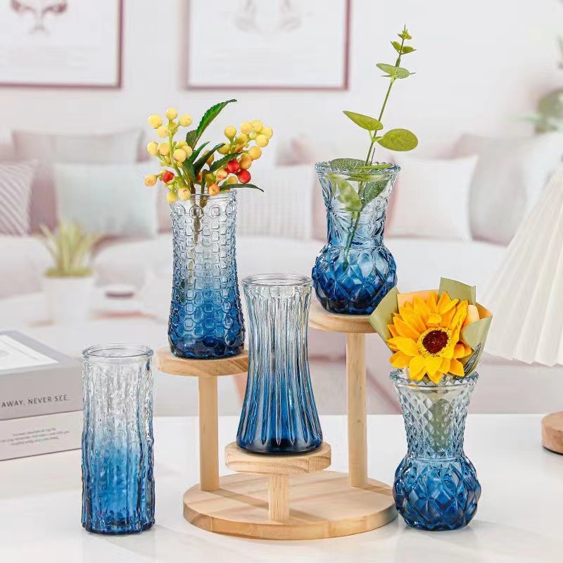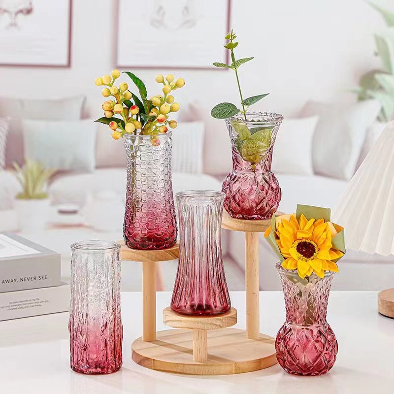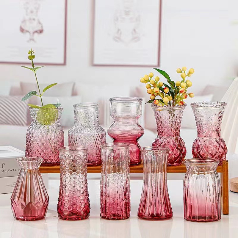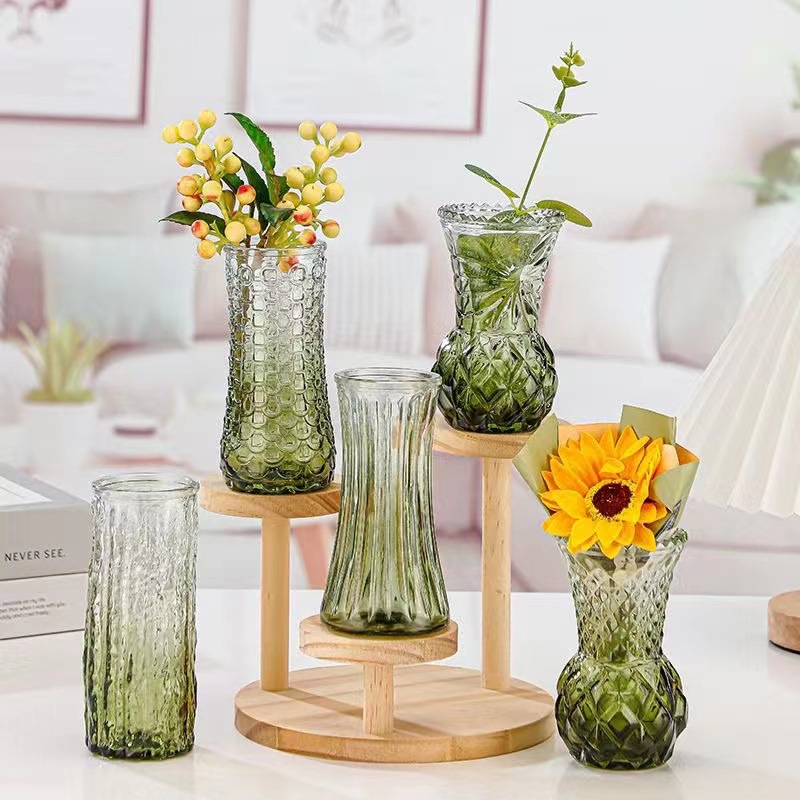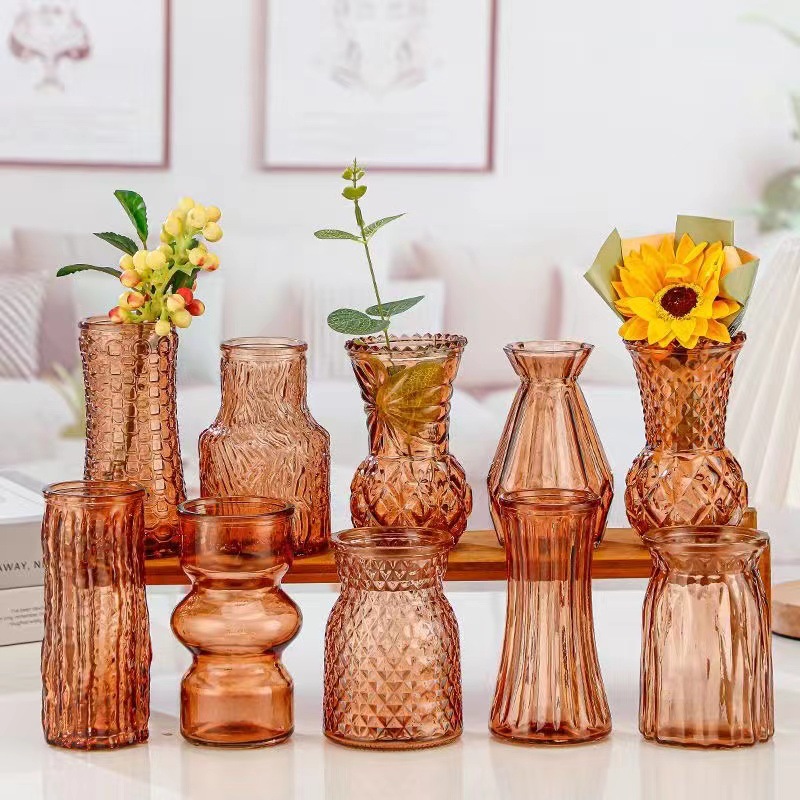 대외 무역 도매 창조적 인 작은 꽃병 유리 하이 엔드 느낌 홈스테이 중간 고대 꽃병 s 스타일 높은 가치의 식탁 장식품