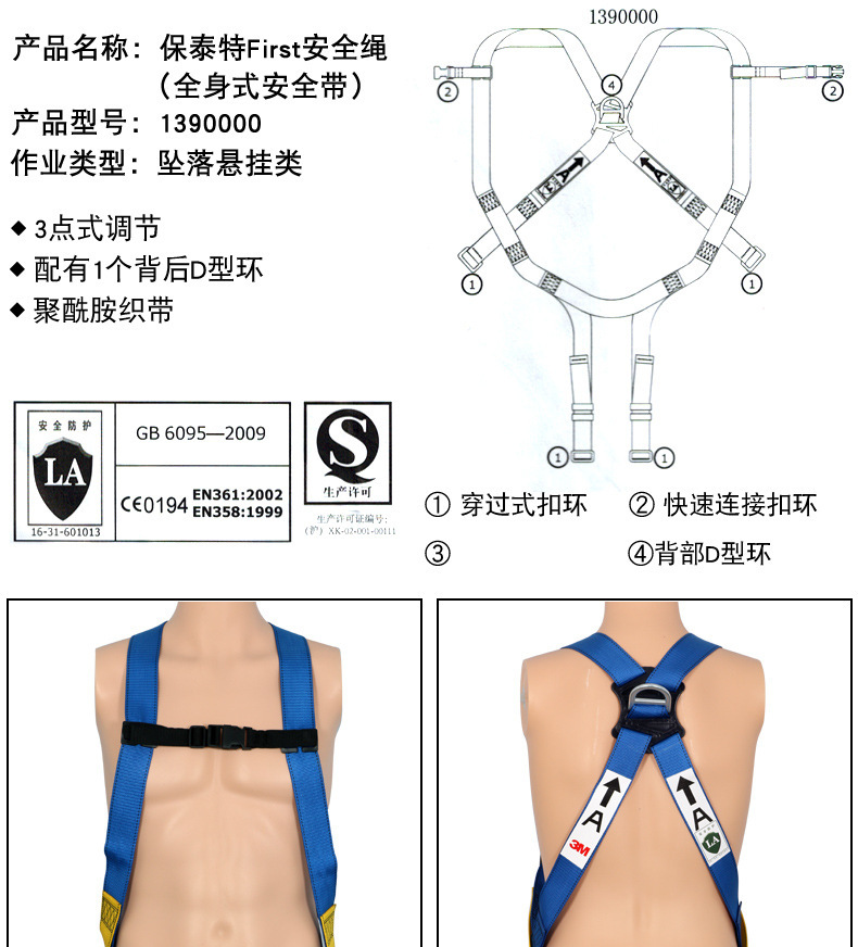 Kebit 3M 1390000 최초의 더블 백 사이트 전기 벨트 3 점 전신 건설 안전 벨트스토어 가기