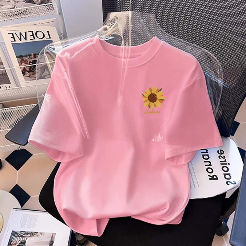 여성 아동복 핑크 코튼 반팔 티셔츠 여름 느슨한 큰 어린이 세련된 패션 만화 인쇄 탑 트렌디스토어 가기