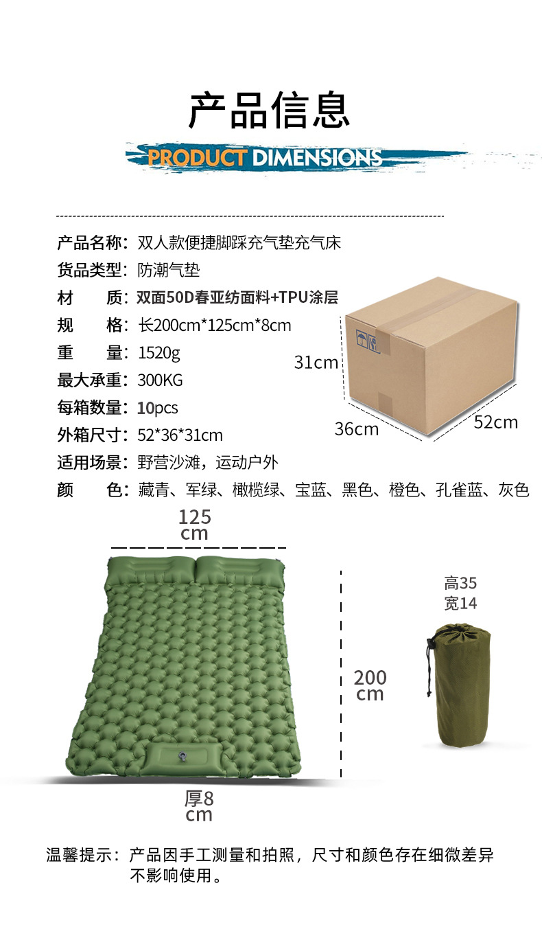 2025년형 크로스보더 2인용 야외 에어매트 캠핑 방습매트 에어매트리스 차량용 텐트 야외 캠핑용스토어 가기
