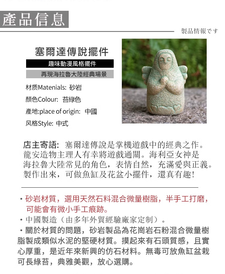 국경 간 젤다의 전설 헬리아 여신 장식품 헬라루 수호 성인 시뮬레이션 모델 물고기 탱크 분재 장식