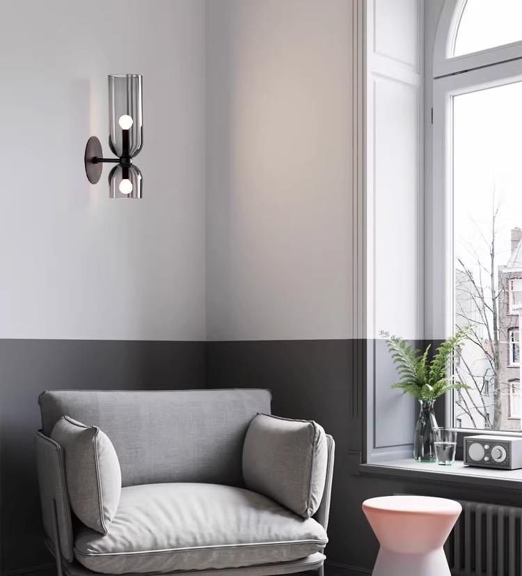 중산 공장 직접 디자이너 거실 배경 벽 유리 벽 램프 북유럽 미니멀 럭셔리 창조적 인 침실 침대스토어 가기