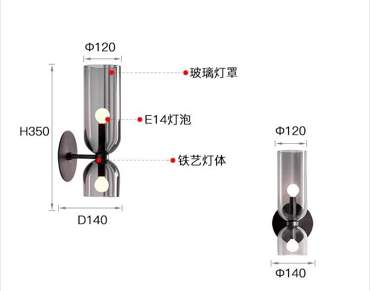• 스모크 그레이 벽 램프에는 광원이 함께 제공됩니다.