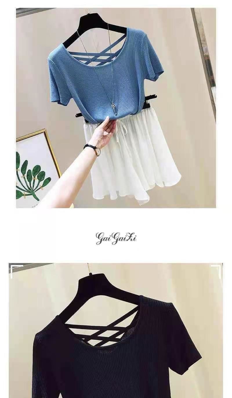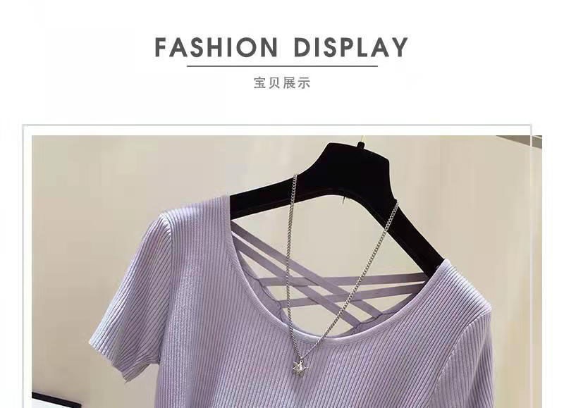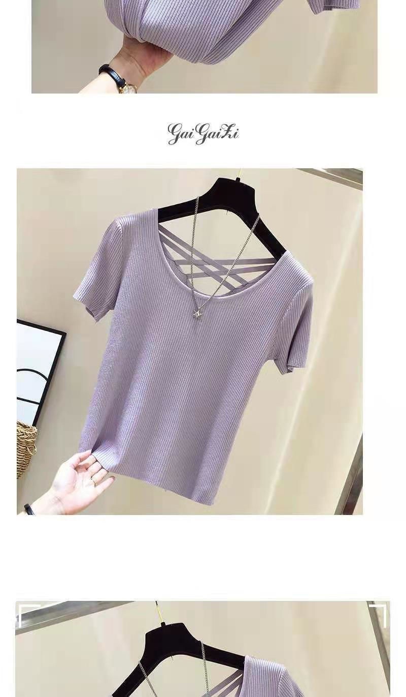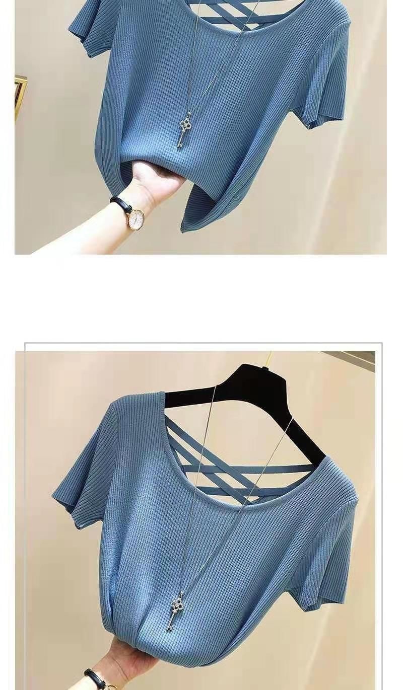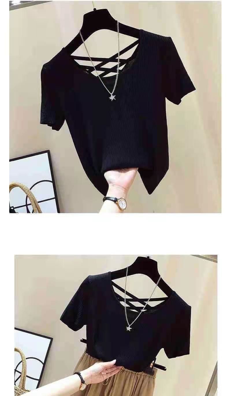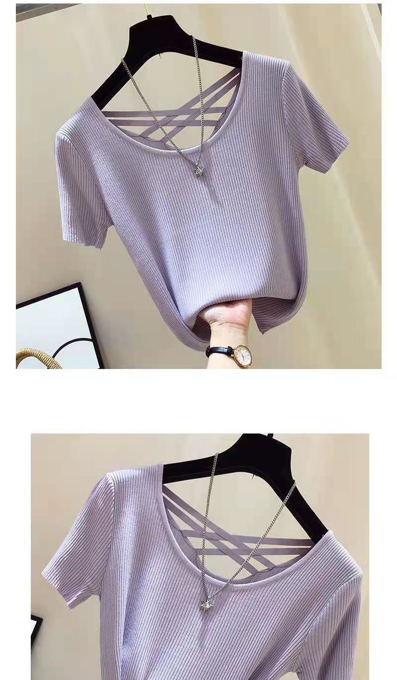 여성을위한 얼음 실크 스레드 반팔 티셔츠 여름 2025 새로운 한국어 버전 얇은 슬림 섹시한 백리스 탑 바닥 셔츠