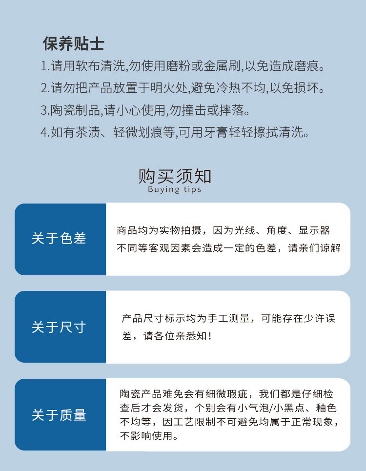 【注意】本产品是陶瓷制品;属于定制产品;陶瓷产品无退货只有补货