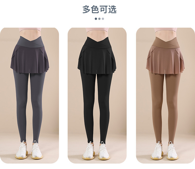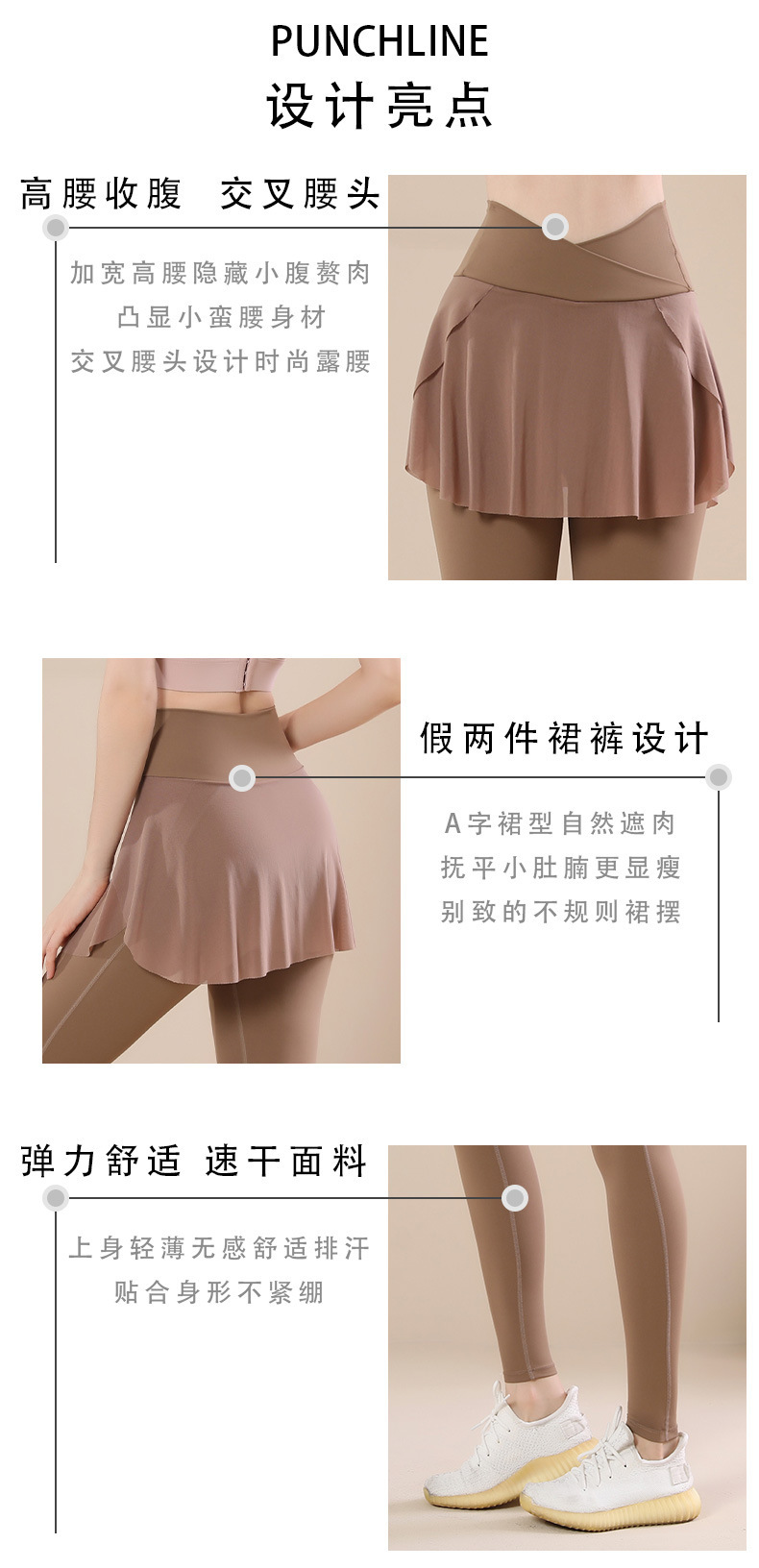 국경 간 가짜 투피스 요가 바지 여성용 메쉬 스티칭 타이트 스포츠 바지 빠른 건조 통기성 러닝 피트니스 바지스토어 가기