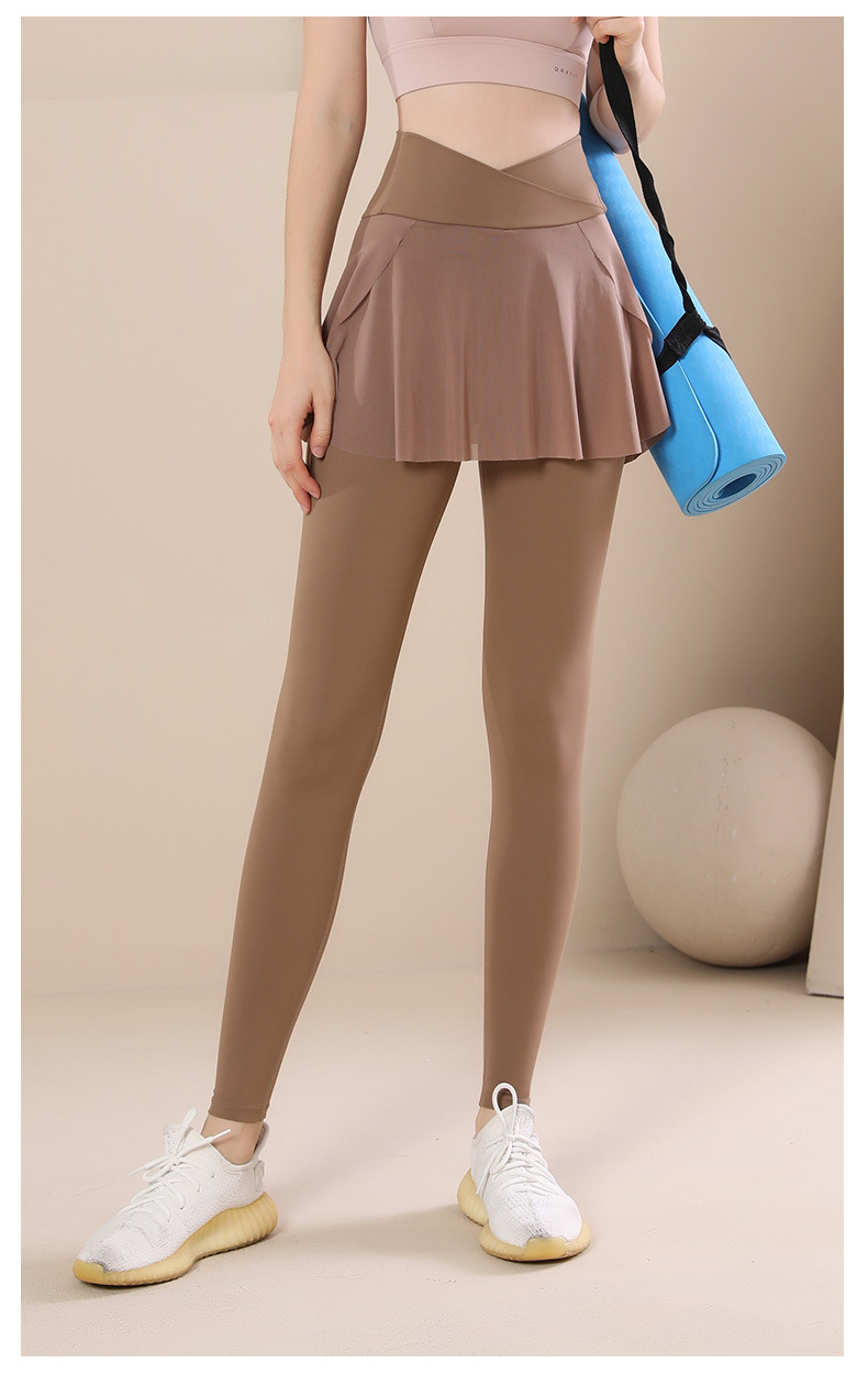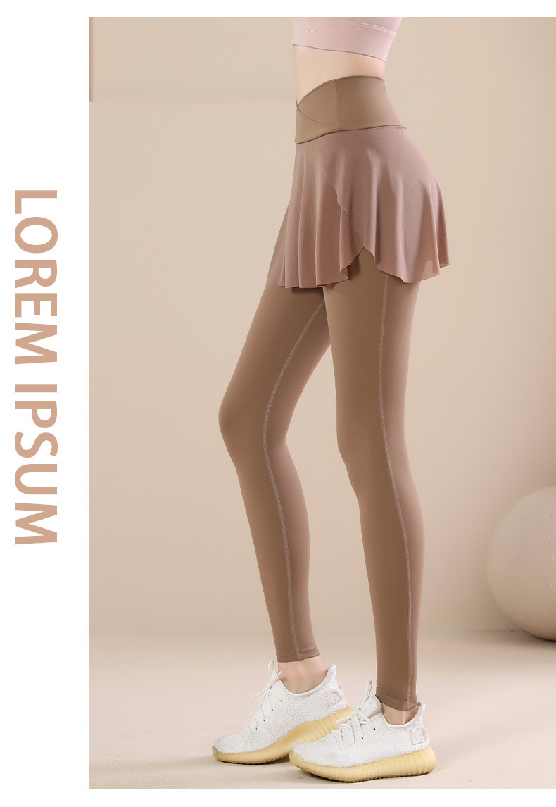 국경 간 가짜 투피스 요가 바지 여성용 메쉬 스티칭 타이트 스포츠 바지 빠른 건조 통기성 러닝 피트니스 바지