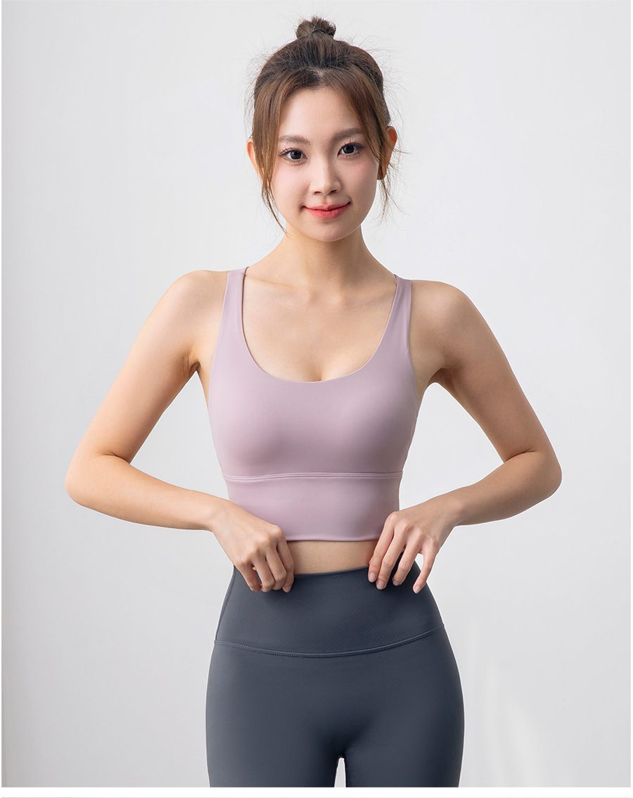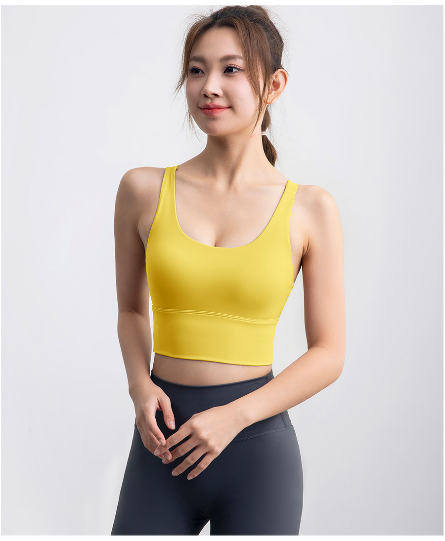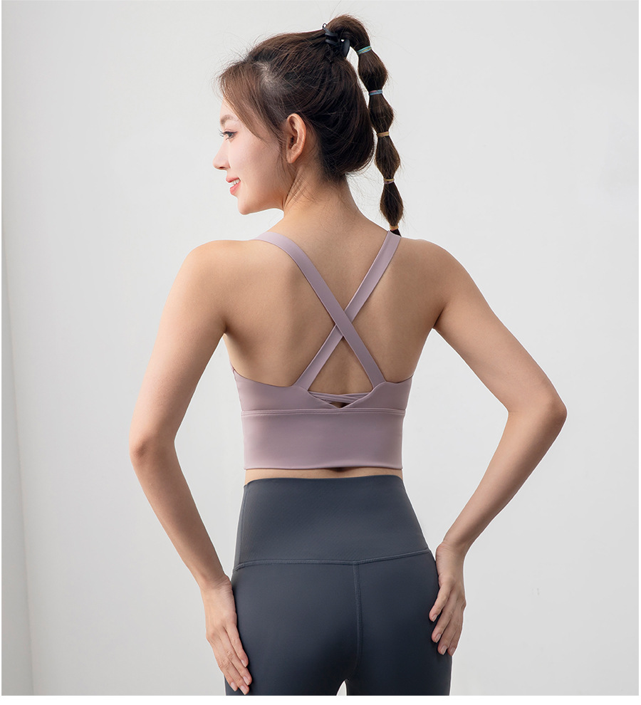 요가 속옷 원피스 고정 컵 충격 방지 푸시 업 크로스 아름다운 등 긴 외부 착용 스포츠 조끼 가슴 패드스토어 가기