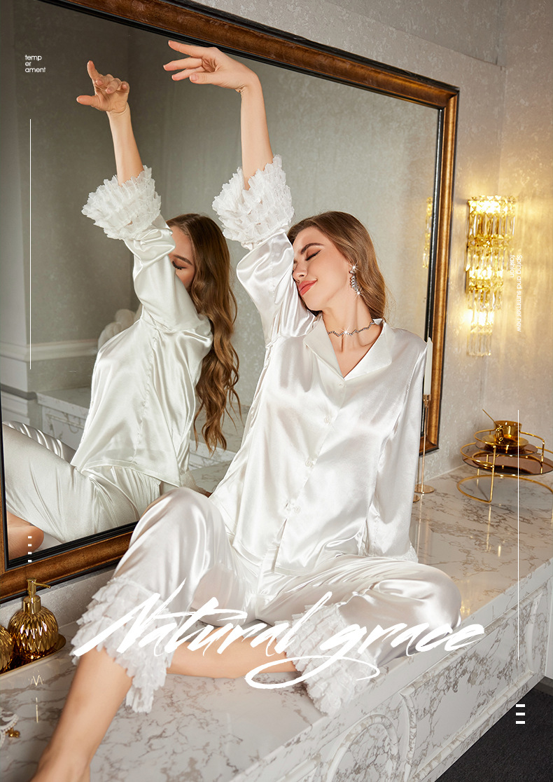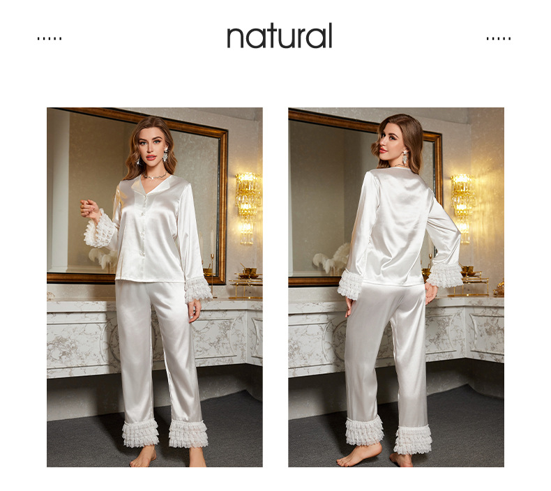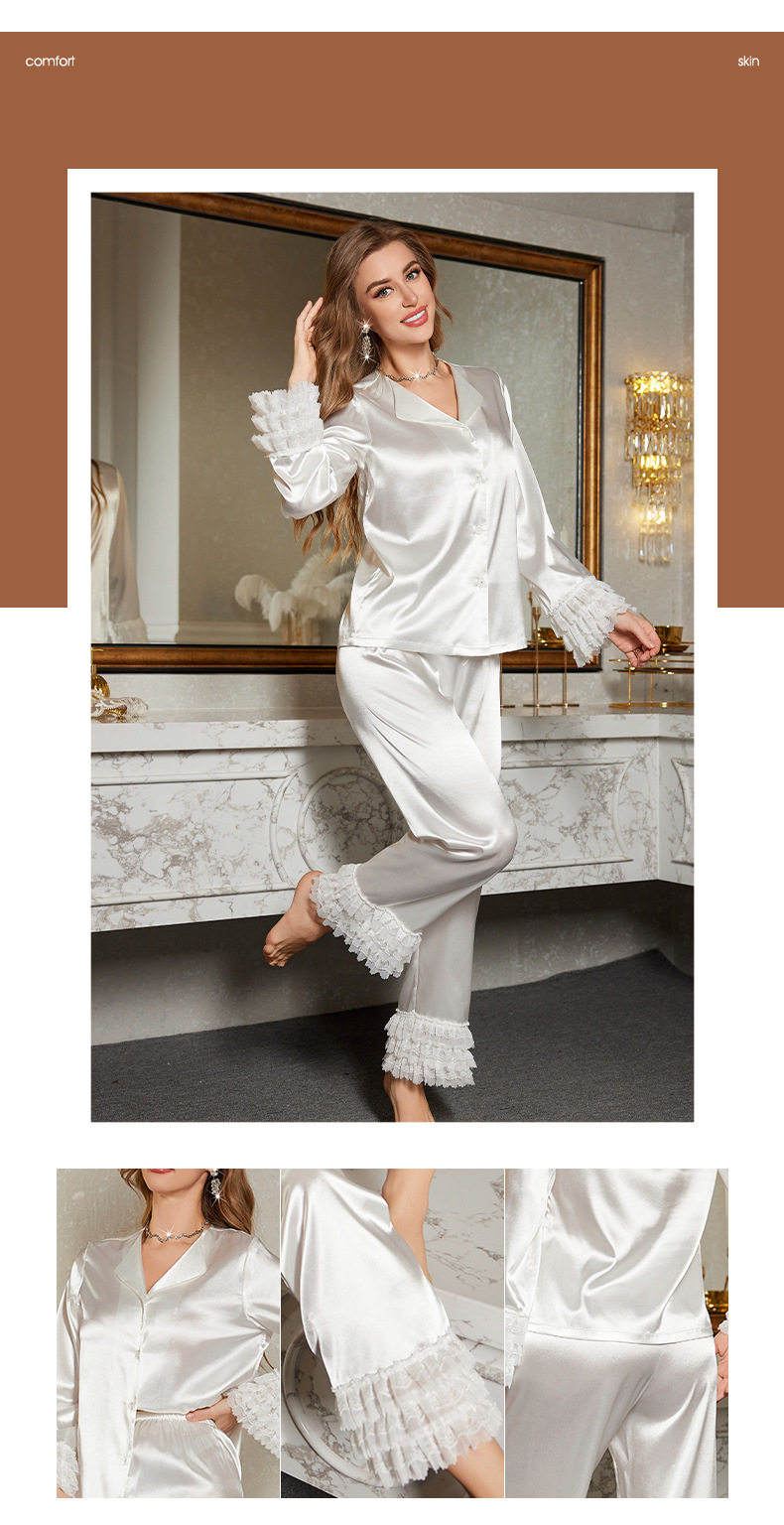 국경 간 새로운 유럽과 미국 스타일 파자마 여성 럭셔리 자정 시리즈 아이스 실크 레이스 더블 롱 여자 세트 TZ3534스토어 가기