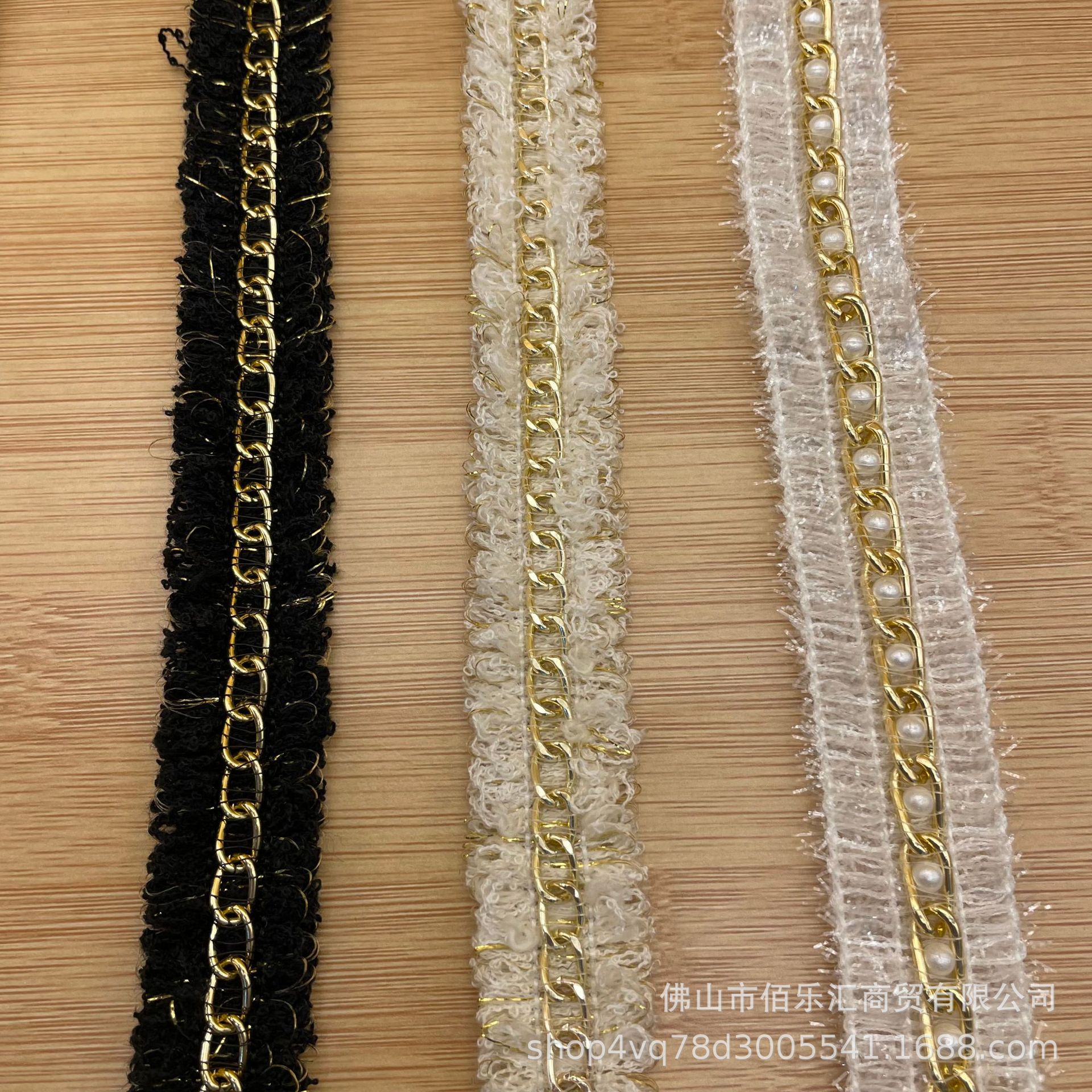 뉴 골드 실크 샤넬 스타일 펄 레이스 수제 구슬 리본 DIY 의류 한푸 가방 후드 엣지 액세서리스토어 가기