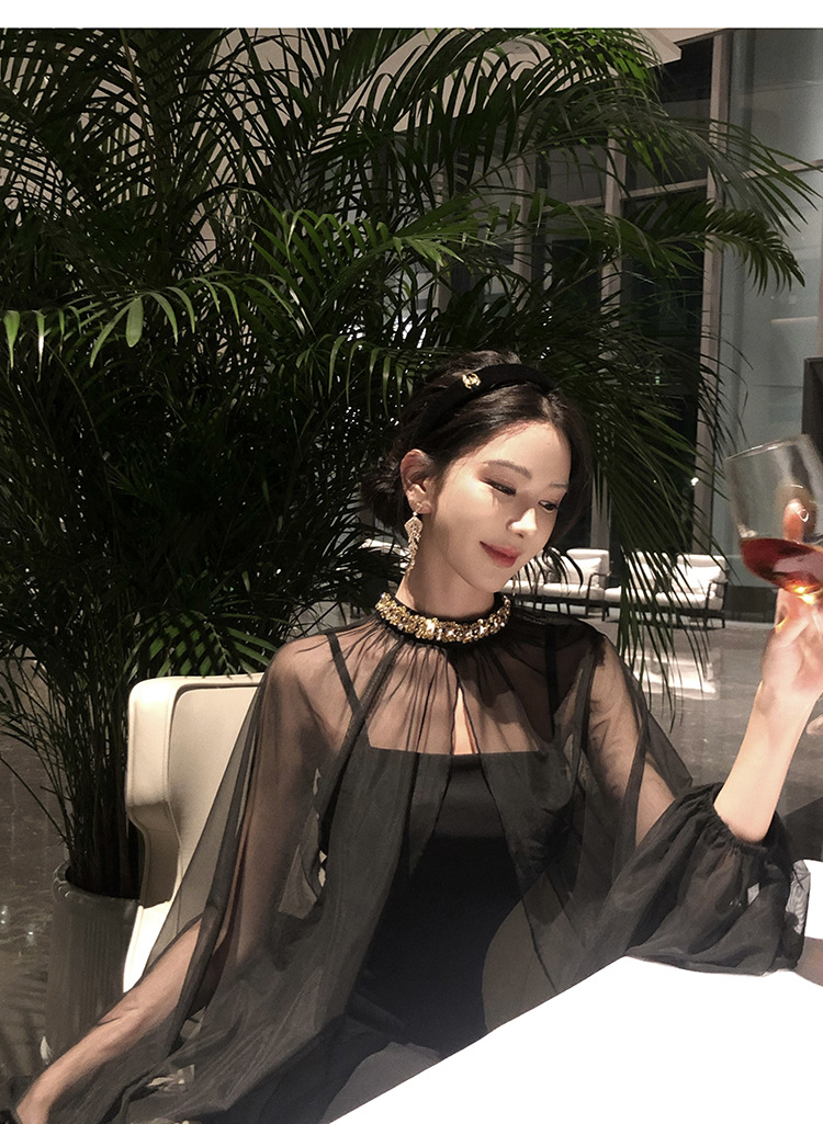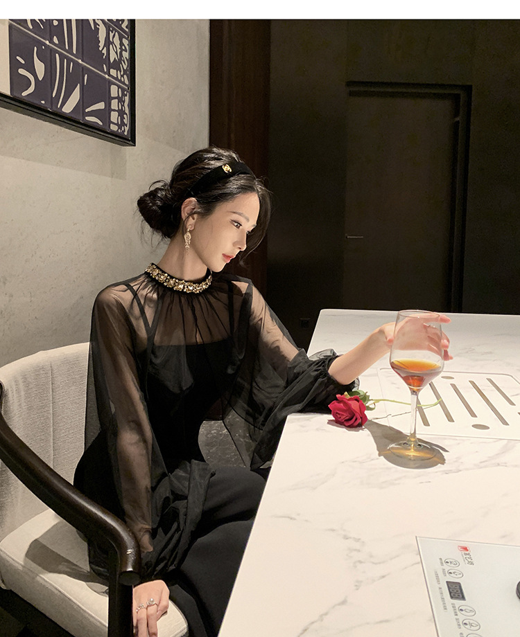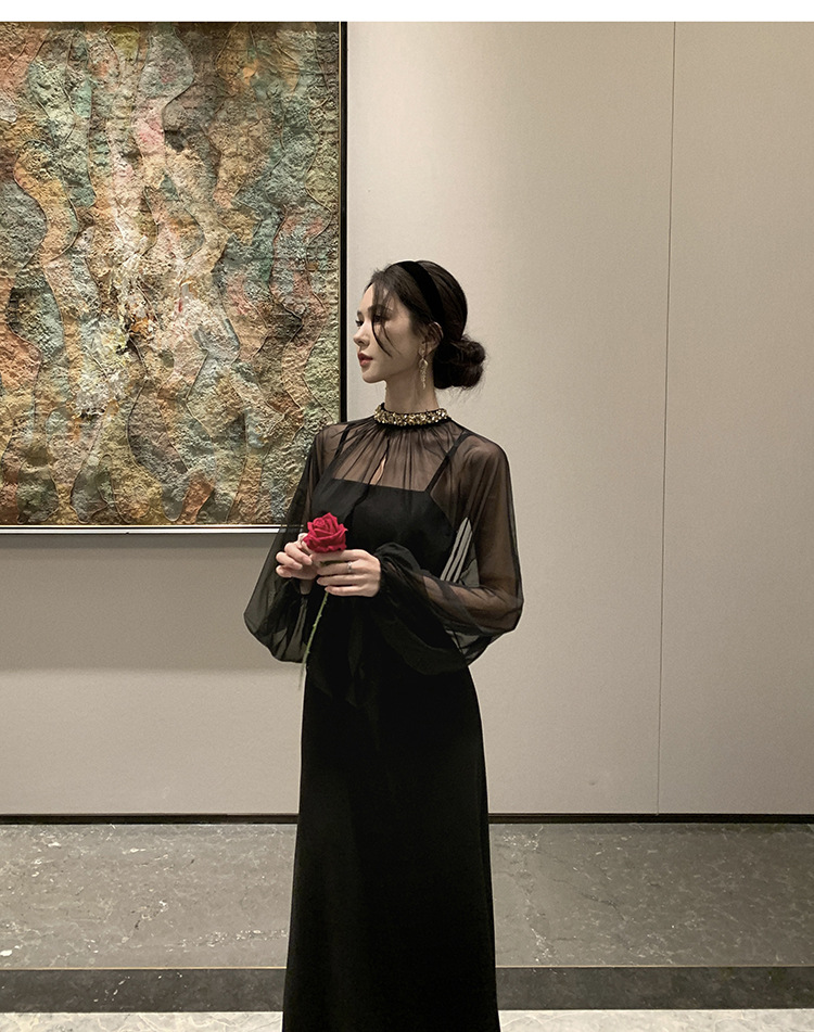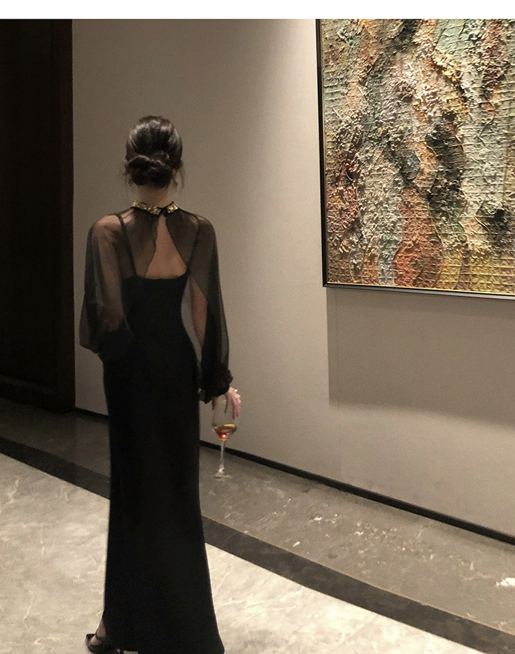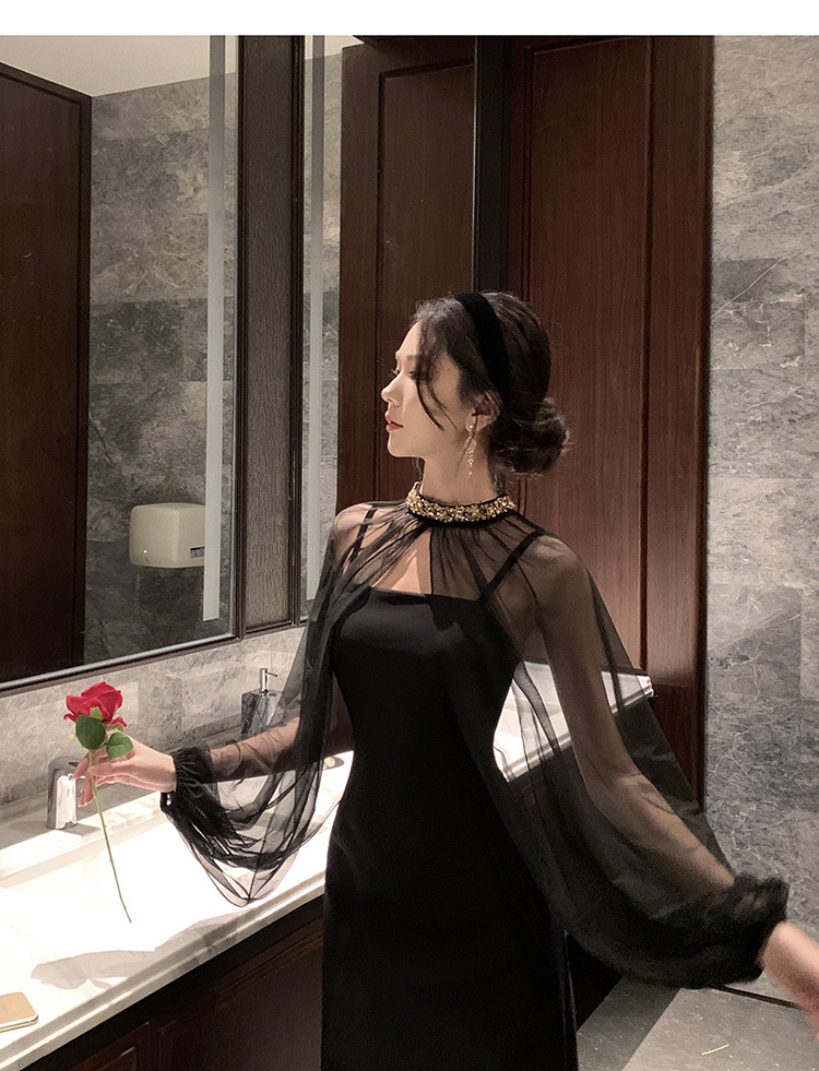 여자 가을과 겨울 원피스 섹시한 우아한 검은 메쉬 슬링 헵번 향기로운 프랑스 저녁 원피스