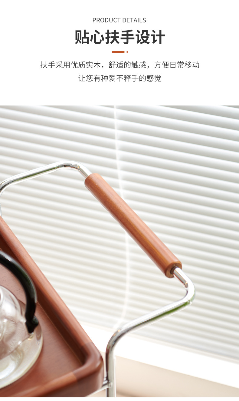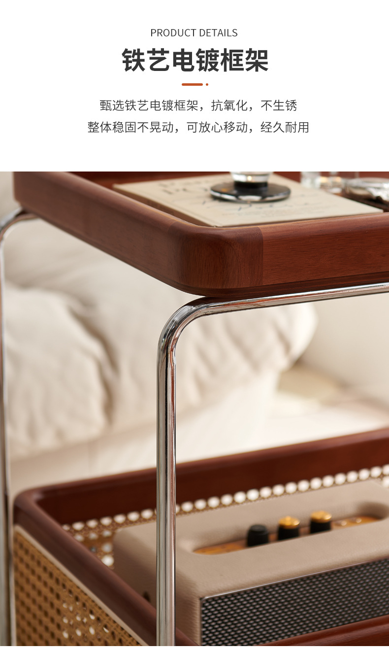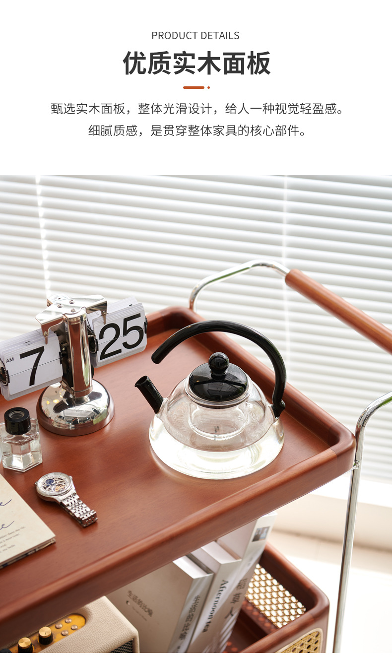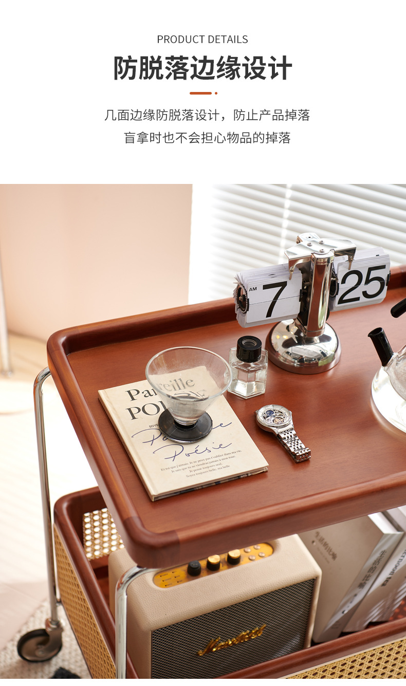定制带扶手置物架小推车实木托盘带藤编收纳筐小推车双层收纳架