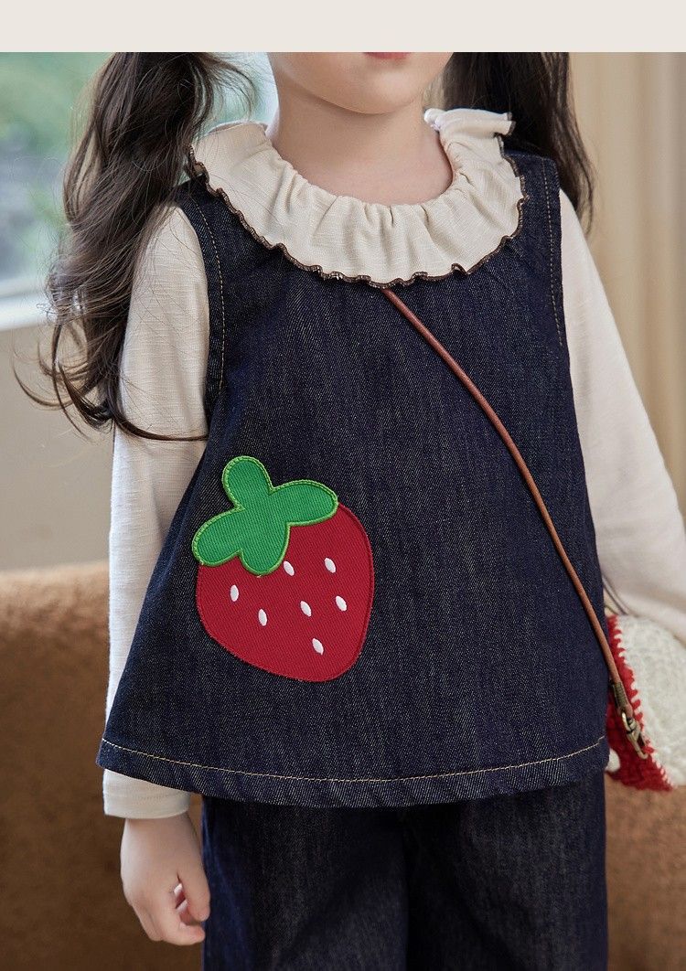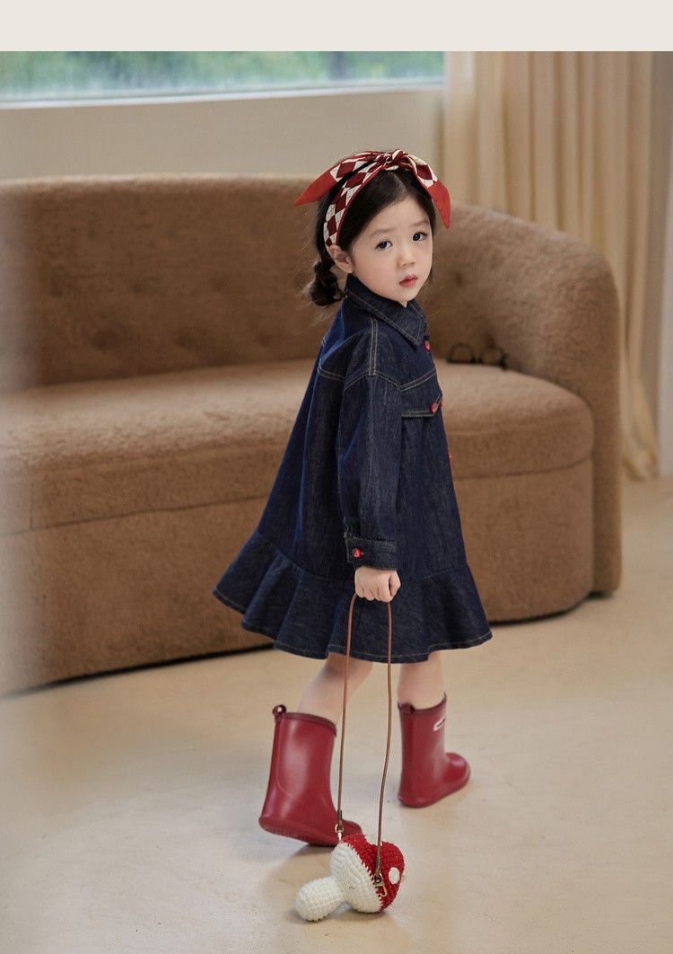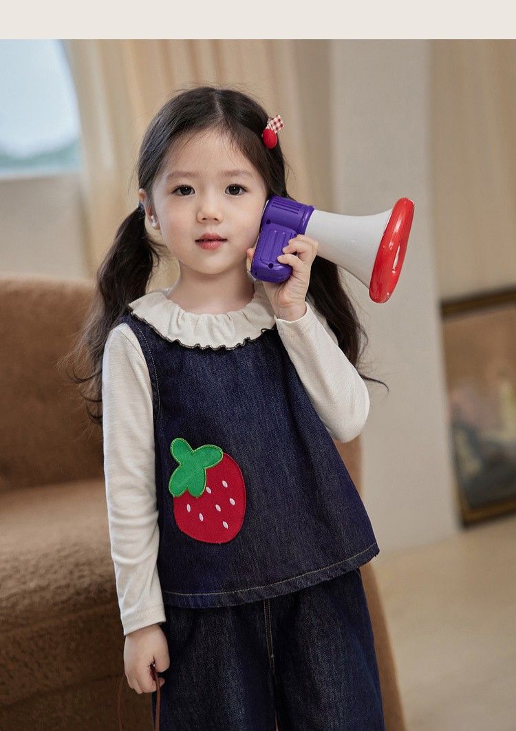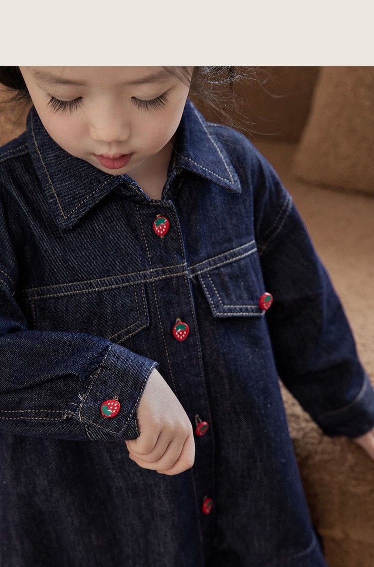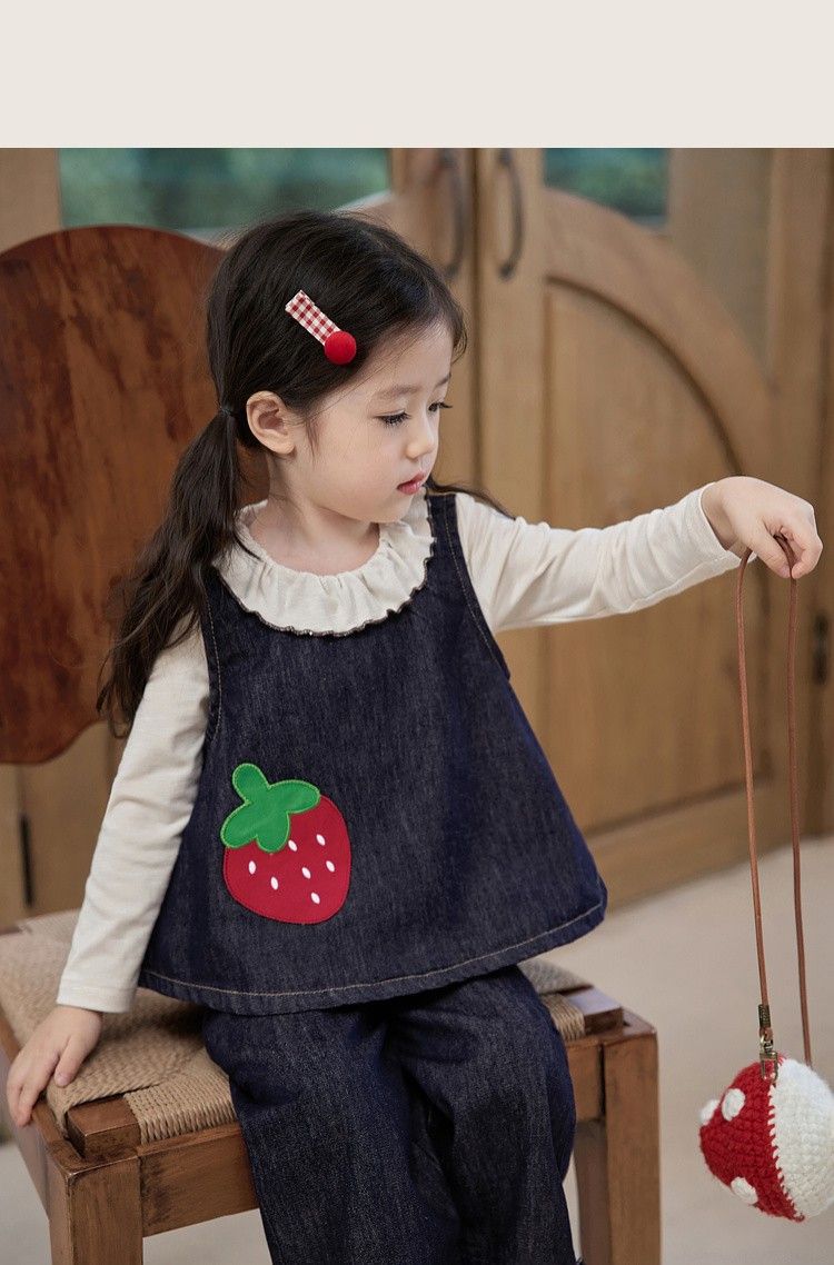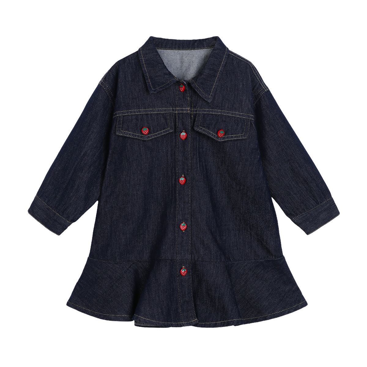 아기 소녀 가을 데님 세트 2024 새로운 아기 세련된 코트 유행 인형 셔츠 스트랩 투피스 세트 트렌디스토어 가기
