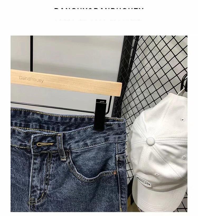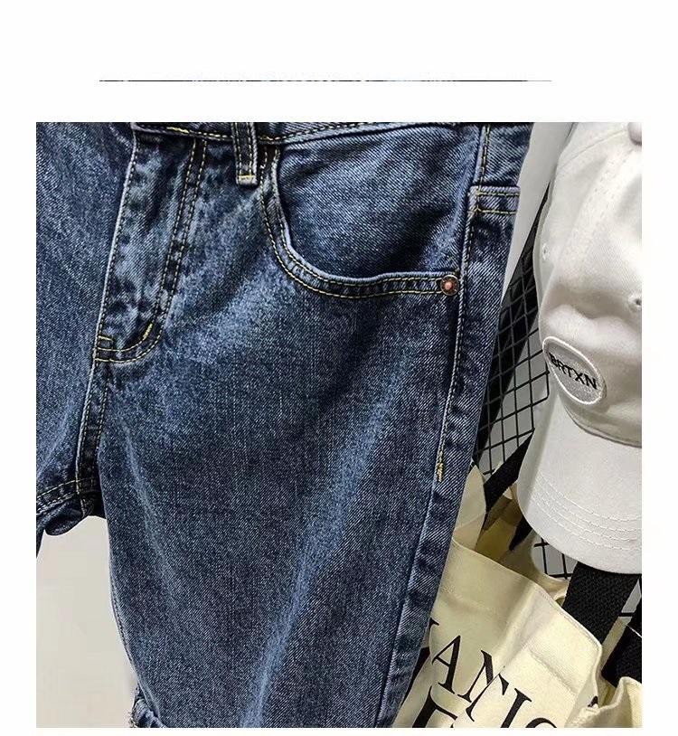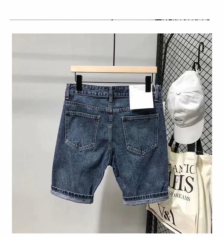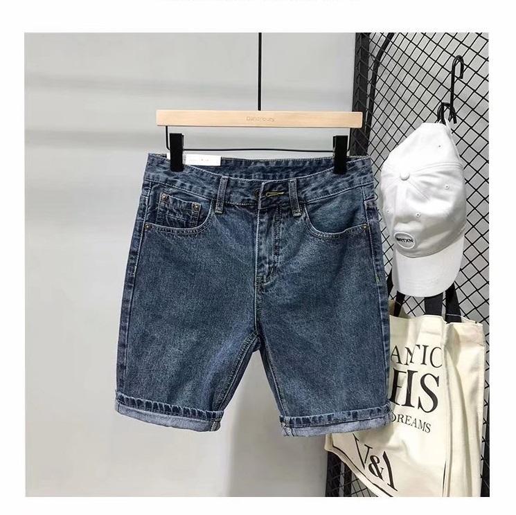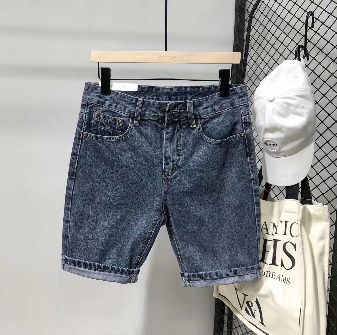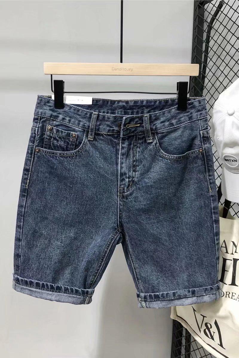 아메리칸 스타일 캐주얼 레트로 솔리드 컬러 데님 반바지 올 매치 블루 레트로 남자 스트레이트 컷 바지 여름 얇은스토어 가기