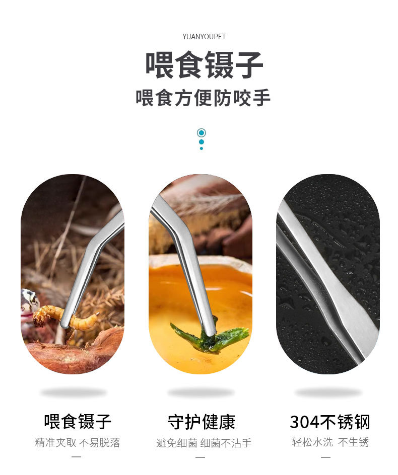 크로스보더 거북이 먹이주기 집게, 길이 조절 가능, 파충류 및 어항 청소 도구, 긴 손잡이, 이빨이 있는 스테인리스 집게