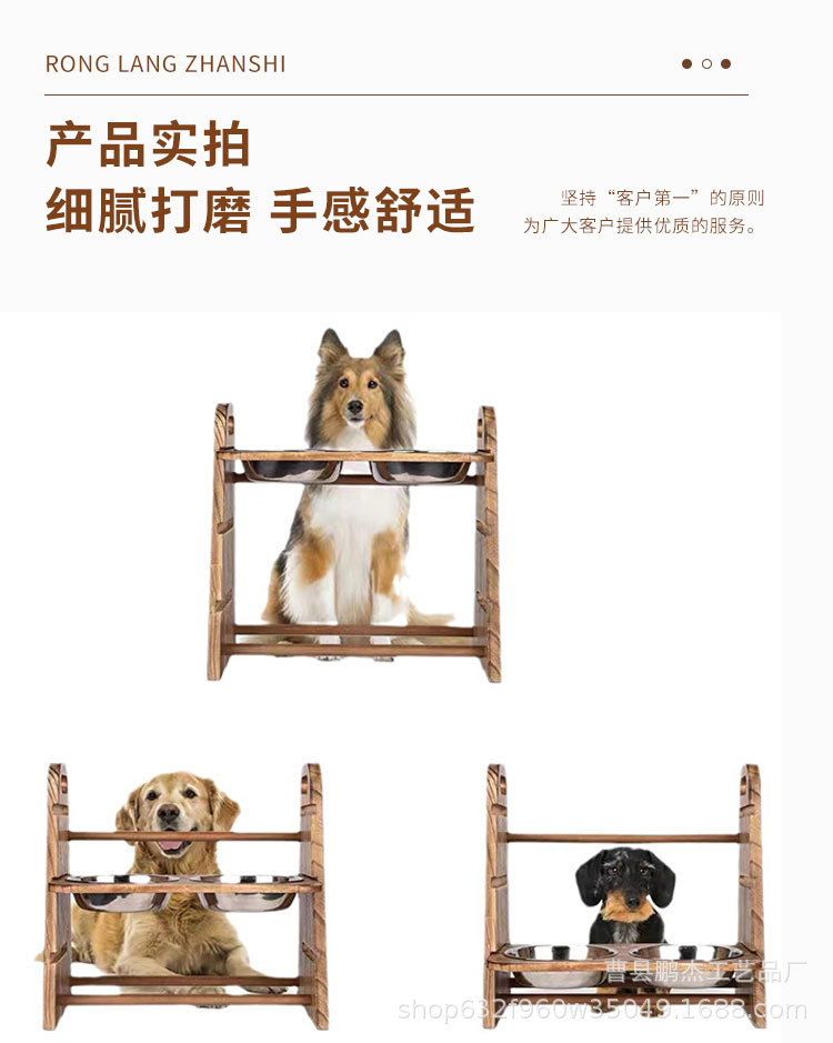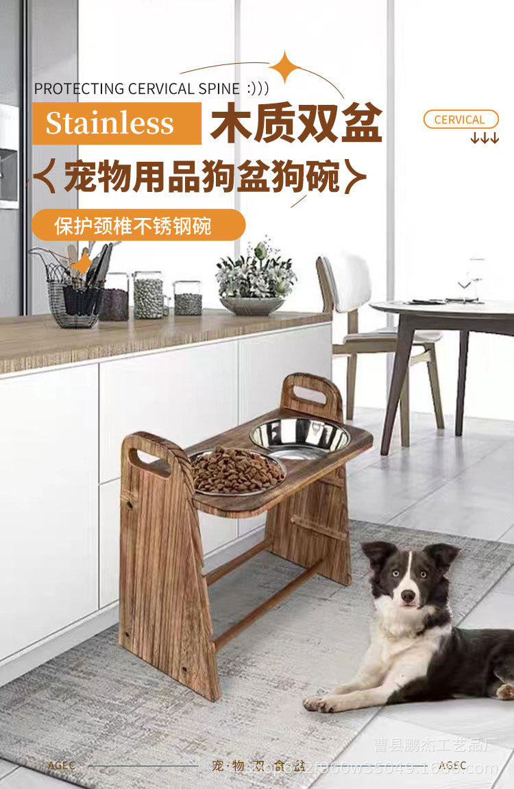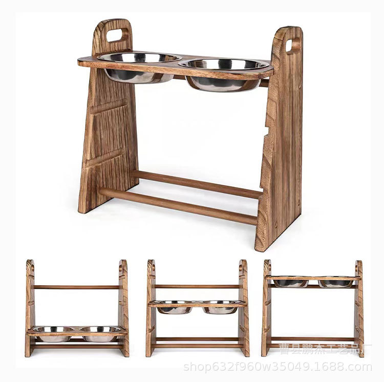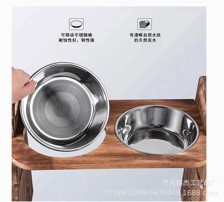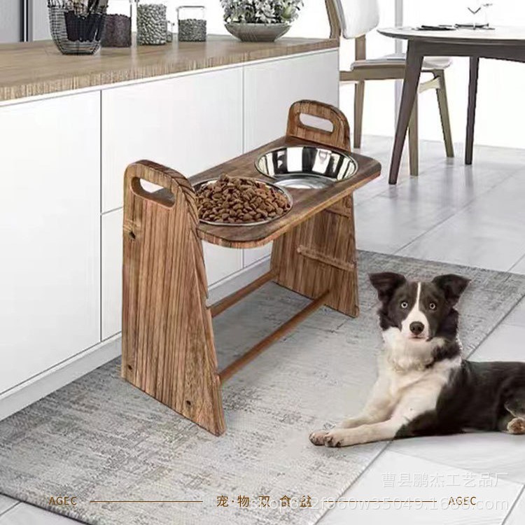국경 간 애완 동물 용품 피더 개 음식 그릇 마시는 물 이중 목적 더블 그릇 목 보호 나무 고양이 그릇 랙 고양이 먹이 랙스토어 가기