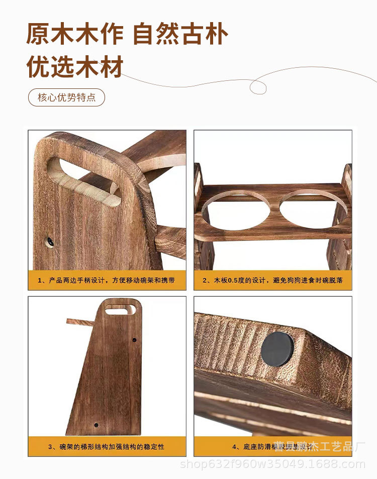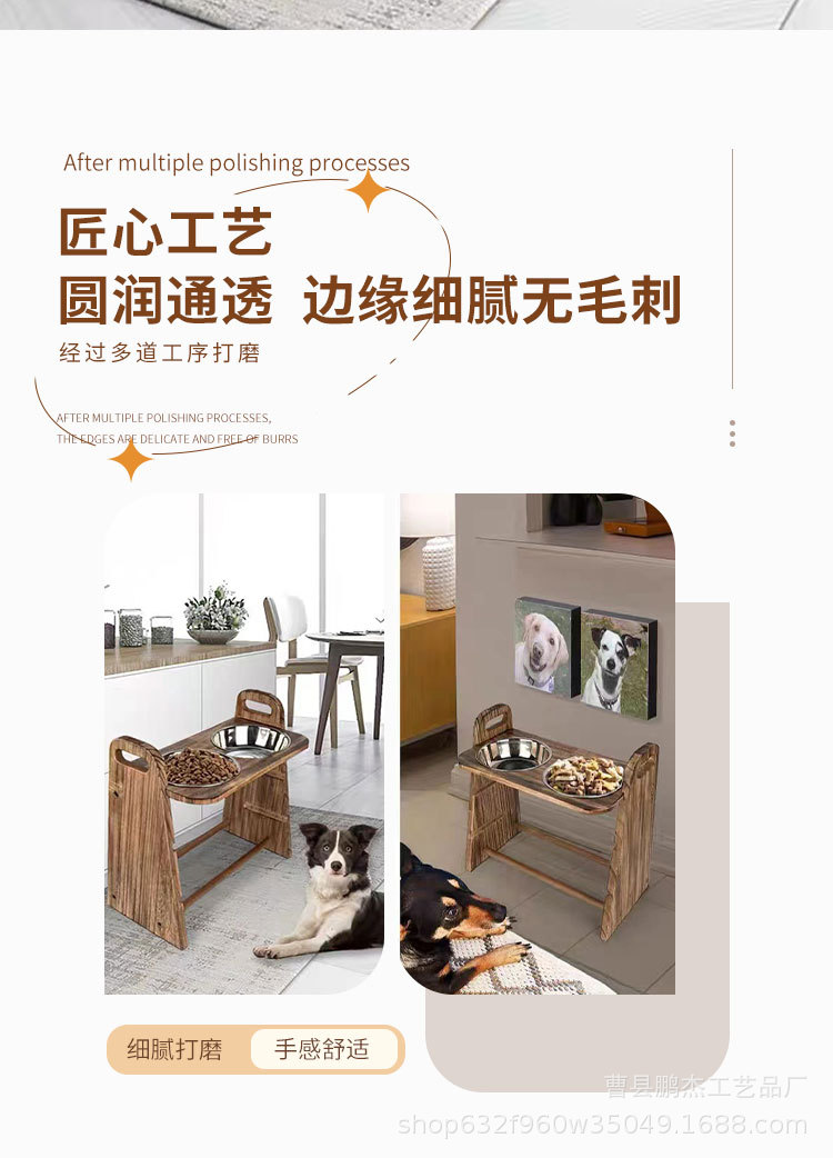 국경 간 애완 동물 용품 피더 개 음식 그릇 마시는 물 이중 목적 더블 그릇 목 보호 나무 고양이 그릇 랙 고양이 먹이 랙