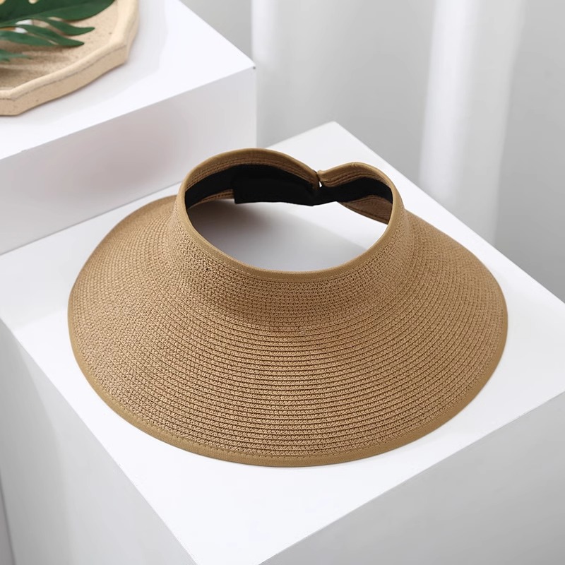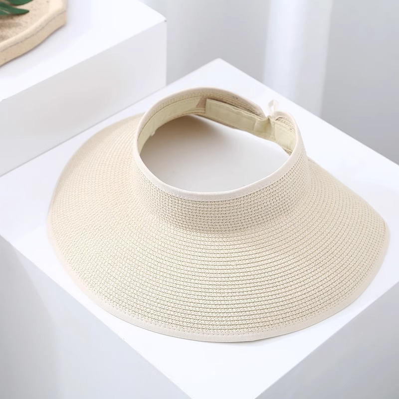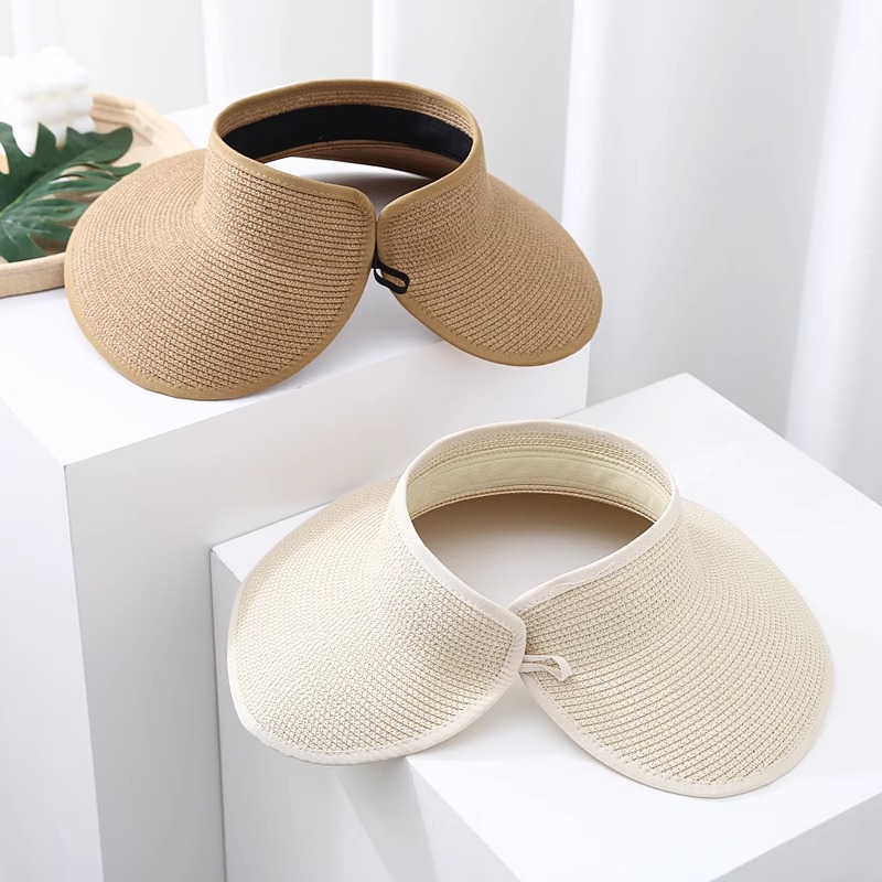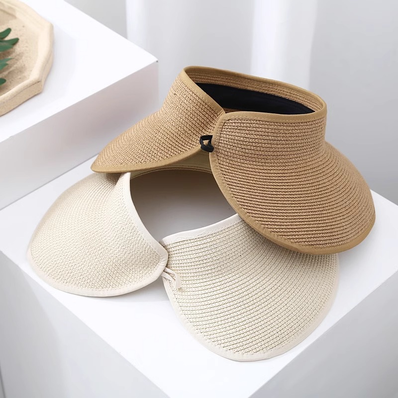 여성용 빈 탑 비치 챙이 큰 밀짚 모자 해변 휴가 자외선 차단 태양 모자 접이식 휴대용 크로스 보더 태양 모자스토어 가기