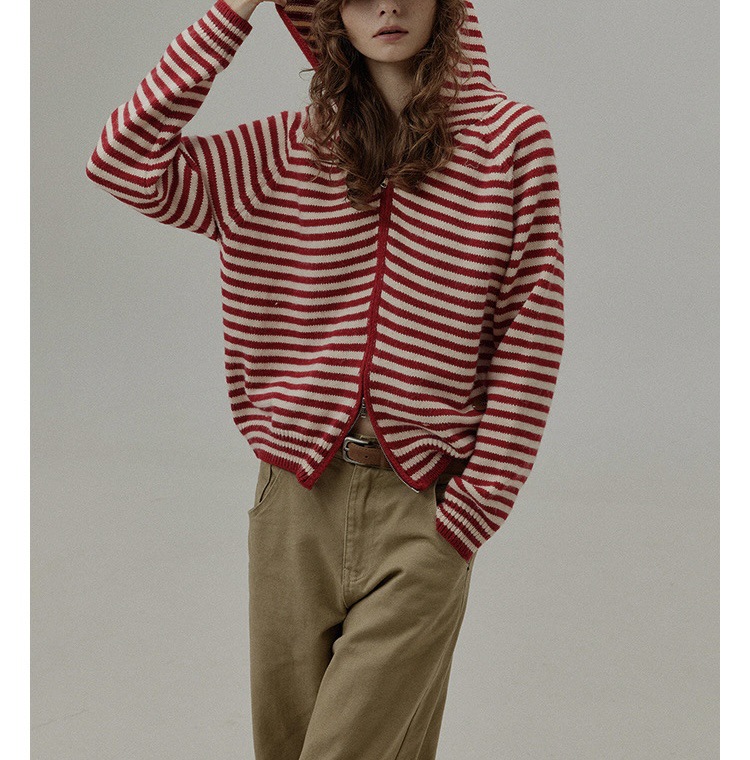 [홍콩섬 일몰] 후드더블 지퍼와 니트 카디건 자켓 여성 루즈디자인 긴소매 스웨터스토어 가기