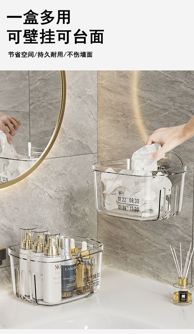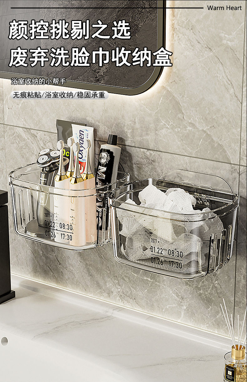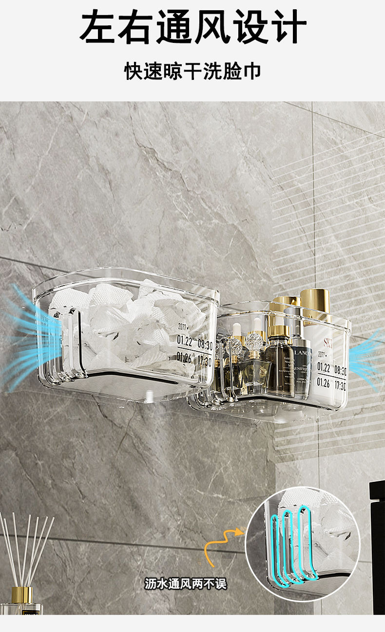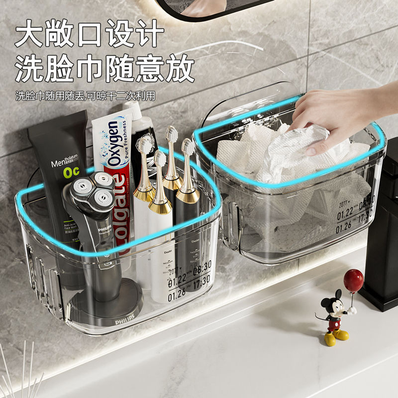 욕실 보관 랙 화장실 세면대 얼굴 수건 보관 상자 펀치없는 벽 장착 화장실 조리대 유물스토어 가기