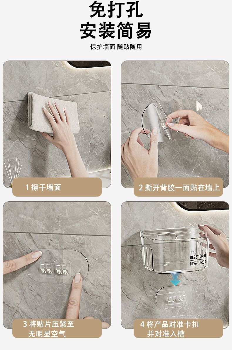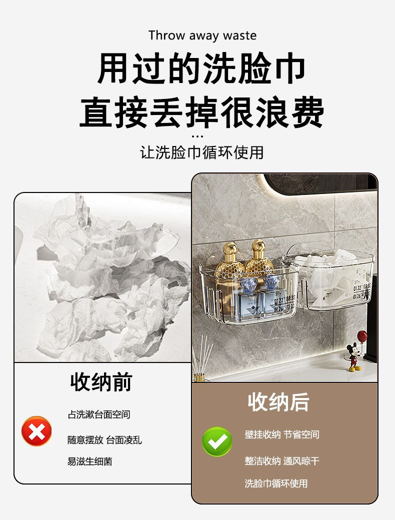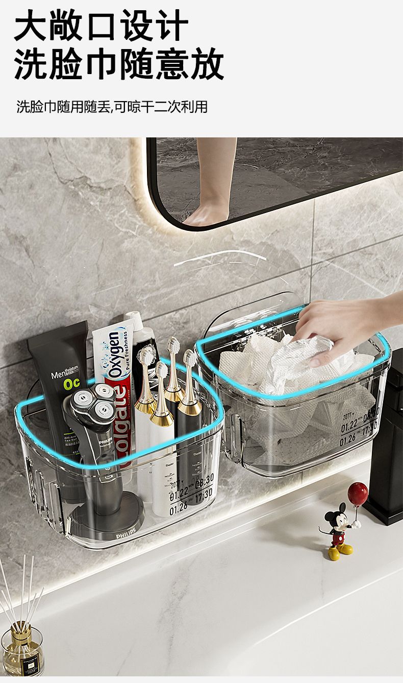 욕실 보관 랙 화장실 세면대 얼굴 수건 보관 상자 펀치없는 벽 장착 화장실 조리대 유물스토어 가기