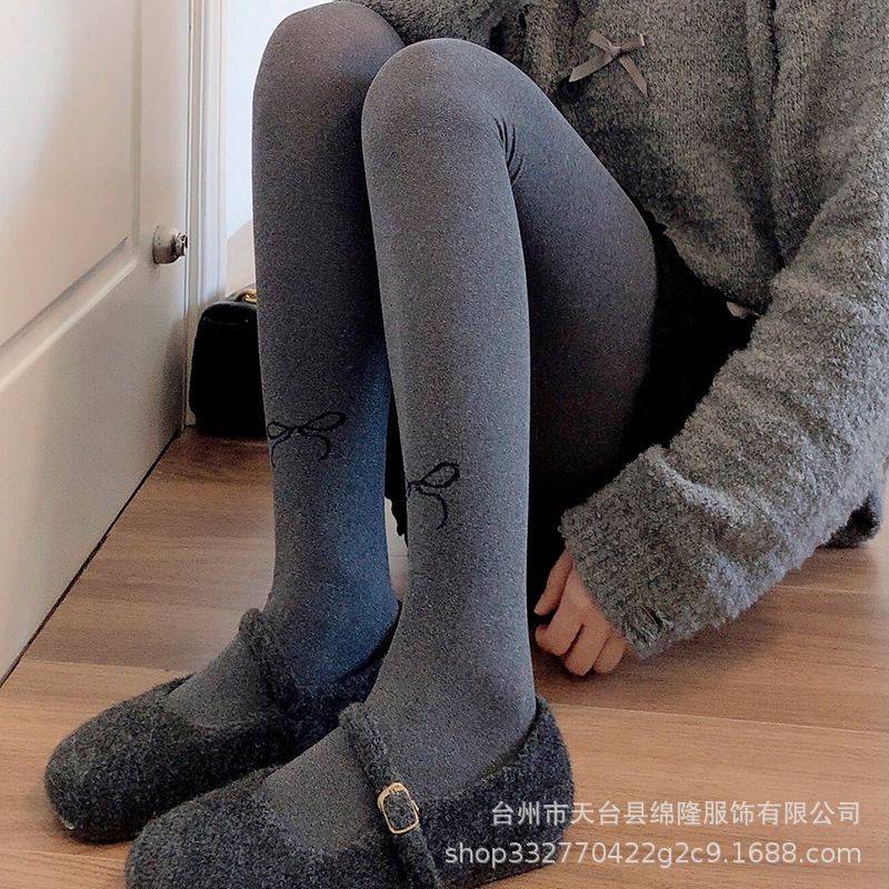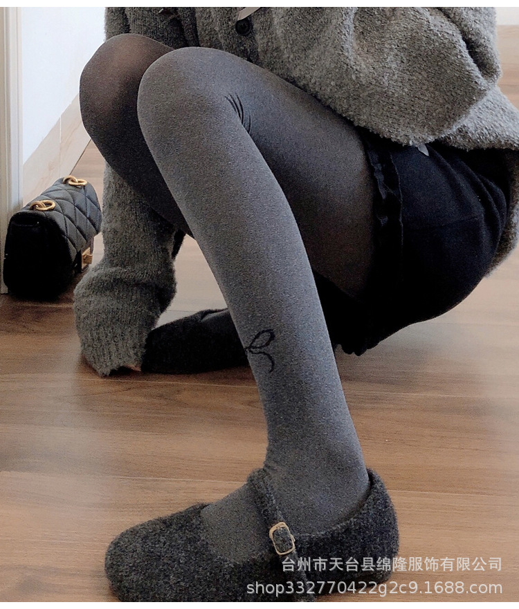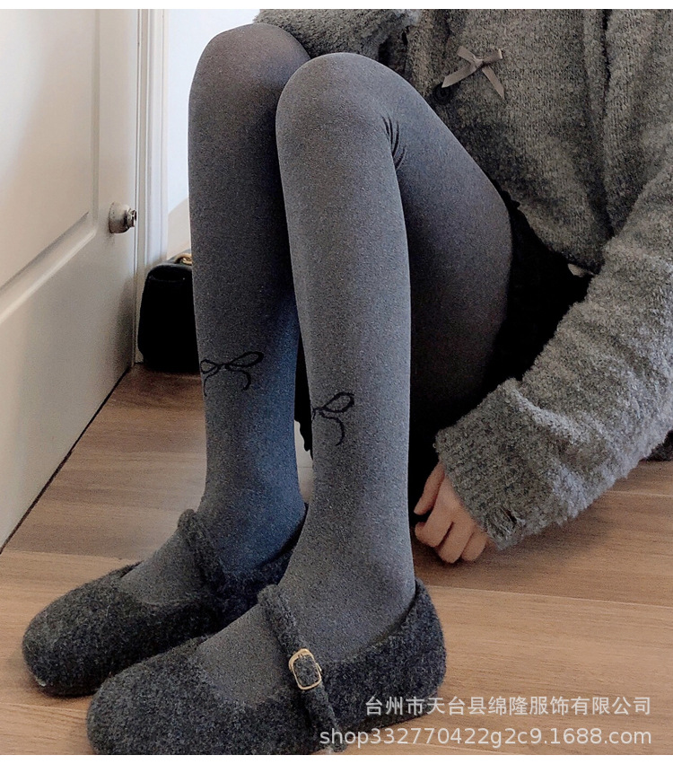 가을과 겨울 중간 두꺼운 참깨 회색 활 팬티 스타킹 여성용 빈티지 폴로 도트 자카드 레깅스 대마 그레이 러브 실크 스타킹