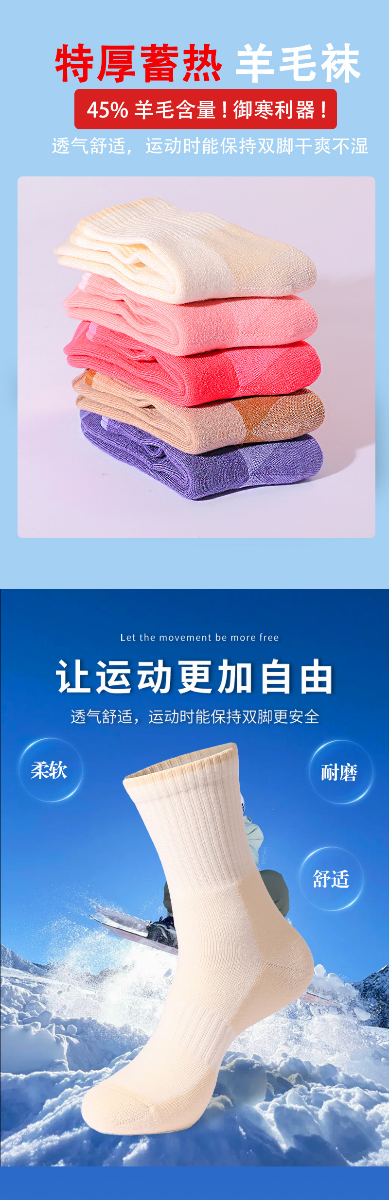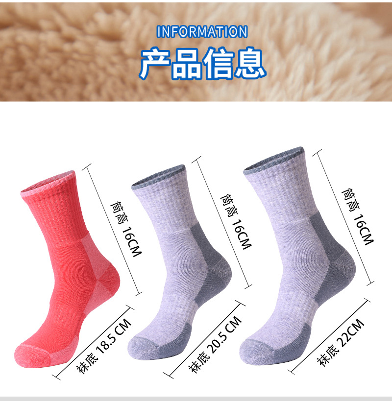 두 늑대 메리노 울 양말 가을과 겨울 양말 여성용 수건 바닥 두꺼운 하이킹 미드 튜브 스포츠 양말 따뜻한
