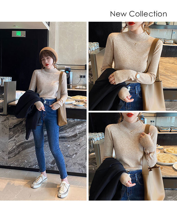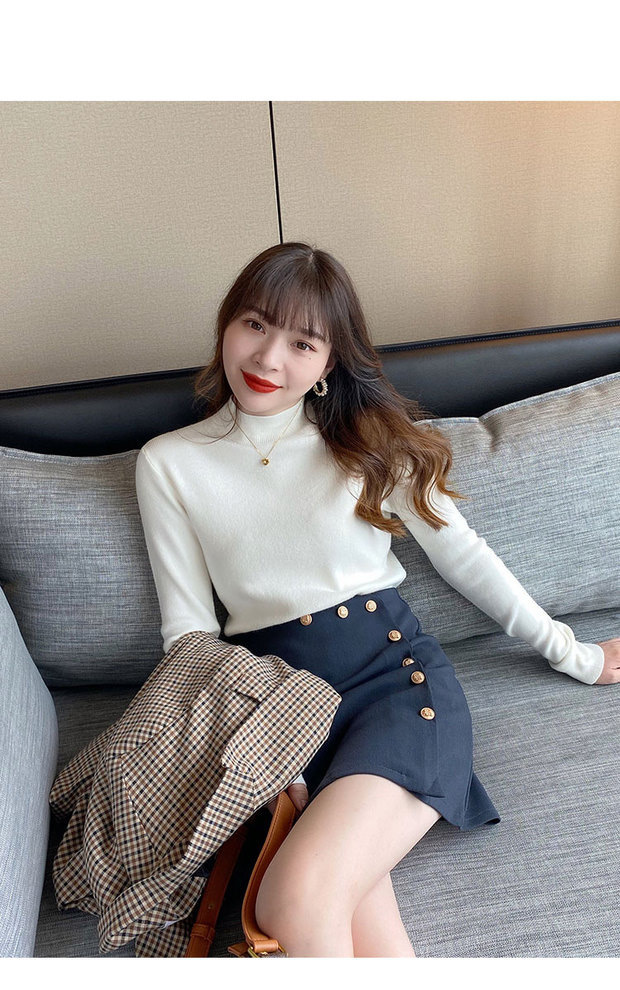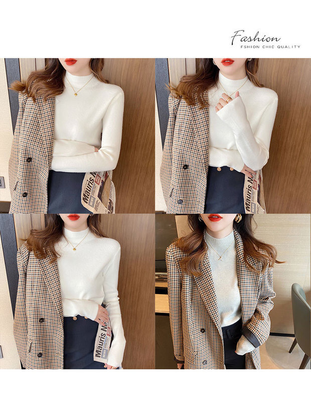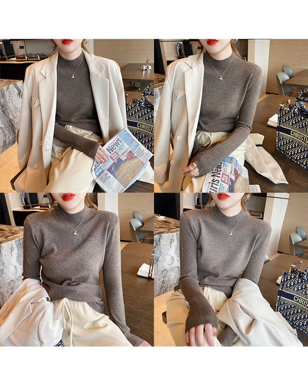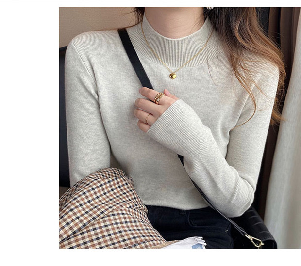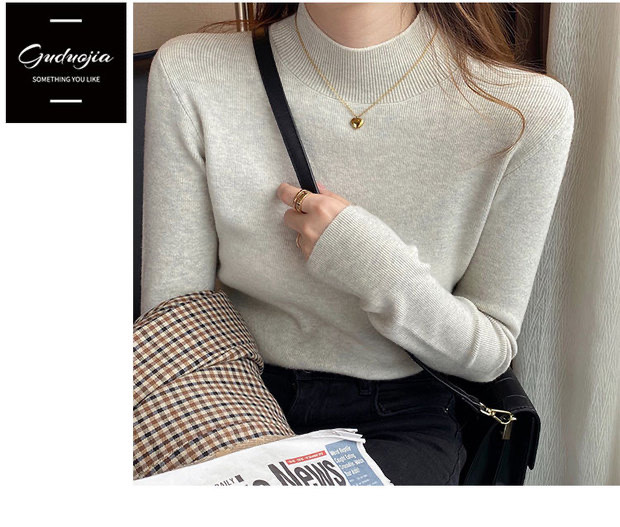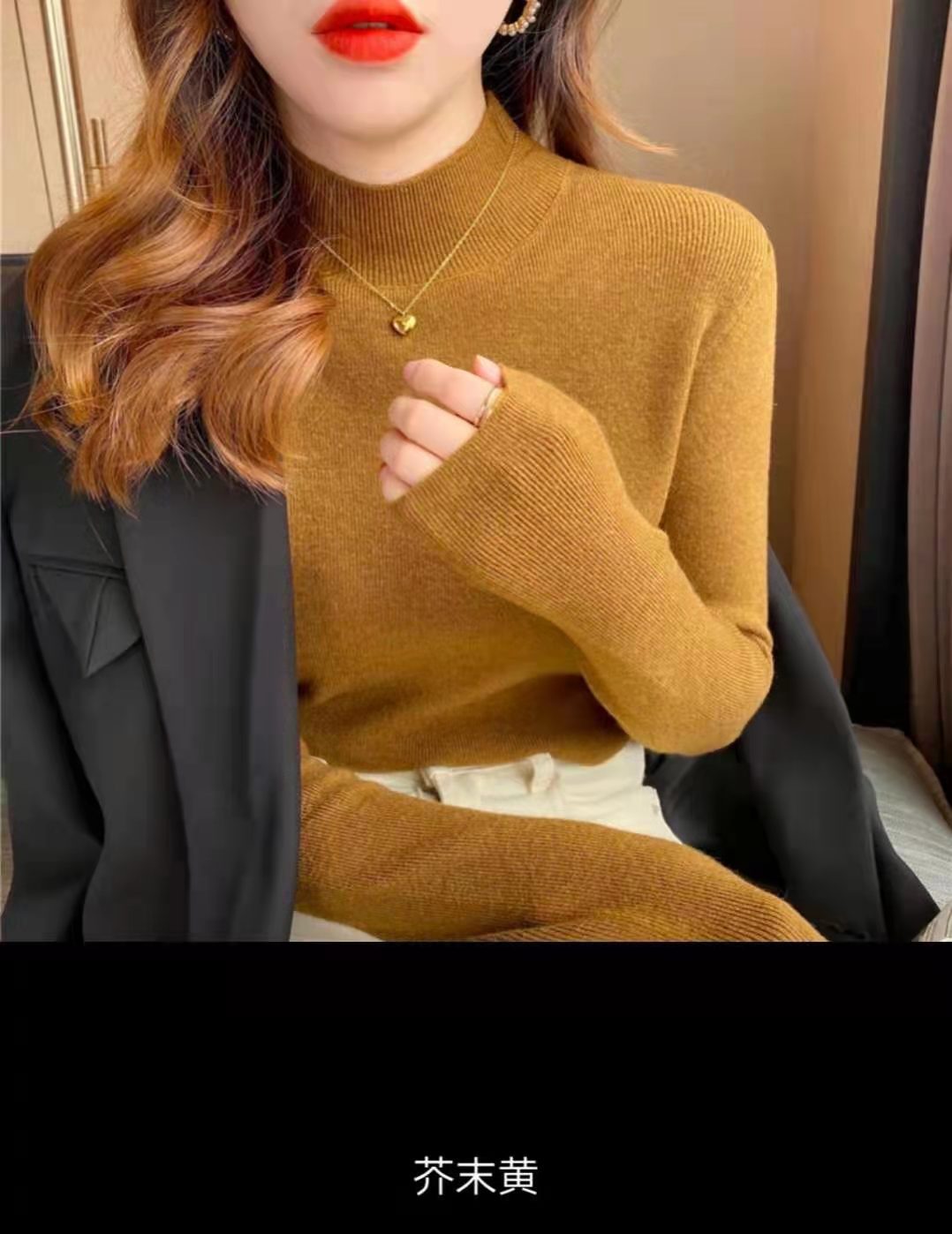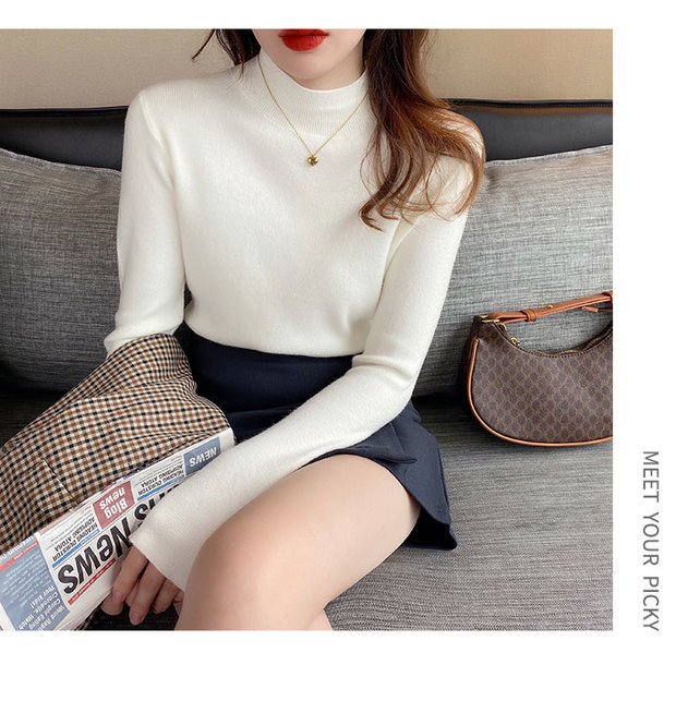 여성용 가을 겨울 부드러운 니트 스웨터, 하프 터틀넥 베이스 레이어, 다양한 색상의 긴팔 이너웨어, 스타일리시하고 부드러운 가을 상의스토어 가기