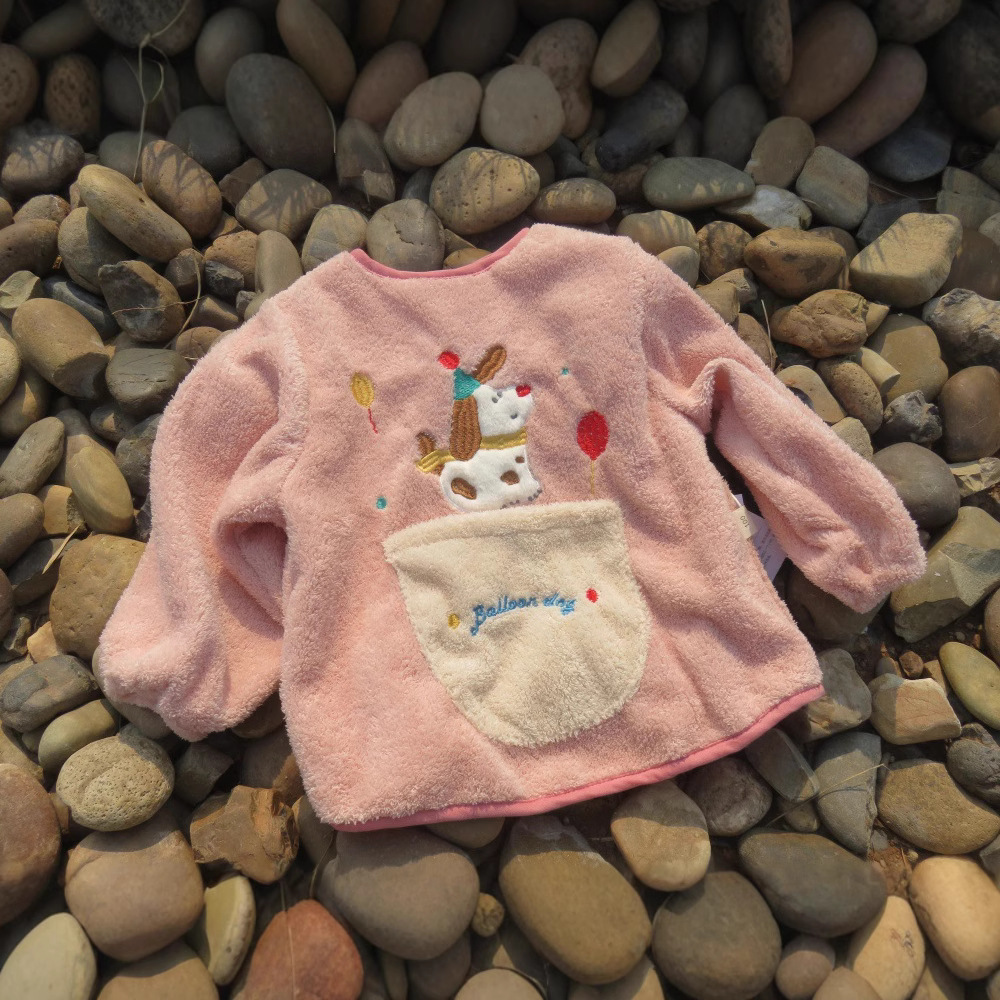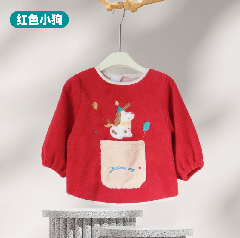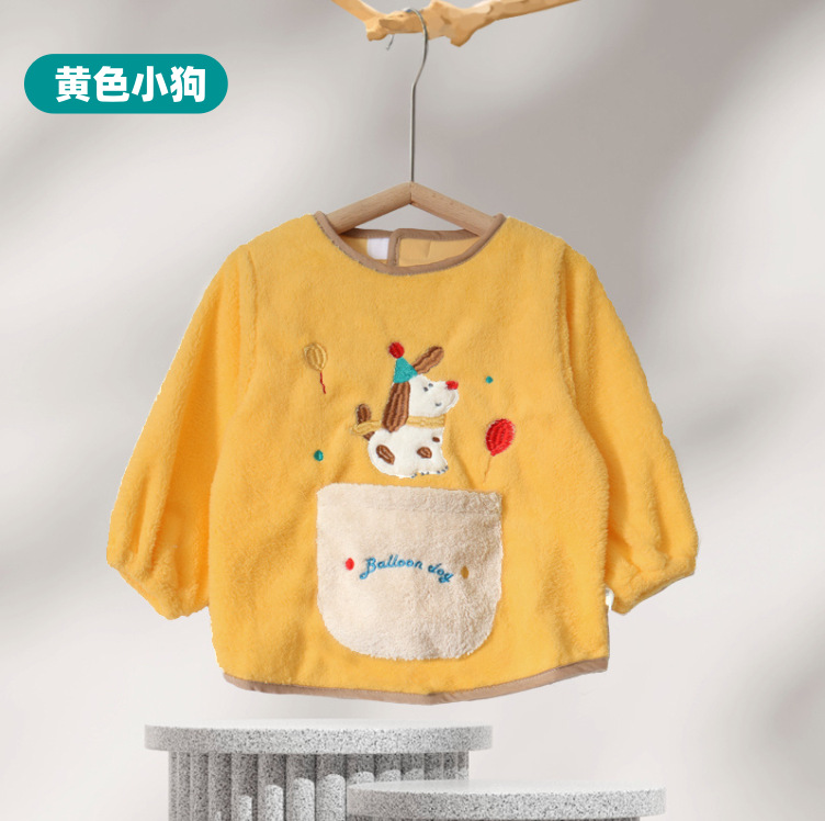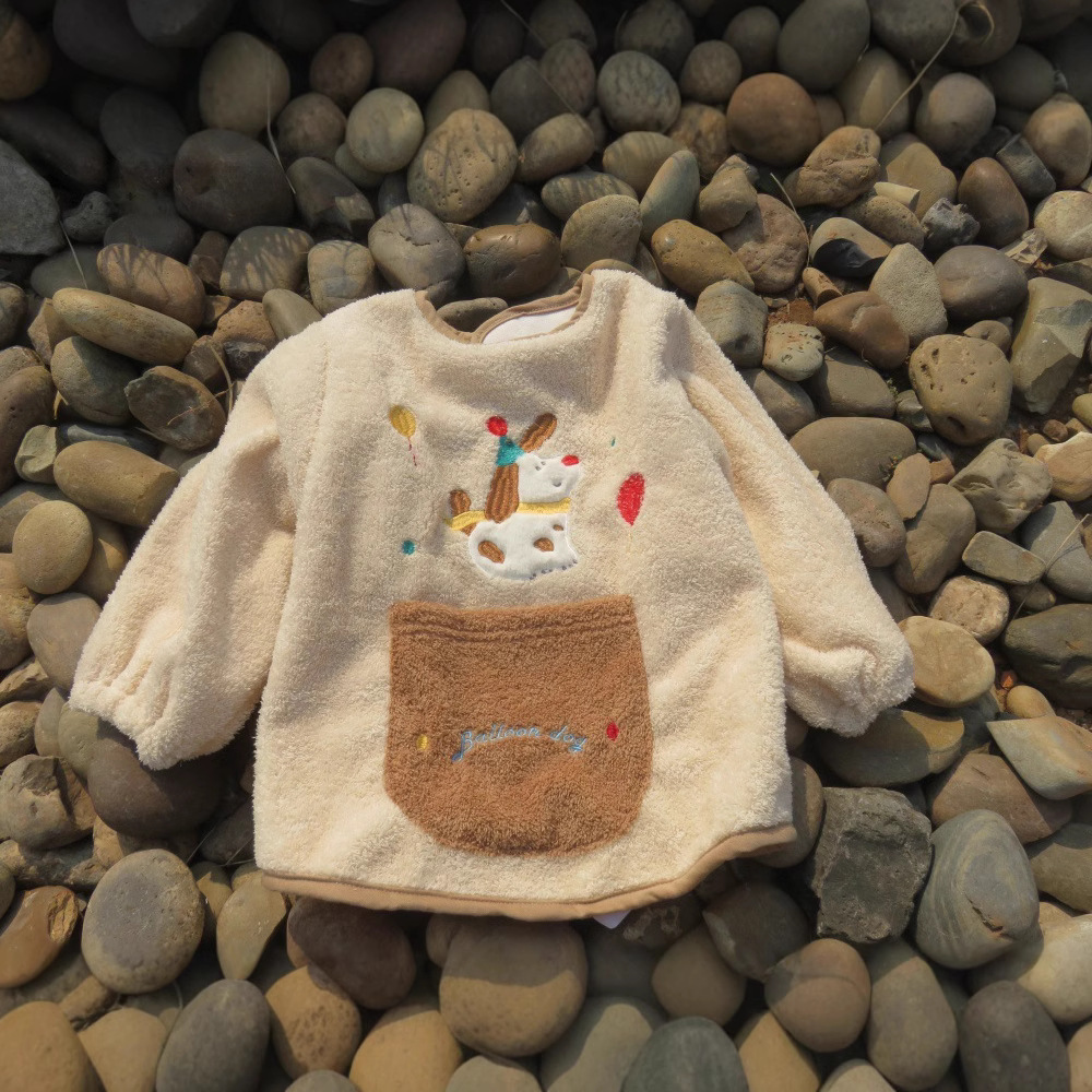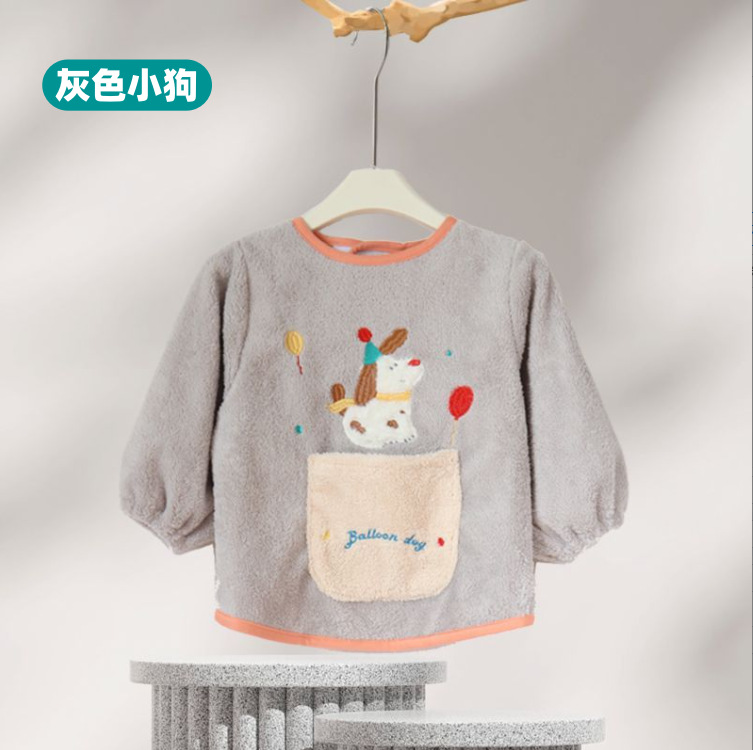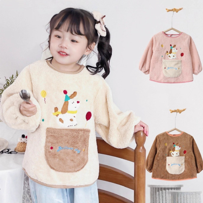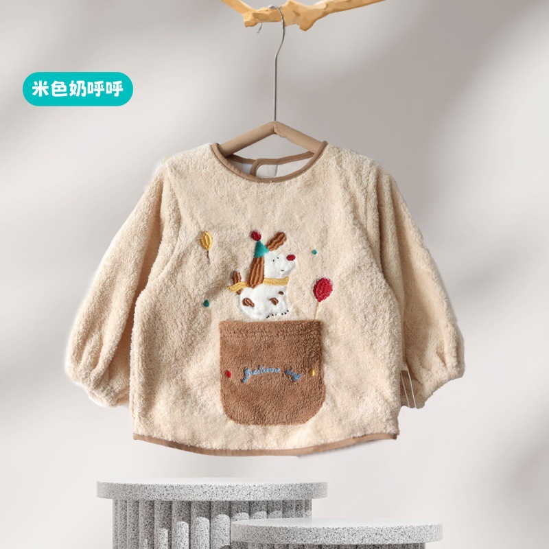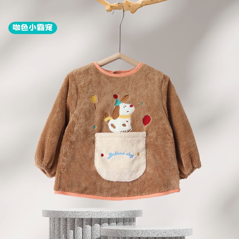 가을 겨울용 따뜻한 벨벳 아동용 앞치마 남녀공용 두꺼운 역방향 착용 아기 식사용 앞치마스토어 가기