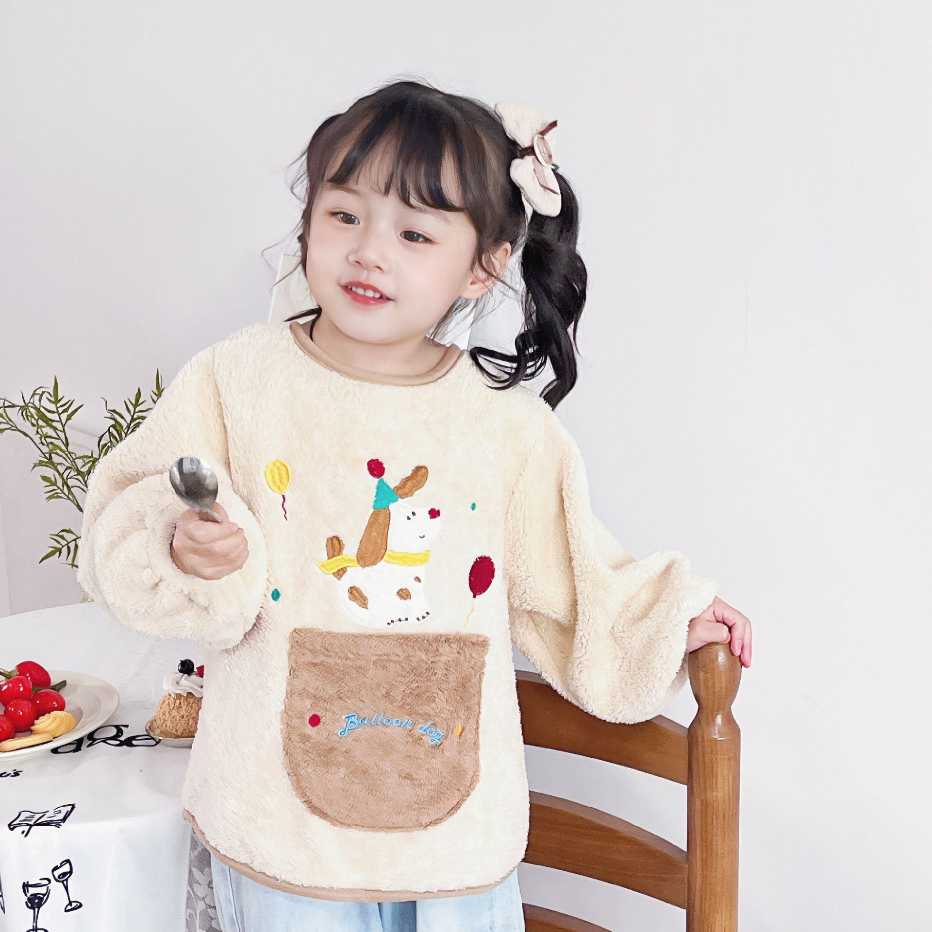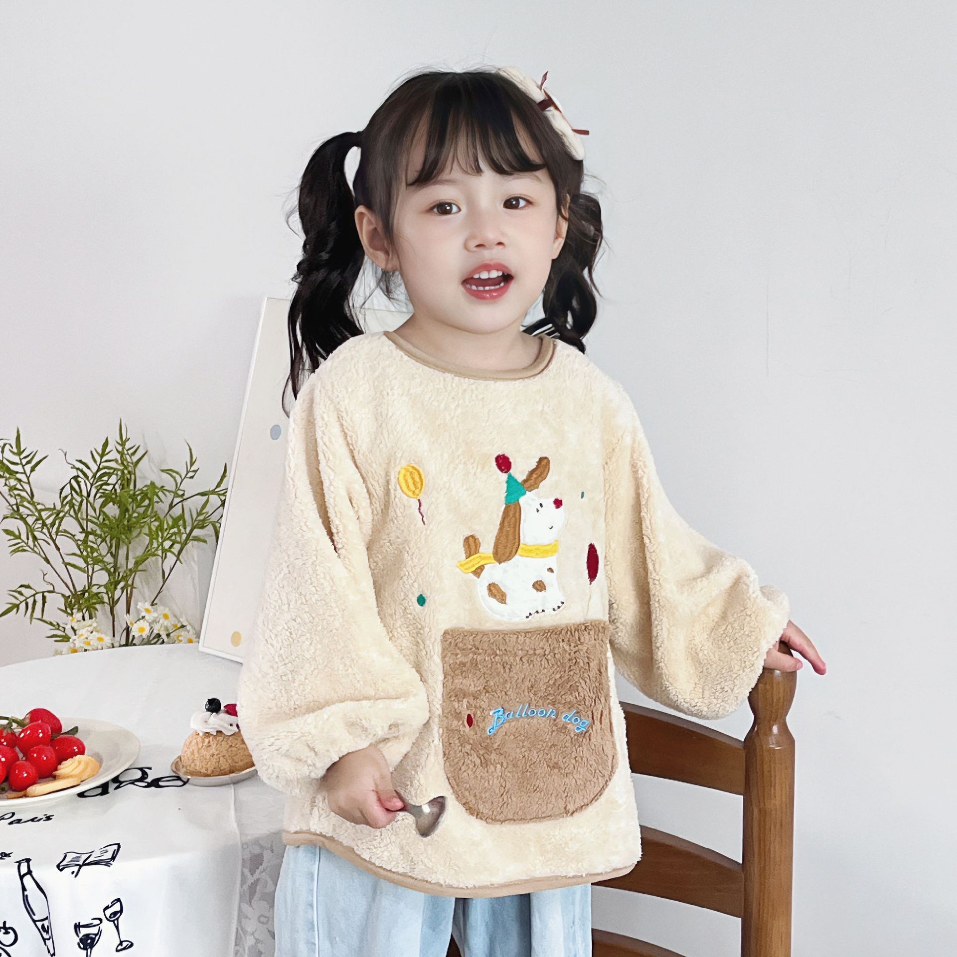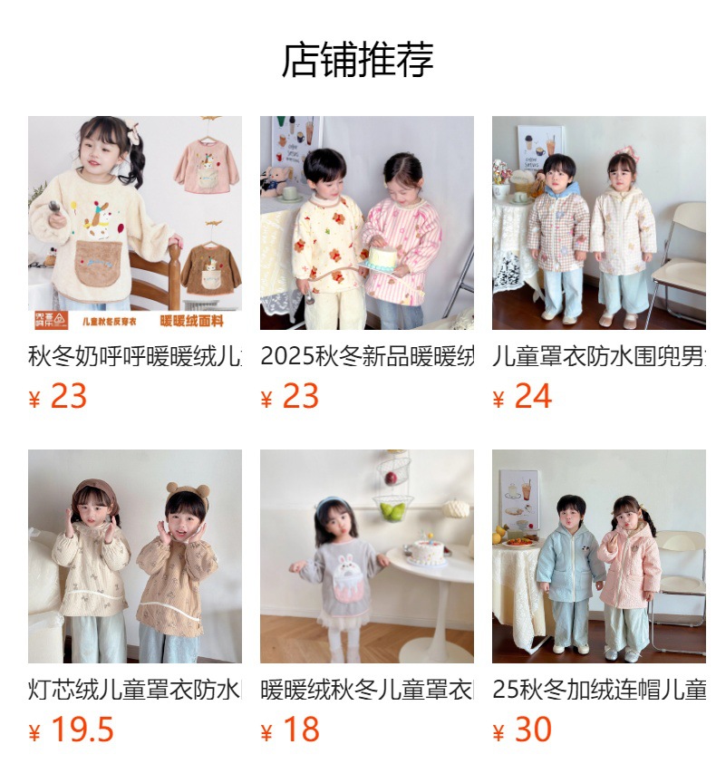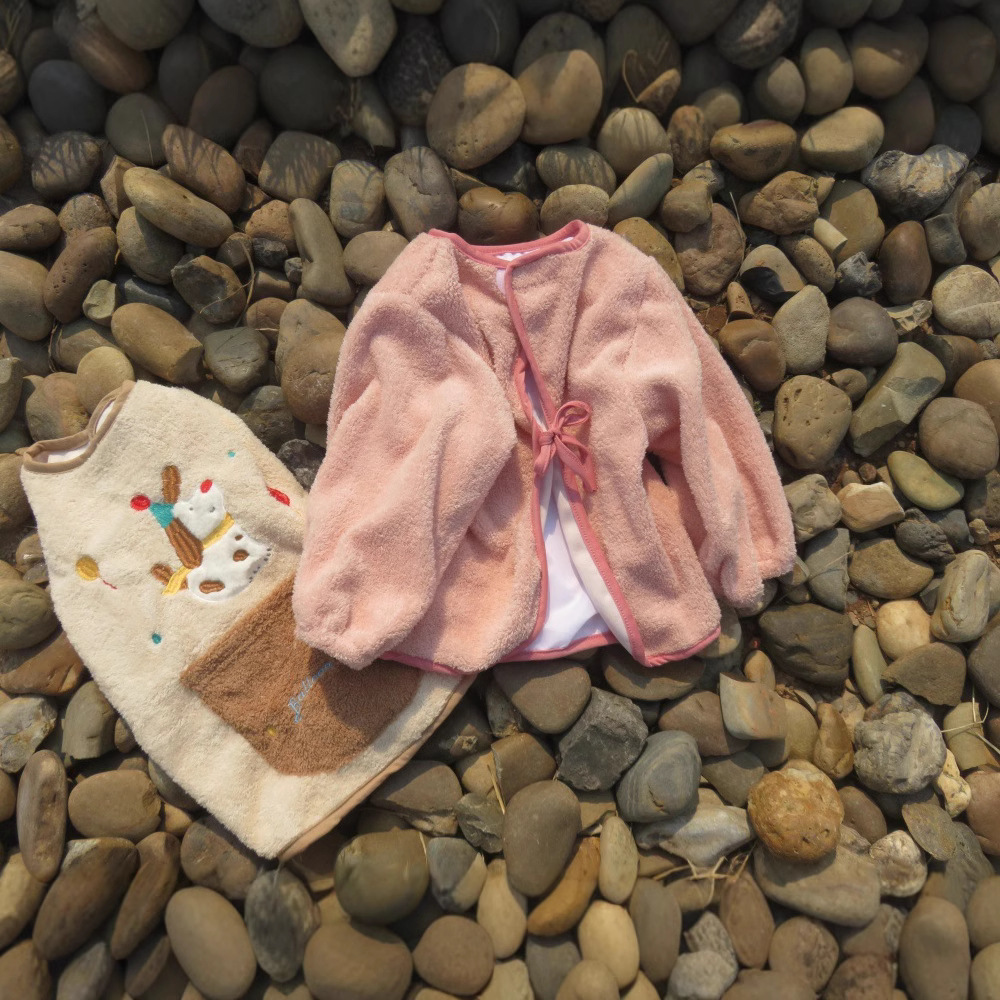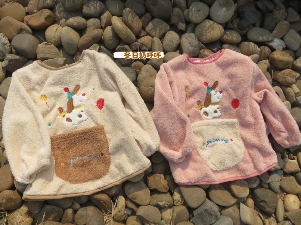 가을 겨울용 따뜻한 벨벳 아동용 앞치마 남녀공용 두꺼운 역방향 착용 아기 식사용 앞치마스토어 가기