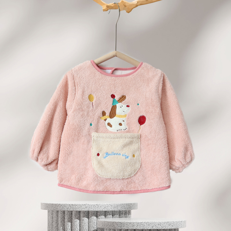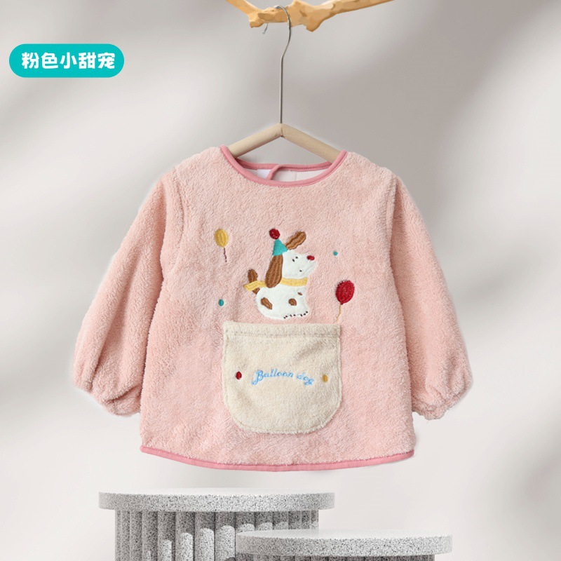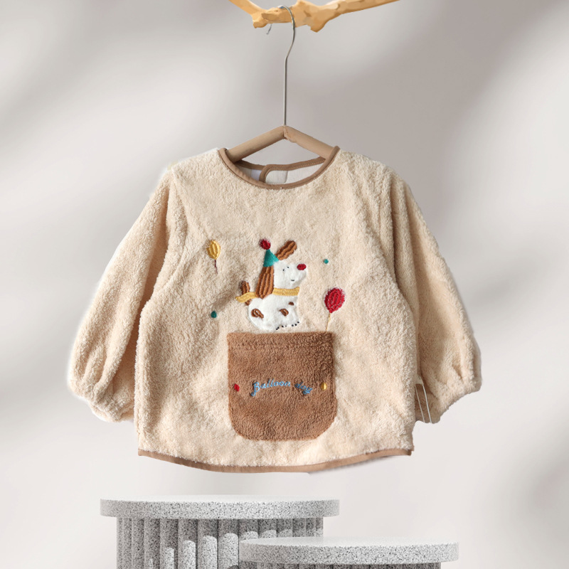 가을 겨울용 따뜻한 벨벳 아동용 앞치마 남녀공용 두꺼운 역방향 착용 아기 식사용 앞치마