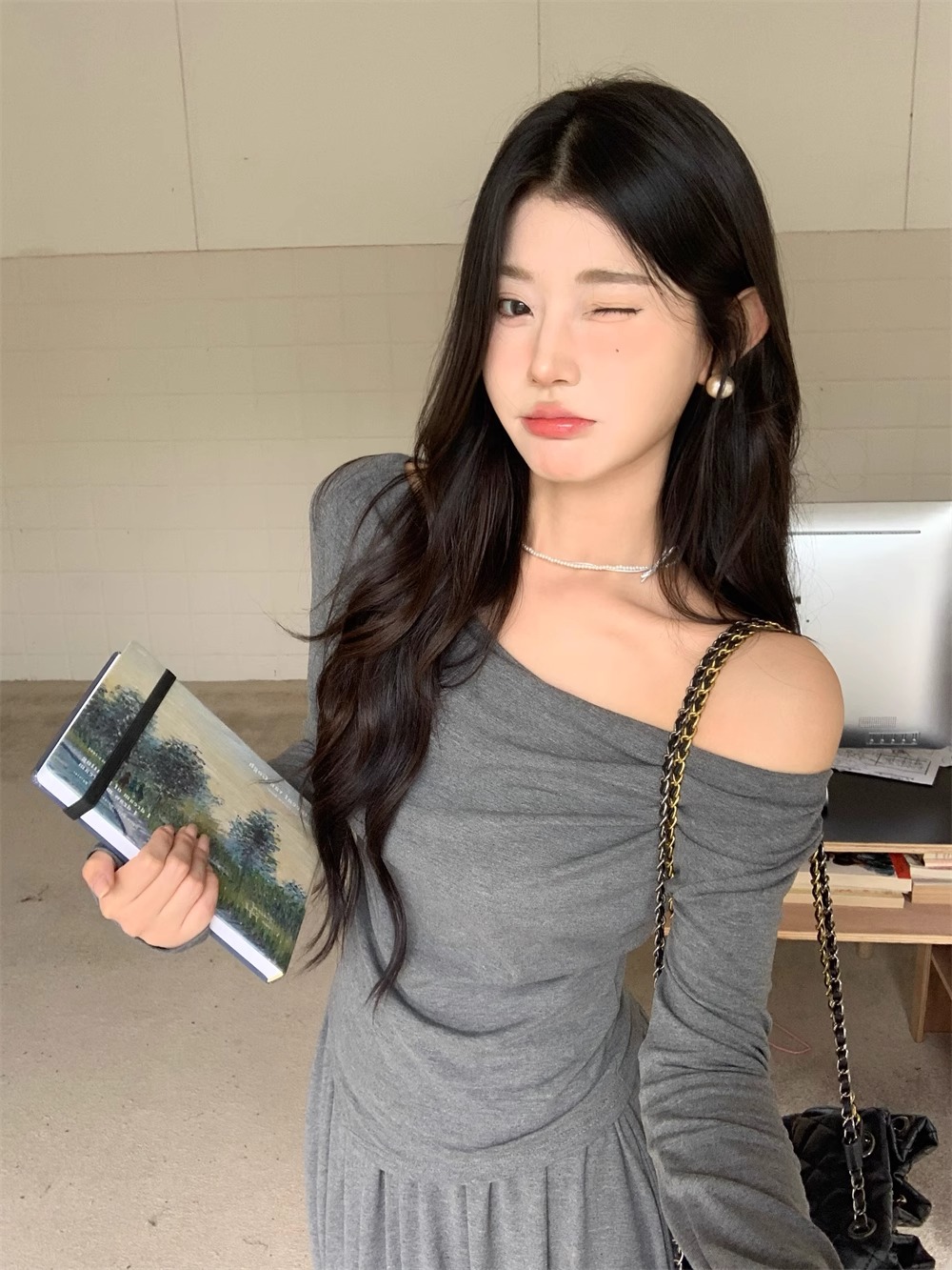 • 그레이 슈트 [탑 + 스커트]