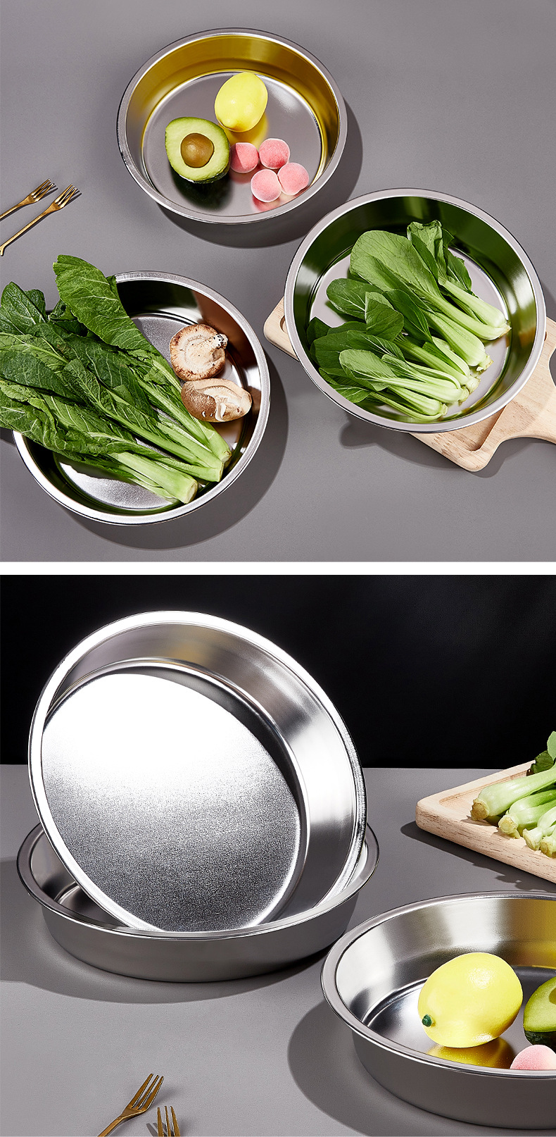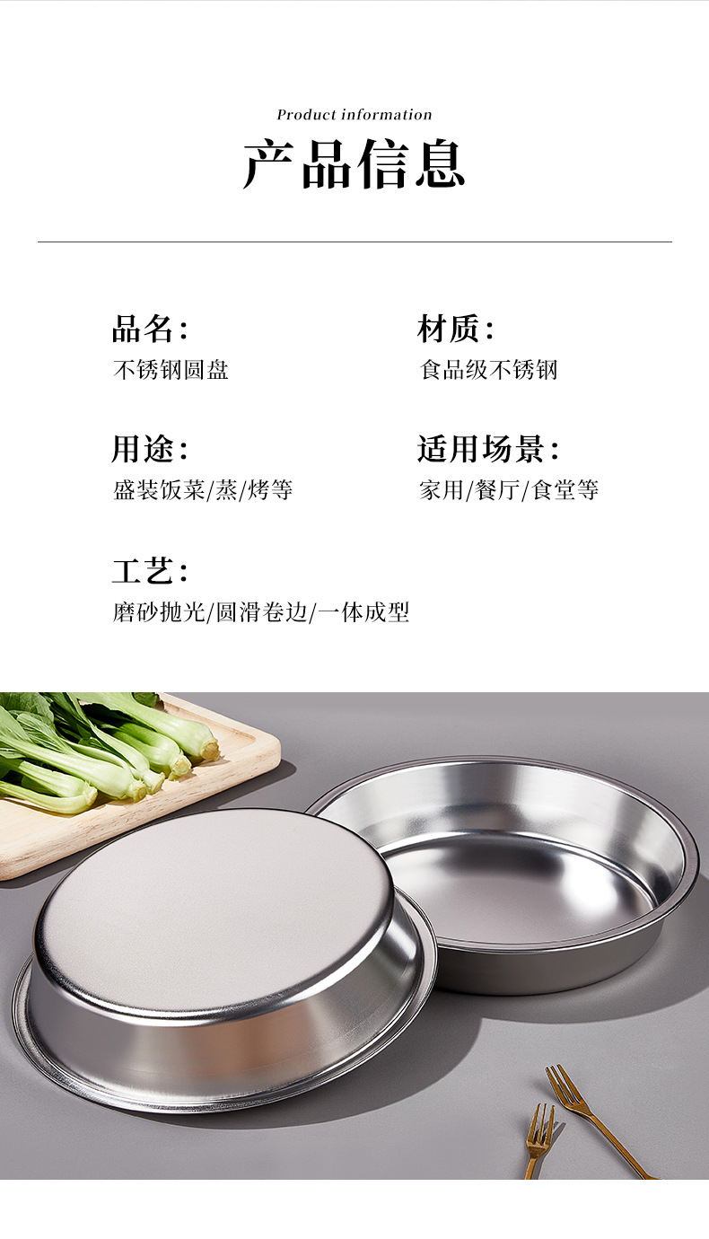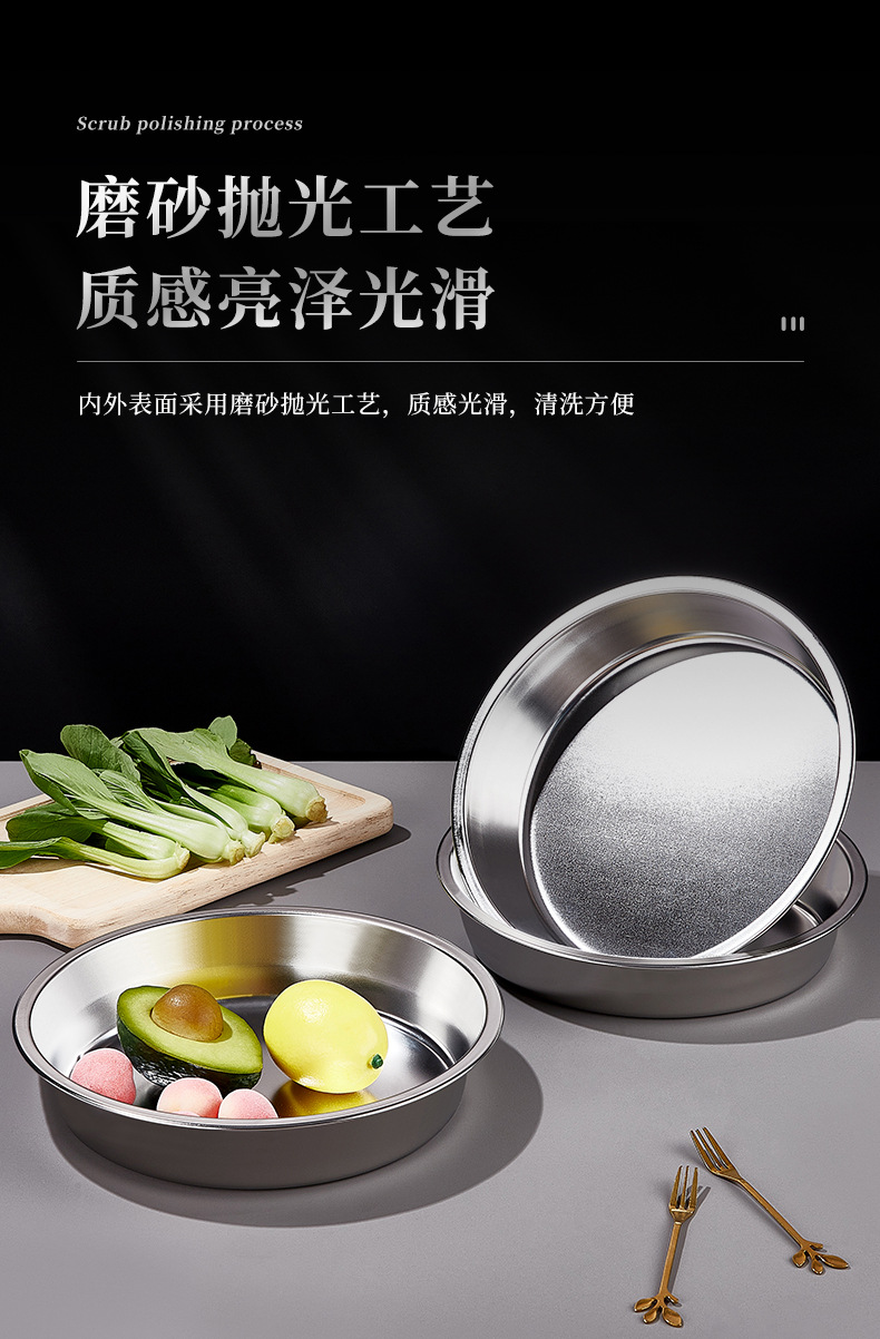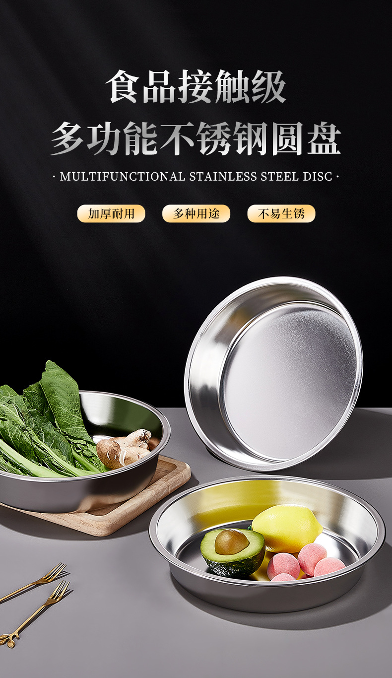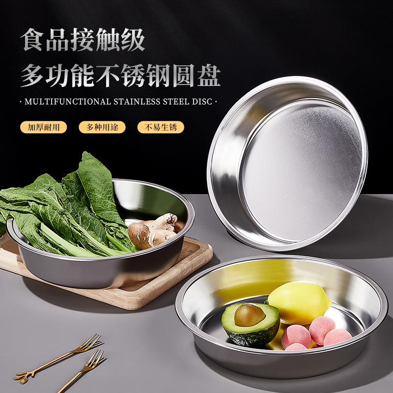 스테인리스 접시 원형 접시 가정용 상업용 주방 접시 찜 접시 둥근 접시 라이트웨이트 심플 모던스토어 가기