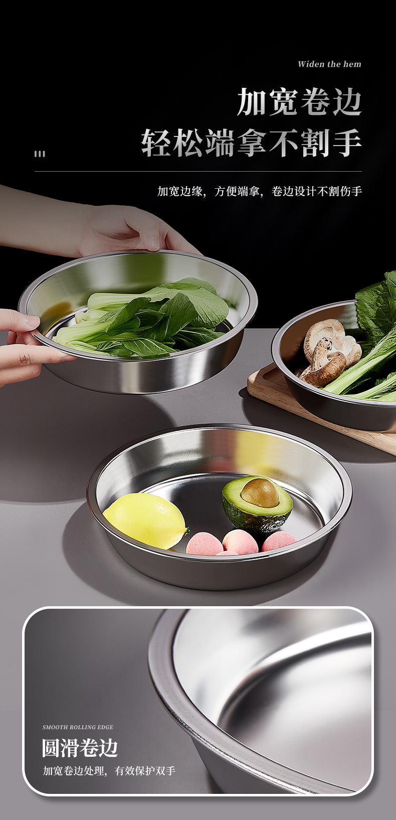 스테인리스 접시 원형 접시 가정용 상업용 주방 접시 찜 접시 둥근 접시 라이트웨이트 심플 모던