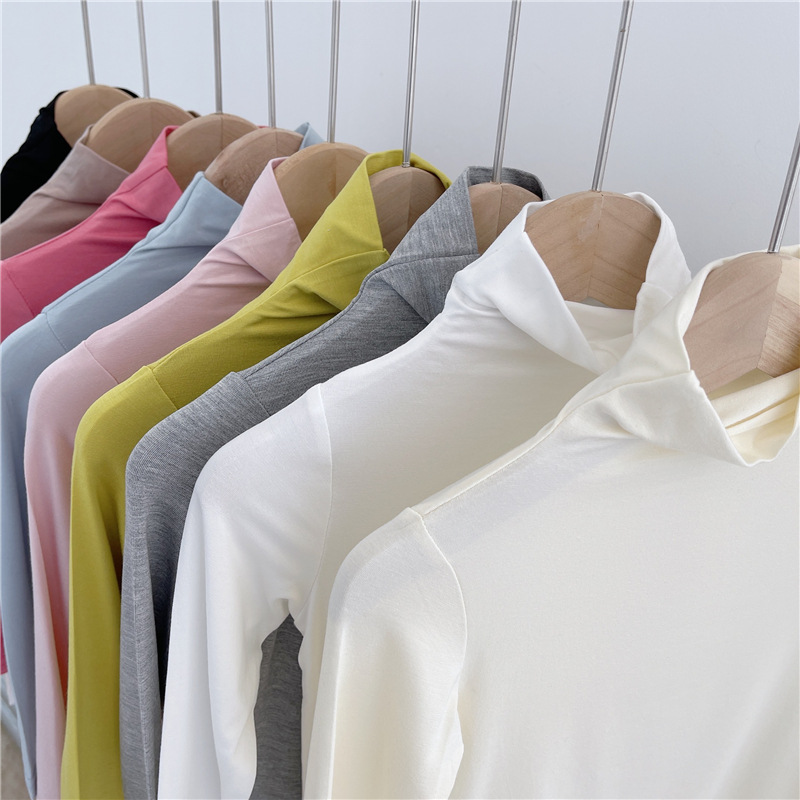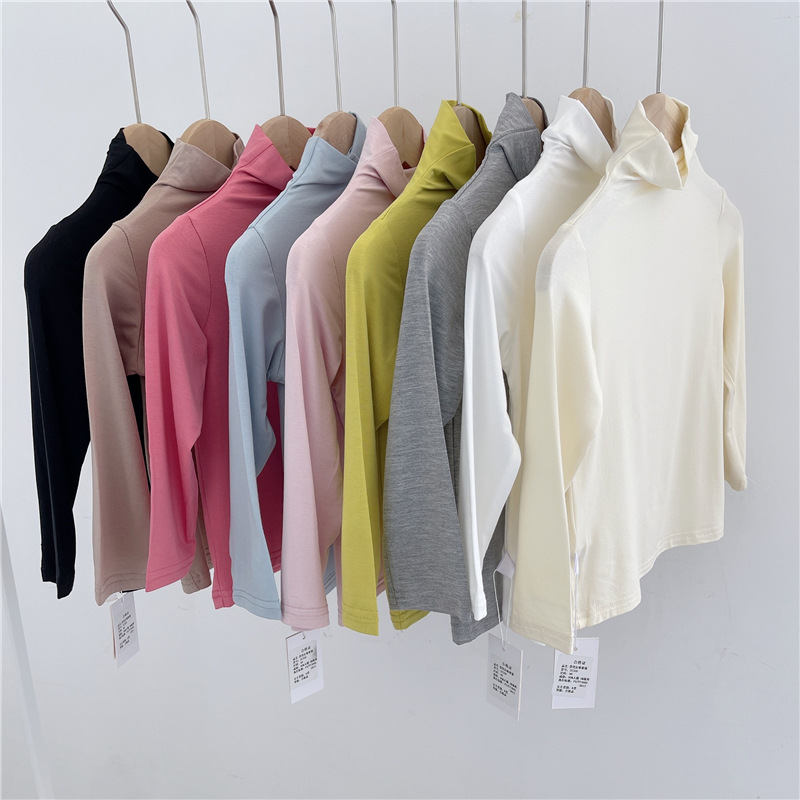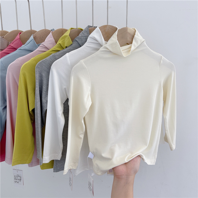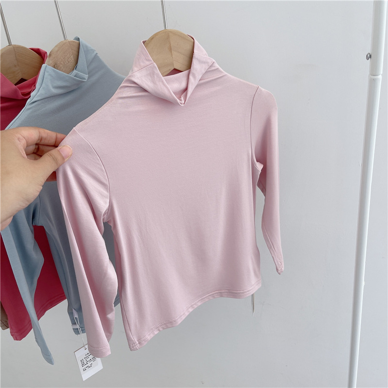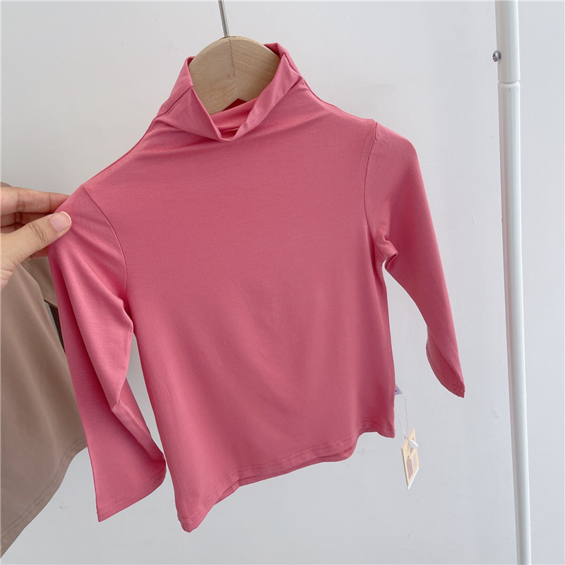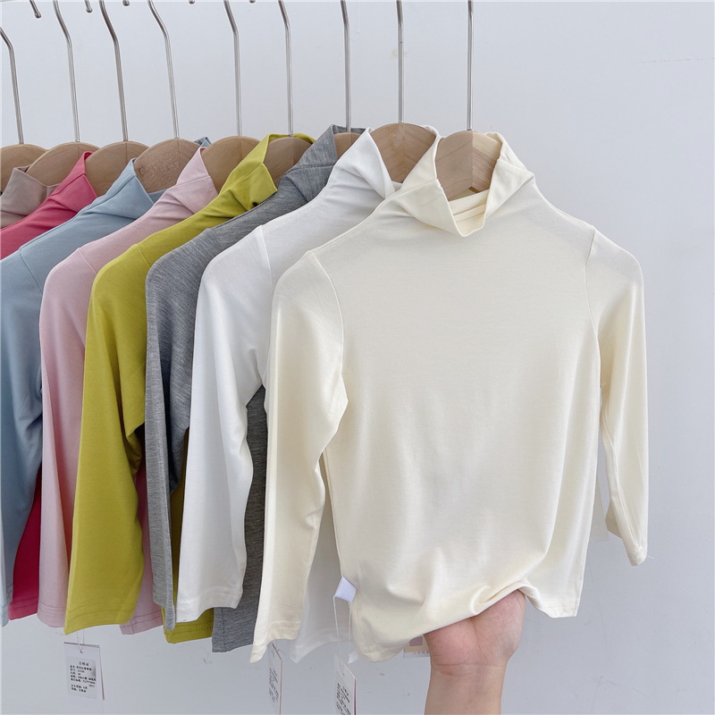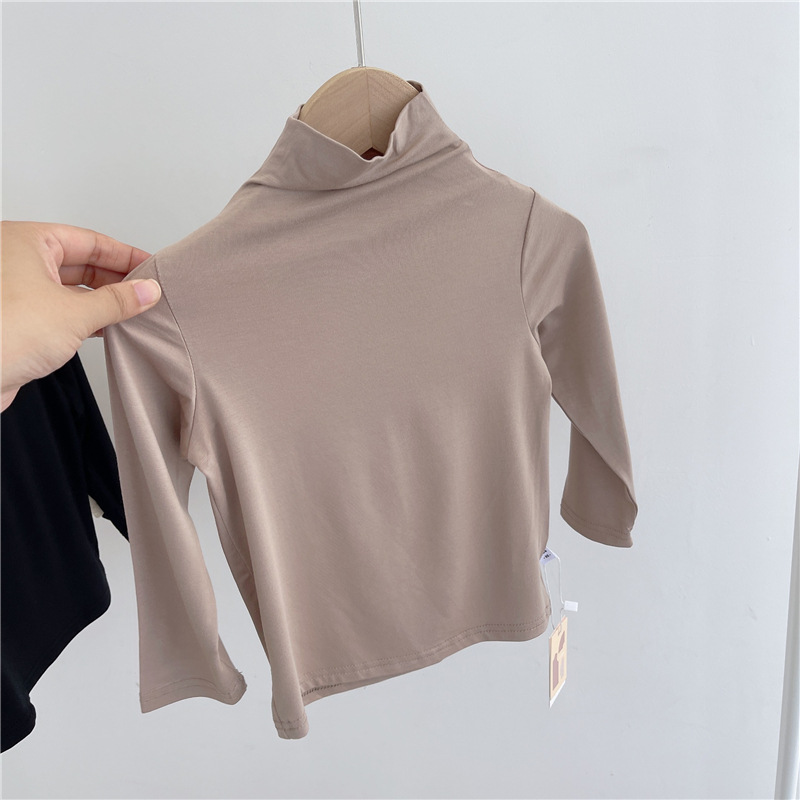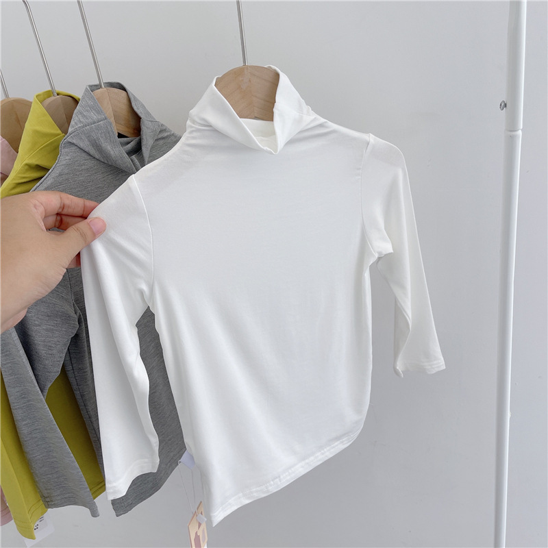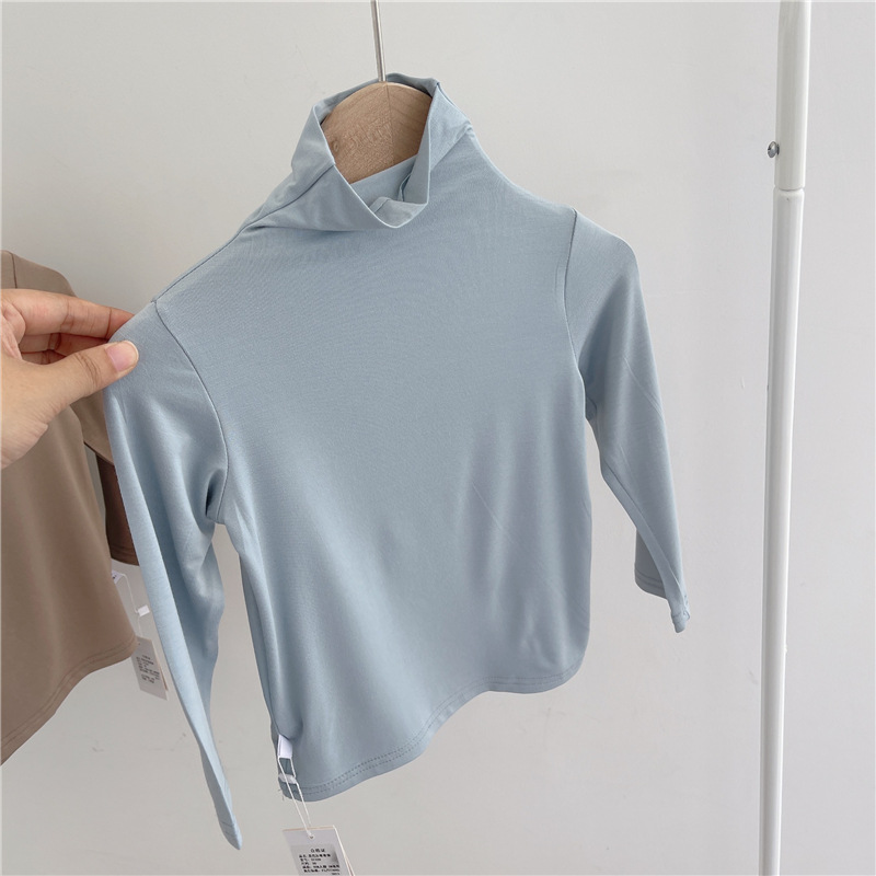 [파일 칼라] 어린이 세미 하이 칼라 바닥 셔츠 소녀 긴팔 티셔츠 소년 셔츠 아기 셔츠 봄과 가을