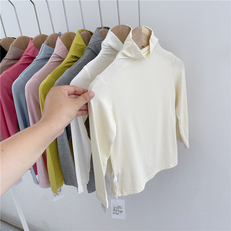 [파일 칼라] 어린이 세미 하이 칼라 바닥 셔츠 소녀 긴팔 티셔츠 소년 셔츠 아기 셔츠 봄과 가을스토어 가기