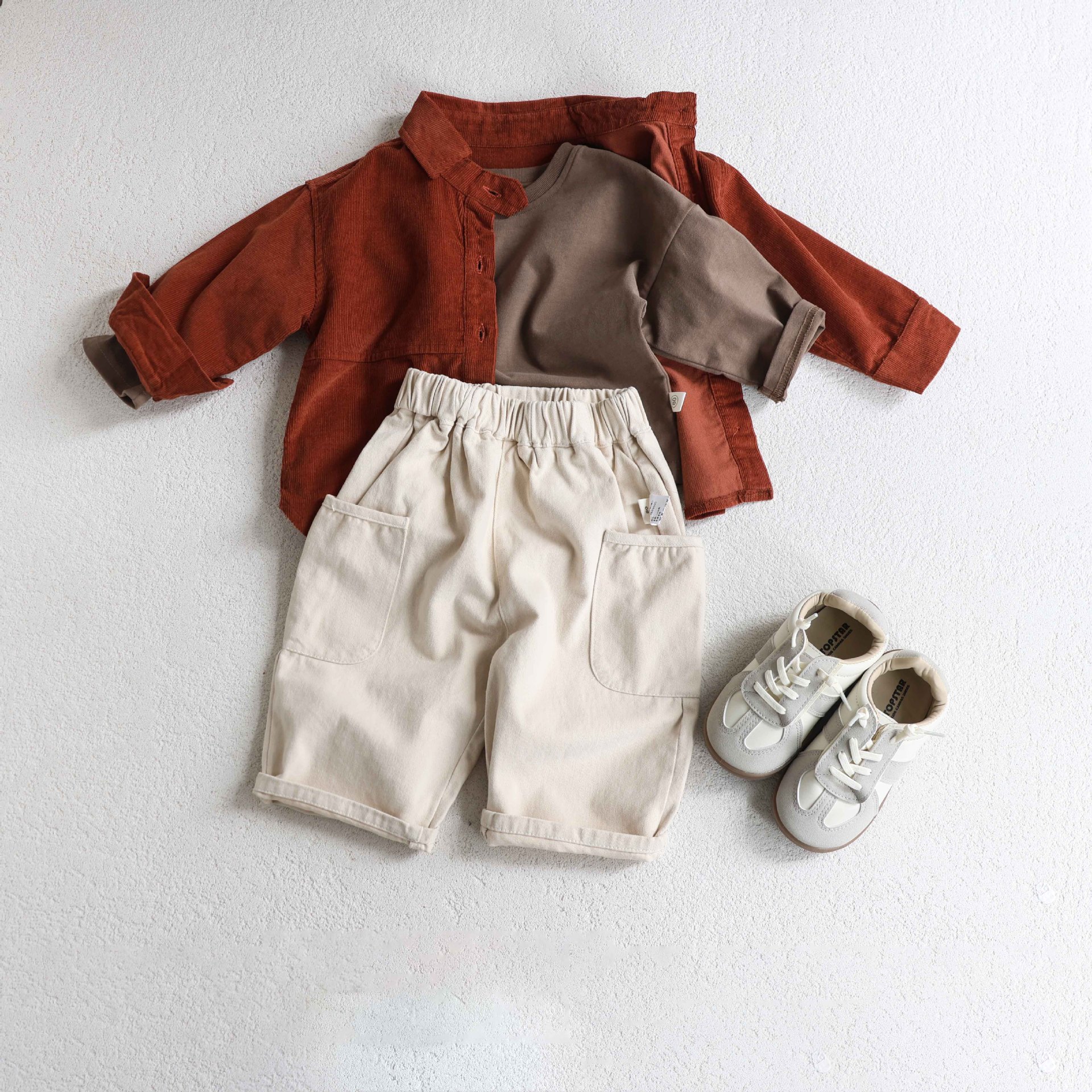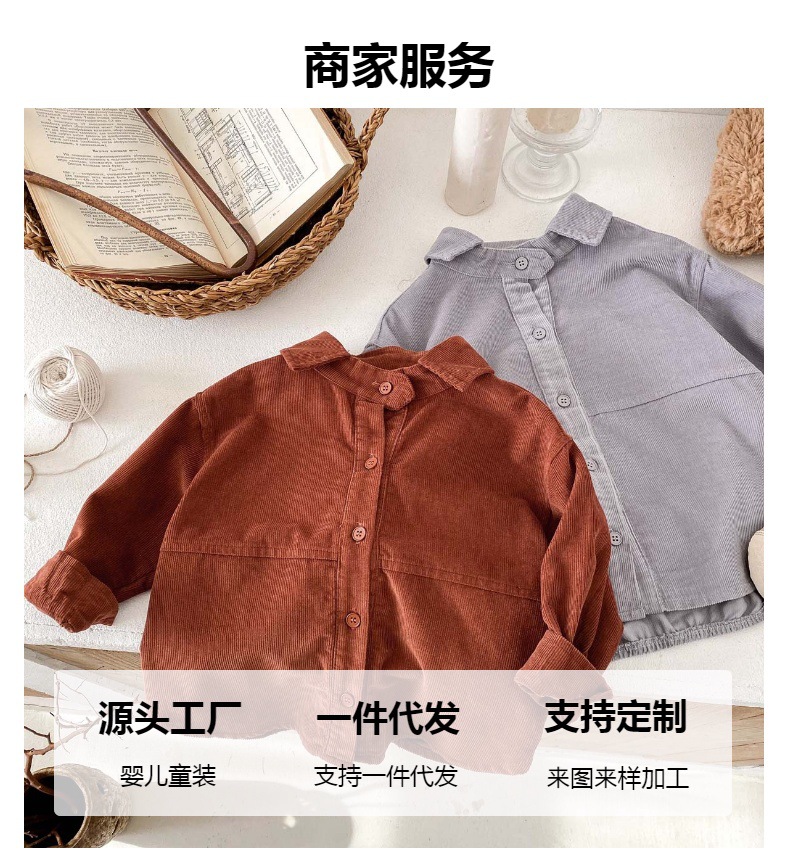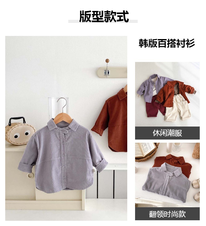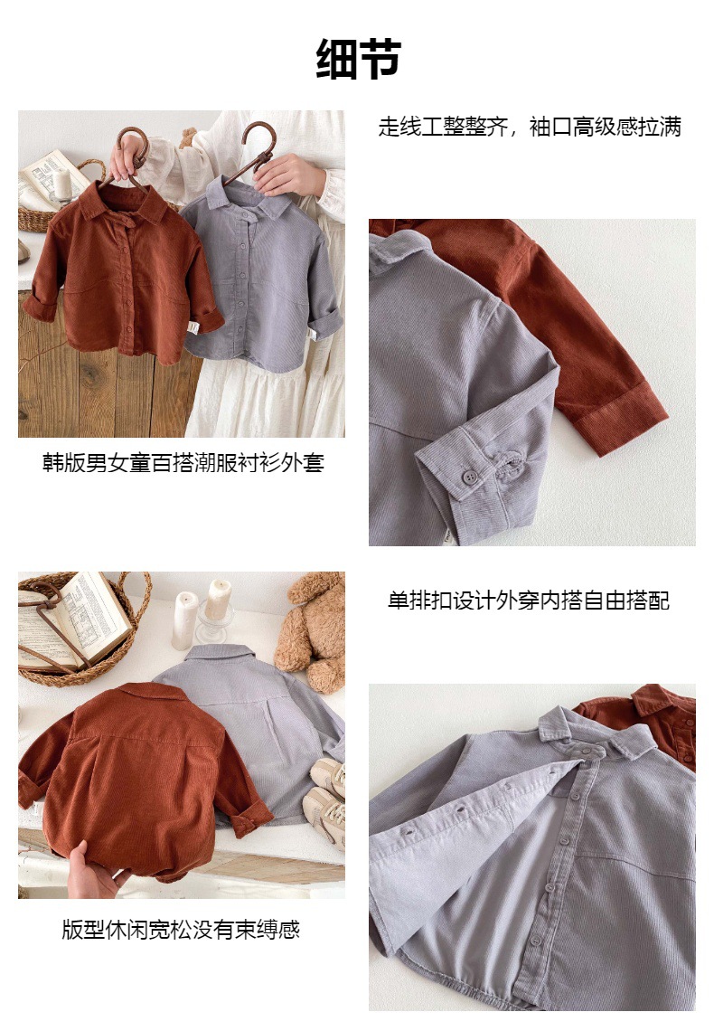 소년의 봄과 가을 새로운 코듀로이 긴팔 셔츠 자켓 아기 한국식 캐주얼 올 매치 유행 유행 옷 빈티지스토어 가기