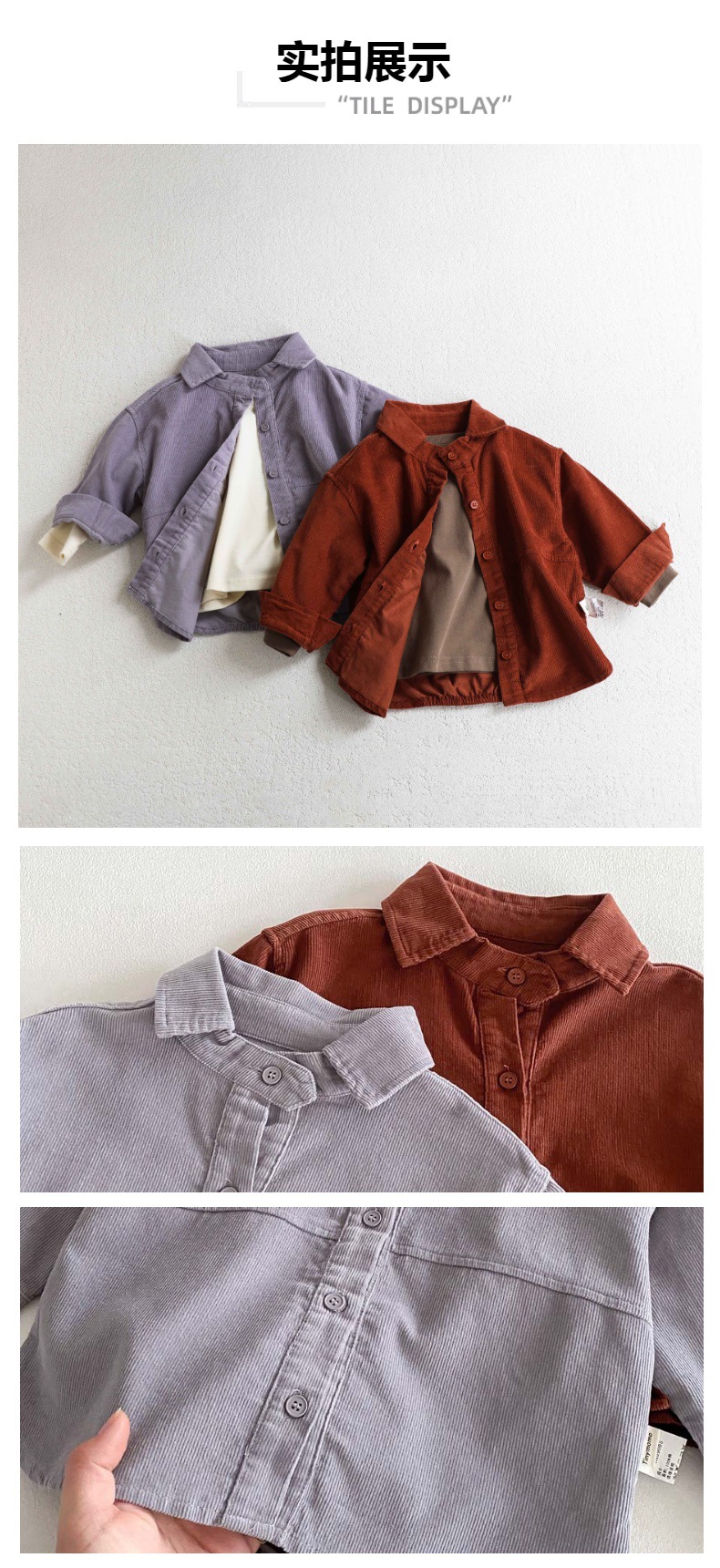 소년의 봄과 가을 새로운 코듀로이 긴팔 셔츠 자켓 아기 한국식 캐주얼 올 매치 유행 유행 옷 빈티지