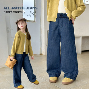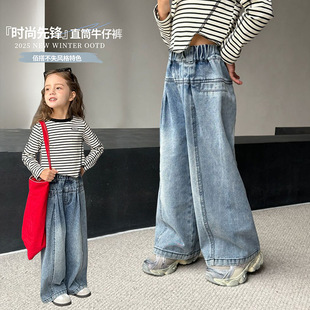 图图小象女童牛仔裤2025春季新款休闲时尚洋气百搭儿童阔腿裤子