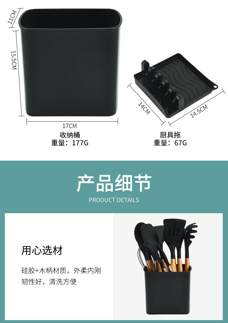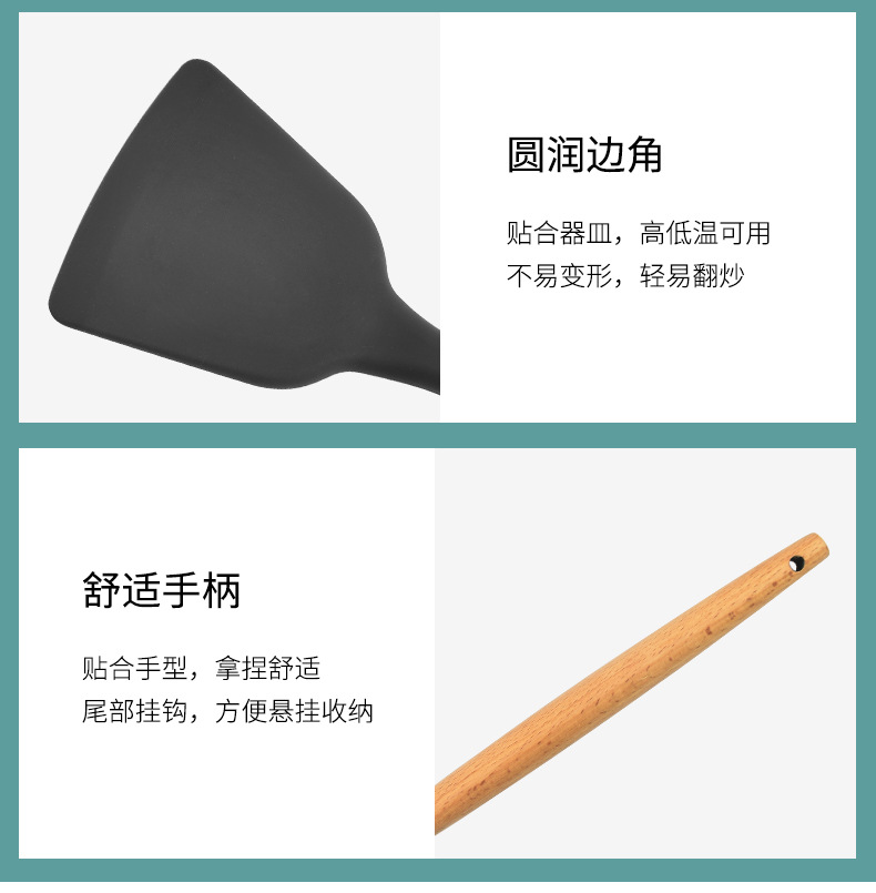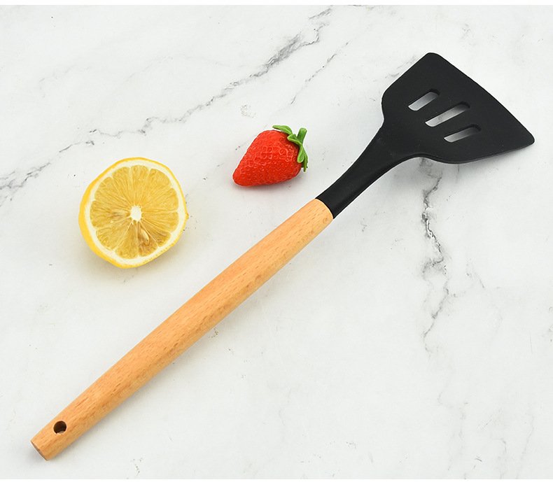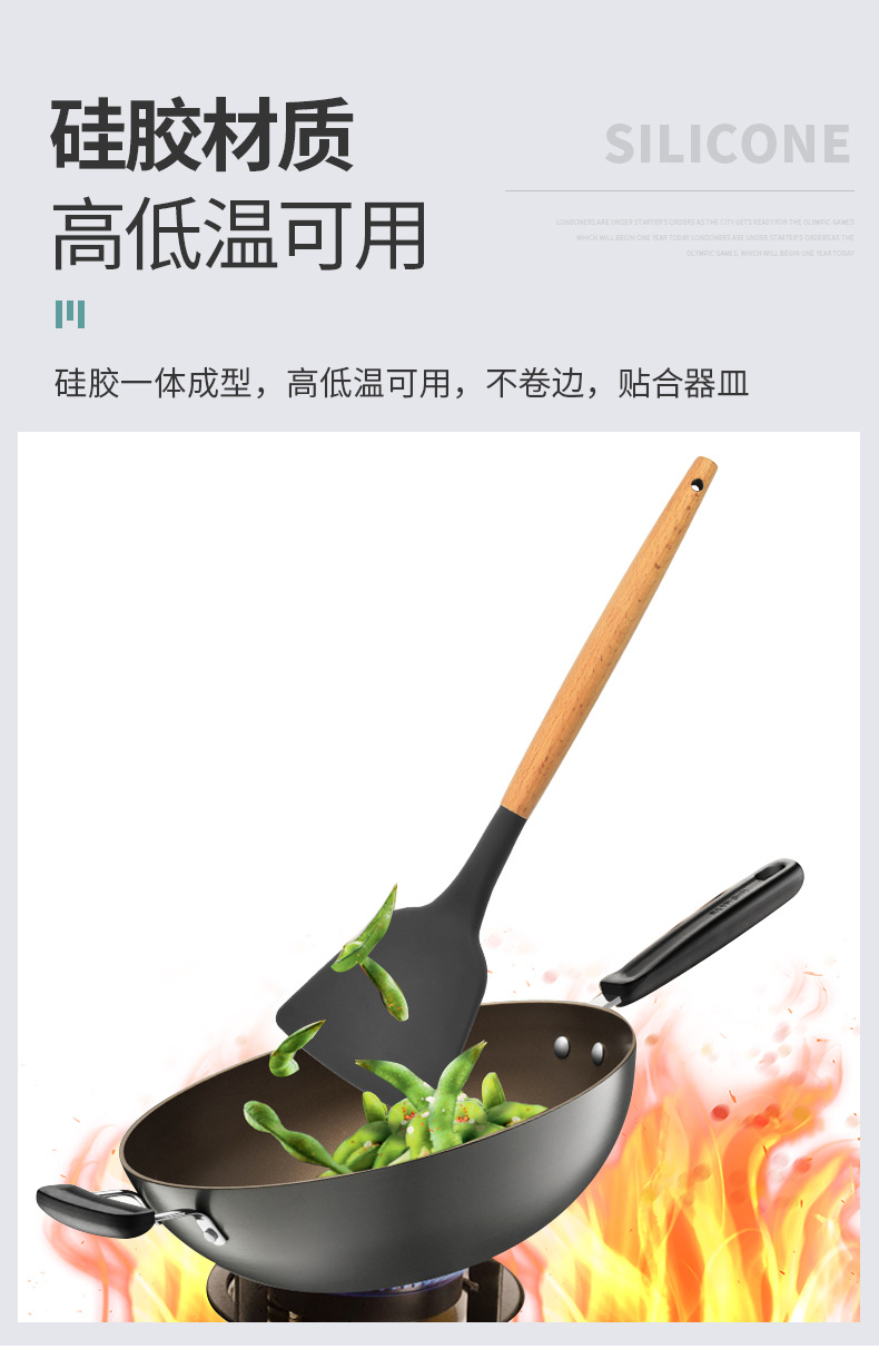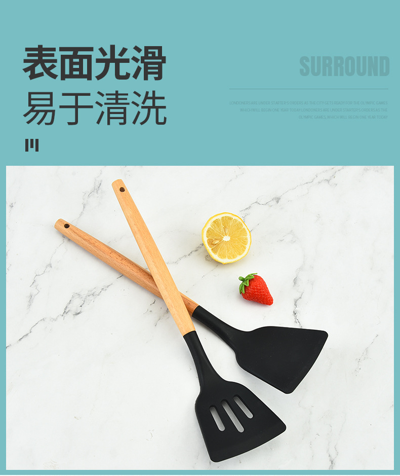 하이 퀄리티 실리콘 주방용품 12 조각 주방 요리 도구 너도밤 나무 손잡이 주방 세트 스틱 팬이 아프지 않습니다.스토어 가기